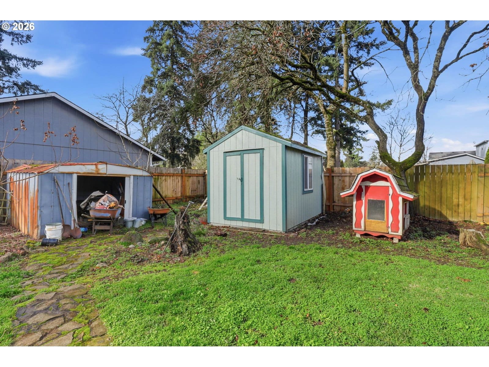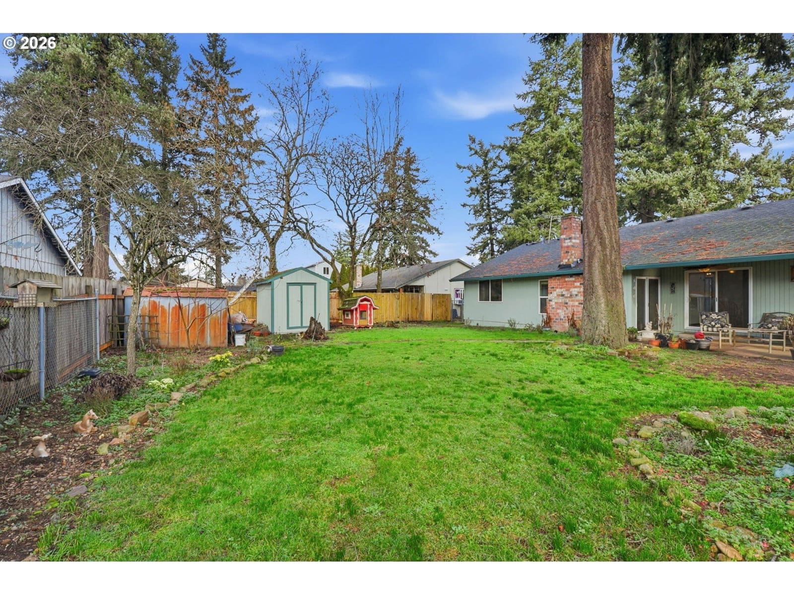 Set on a large, private corner lot, this classic ranch offers a blend of quiet living, flexibility, and access to nature. Fresh interior and exterior paint give the home a refreshed feel, while a newer roof with a transferable warranty adds long-term confidence. The floor plan is functional and inviting, with generous living space, a cozy fireplace, and large windows that bring in natural light and views of the surrounding greenery. Outside, the oversized lot truly sets this property apart with RV parking, multiple storage sheds, a chicken coop, and room for gardening. Just steps from the Furey Community Garden and nearby walking and biking trails, the home is also adjacent to the Johnson Creek Wildlife Corridor, a protected natural habitat known for birdwatching and seasonal wildlife, offering a peaceful, nature-rich backdrop rarely found so close to city amenities. A great option for buyers seeking a home with outdoor space, long-term potential, and value in Southeast Portland.