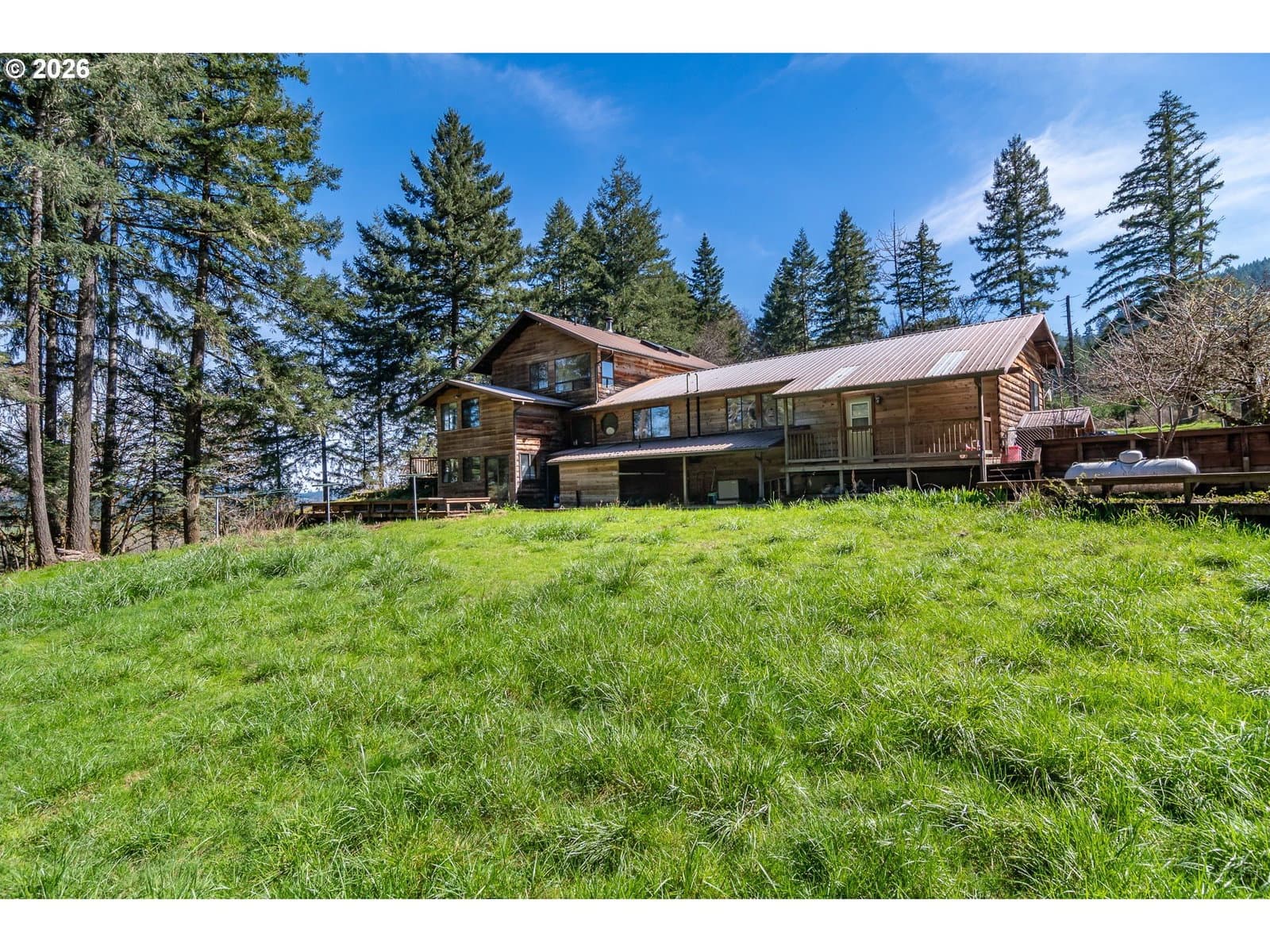Custom built 3 BR 2 BA 2098 SF home showcases unique charm and quality craftsmanship throughout. Situated on 14.18 acres at the end of a private road, the property offers outstanding seclusion along with beautiful views of the nearby Main Umpqua River. Equestrian and hobby farm enthusiasts will appreciate the large shop with an attached barn. Enjoy wood lined stalls and tack room, plus a covered corral for easy saddling and a pasture area for grazing. Above the shop, an unfinished upper room provides space for potential studio or additional storage. The property also features a plumbed hot tub area, fruit trees, and a variety of grape vines. Gardeners and homesteaders will love the separate summer canning kitchen, ideal for entertaining or preserving produce from your garden, perfect for those who enjoy sustainable living. An additional detached building offers flexible space for workshop or possible accessory dwelling unit subject to county approval. The property also includes merchantable timber, adding to long-term value (timber cruise on file). This fixer upper is just waiting for your vision and finishing touches to shine again. If you are looking for privacy, versatility, and country lifestyle opportunities, this property is a must-see. Call today and schedule your private appointment.