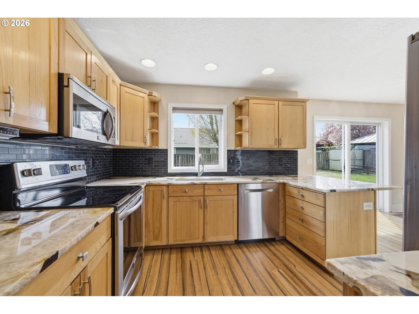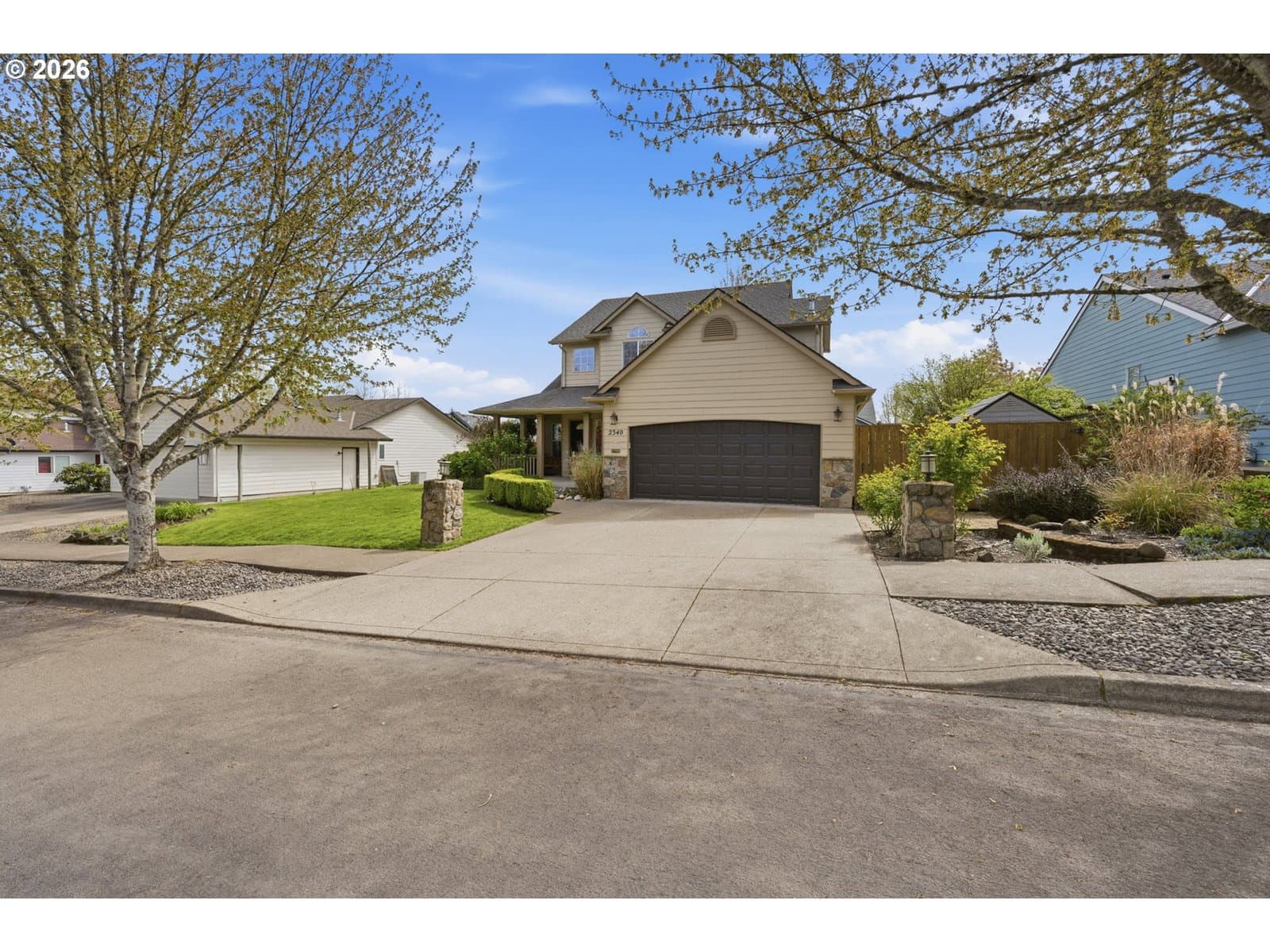 Beautifully maintained 2-story Craftsman in McMinnville’s desirable Hillsdale neighborhood! This 3 bedroom, 2.5 bath home offers 1,905 sq ft with an inviting, light-filled layout and high ceilings. The main level features bamboo flooring and spacious living, dining, and kitchen areas designed for both everyday living and entertaining. The kitchen shines with granite countertops, stainless steel appliances, pantry, and abundant storage. Upstairs, all bedrooms are thoughtfully positioned, including a relaxing primary suite with jetted tub and dual sinks. Step outside to a private, fully fenced backyard featuring a covered patio, gazebo, free-standing hot tub, tool shed, and RV parking—perfect for enjoying the outdoors year-round. Additional highlights include an attached 2-car garage, heat pump, forced air, gas hot water, and vinyl double-pane windows. Situated on a level 0.18-acre lot with territorial views in a sought-after neighborhood close to local amenities.