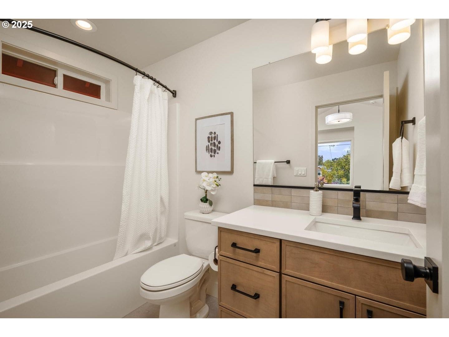 Enjoy living in Kenton, one of Portland's fabulous historical neighborhoods! Located just a block from the nearly 13 acre Kenton City park and nearby main street- a sliver of an urban oasis with a wonderful mix of residential and inviting local shops and restaurants. This home is beautifully designed, constructed and appointed living spaces at their best! Thoughtful details and space saving features, such as high-end appliances and large double stainless farmhouse double bowl sink, mini-split heating and cooling, built in vacuum system, outdoor fans, in counter mini-beverage refrigerator, artful finishes from flooring to counters, tile and more. This home features two en-suite bedrooms, one with a shower and the other with shower/tub combo. It also enjoys a 8.5 foot counter eating bar as well as ample dining room space. [Home Energy Score = 10. HES Report at https://rpt.greenbuildingregistry.com/hes/OR10242740]