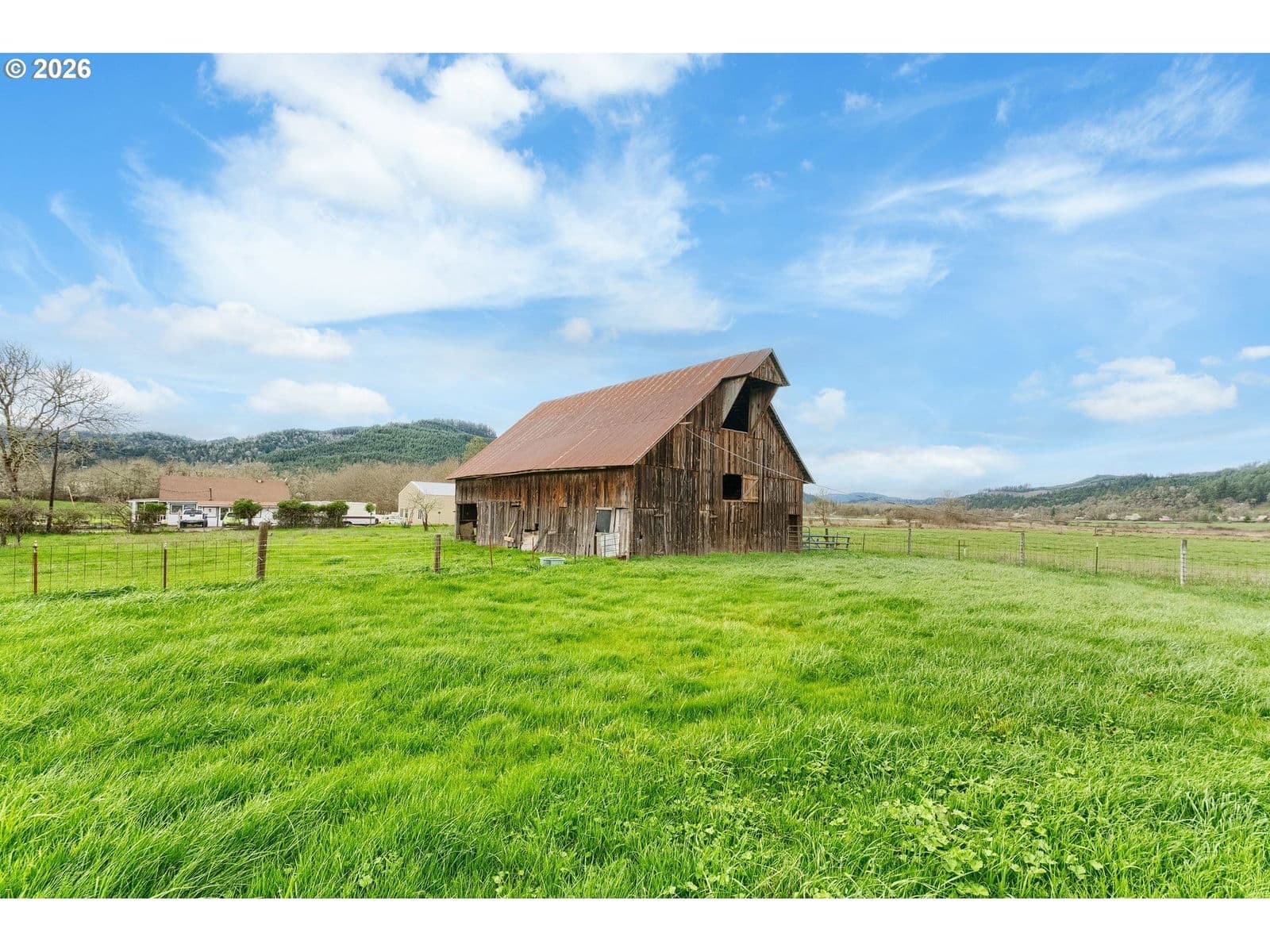 14days on marketBring your Victorian farmhouse dreams to life at this charming Yoncalla property! Situated on almost 10 usable acres, this 3-bedroom, 1.1-bath farmhouse offers 1,948 SF with high ceilings, wood floors, and a warm wood-burning fireplace. Originally built in 1904 by the Daugherty family—early Yoncalla grocers—this historic home sits on land tied to the Applegate settlement, when the Applegate family parted from the Oregon Trail. Today, the nearby Applegate Museum and family homestead remain close neighbors, adding to the property’s rich sense of place.The nearly 10-acre property offers a beautiful blend of open pasture, natural landscape, and creek frontage. Approximately 6 acres are productive hay field that have yielded around 30 one-ton round bales each summer, with potential for even greater production through additional land maintenance. Yoncalla Creek runs through the property, and a seasonal pond could potentially be restored to year-round use with some upkeep. Wildlife is a regular part of daily life here, with deer, turkey, geese, ducks, loons, and even the occasional bear passing through the land.The original barn—dating back to the home’s early days—still stands and has supported a variety of animals over the years, including horses, cattle, donkeys, pigs, and goats. The property is well set up for country living with a barn, workshop, tool shed, poultry coop, garden space, cross fencing, RV parking, and expansive open land ready for animals, agriculture, or recreation.Inside the home, portions of later additions have been thoughtfully stripped back over time to reveal elements closer to the original structure, leaving both character and opportunity for the next steward to continue uncovering and restoring its historic charm.With peaceful territorial and valley views, paved access, and two separate taxable lots, this property offers flexibility and space to create your ideal hobby farm, homestead, or rural retreat or destination wedding/ event venue.