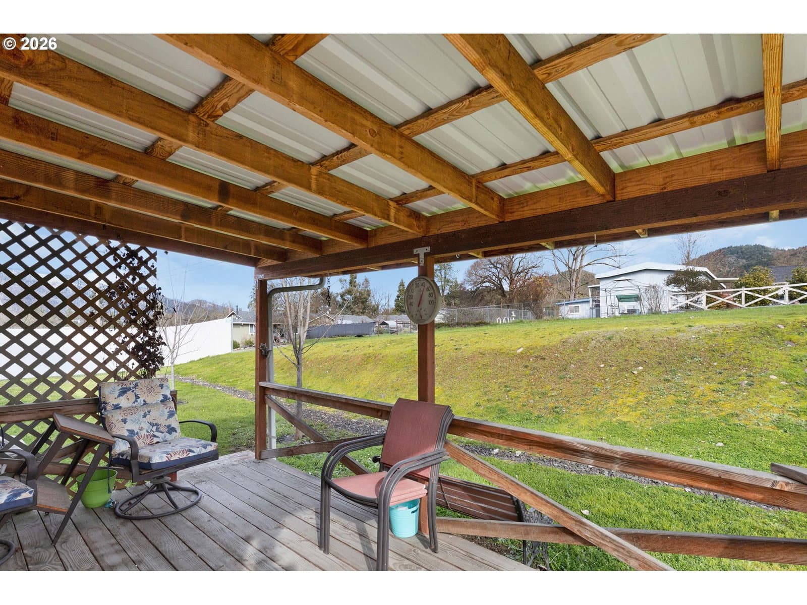 This move-in-ready 1991 MFG home is conveniently located in Myrtle Creek on .26 of an acre. The spacious corner lot offers nice mountain views, room for gardening or building a garage/shop. Enjoy end of the road privacy, a covered deck, metal roof and roomy shed for storage. The interior is comfortable with pellet stove, laminate flooring, vinyl windows, heat pump and more. All kitchen appliances are included, Plus washer/dryer and freezer.