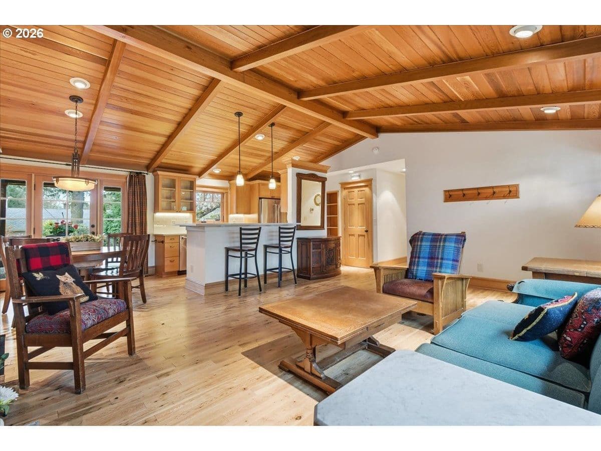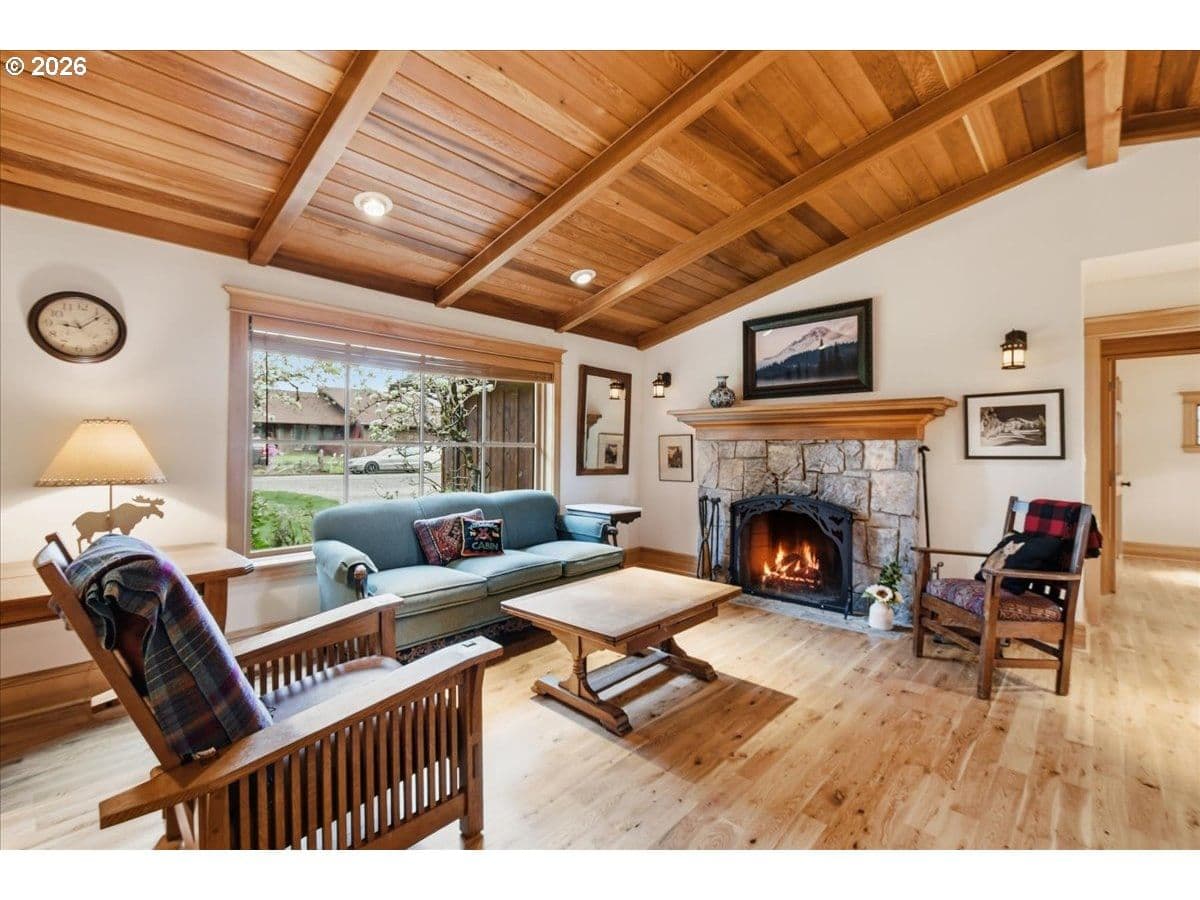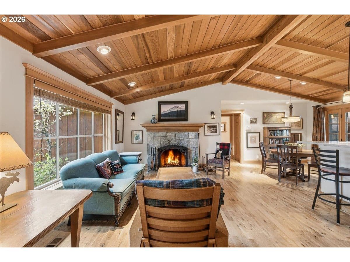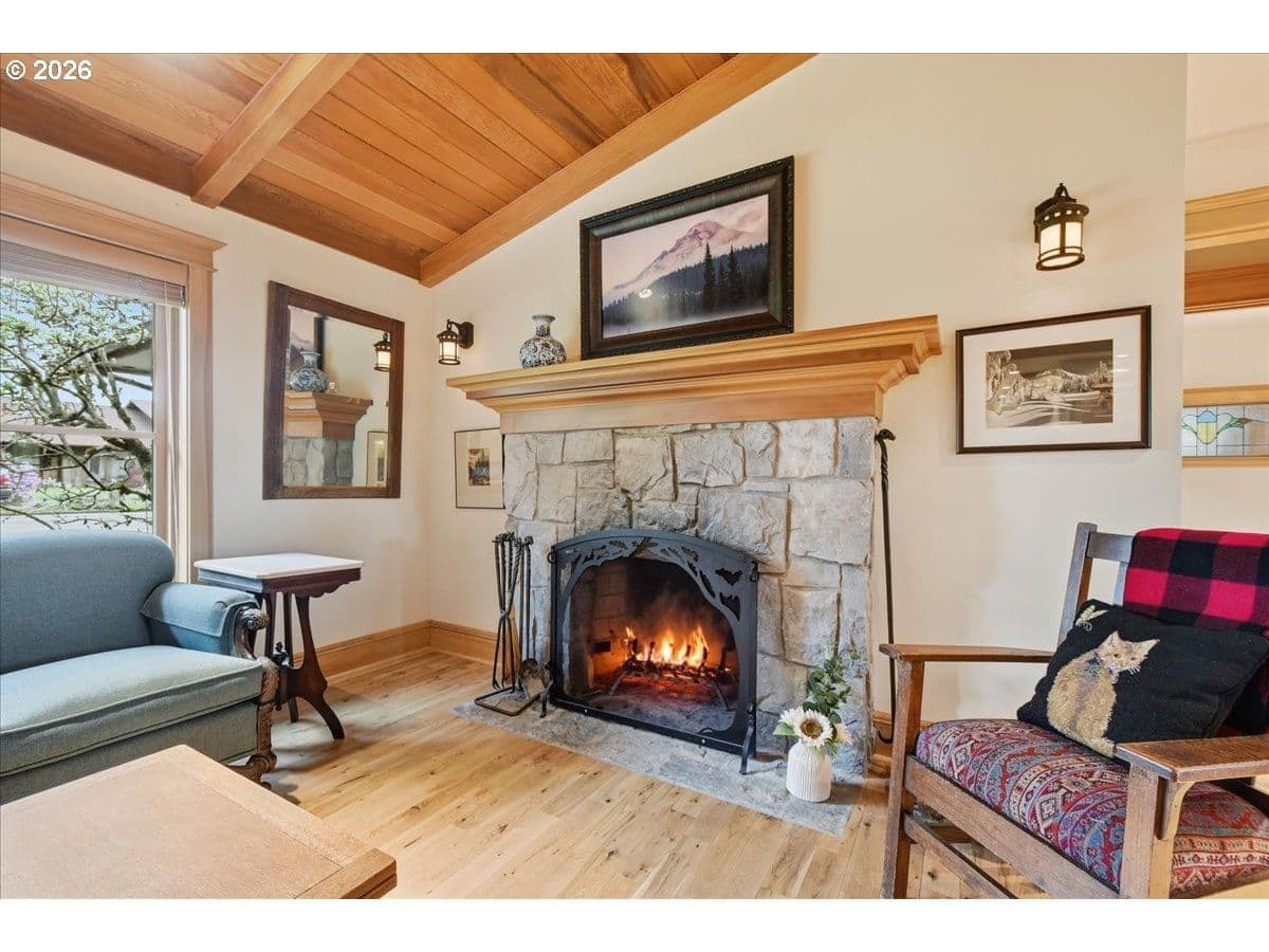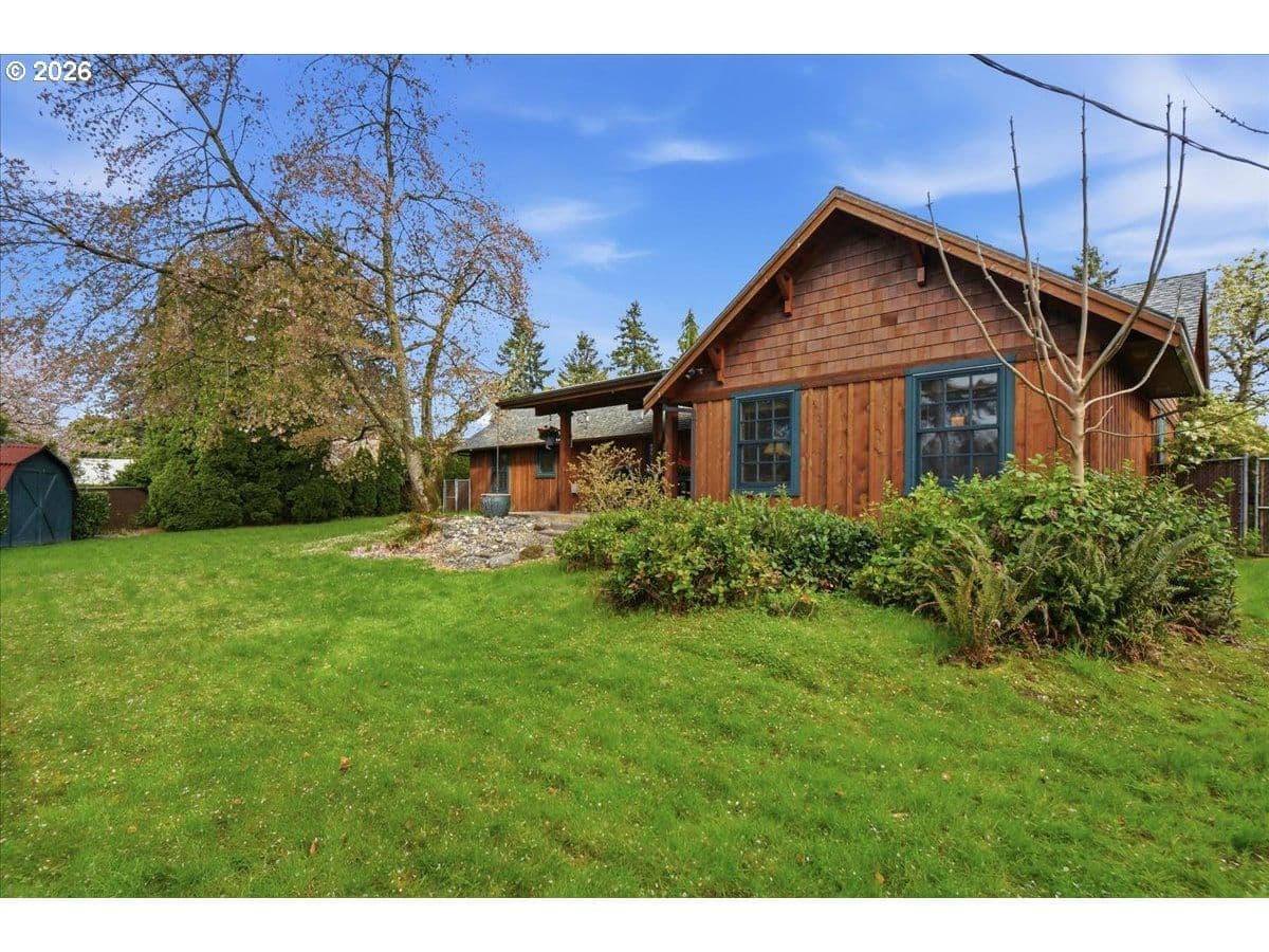 Beautiful Northwest Craftsman-style home in the desirable Northcrest neighborhood, located in The Heights area of Vancouver, offering timeless character and a warm, inviting feel. Rich wood siding, exposed beams, and a covered front entry create standout curb appeal. Inside, vaulted tongue-and-groove ceilings, hardwood floors, and detailed millwork showcase the craftsmanship throughout. The living room centers around a stunning stone fireplace and flows into the dining area and updated kitchen featuring quartz counters, farmhouse sink, and custom cabinetry.The spacious primary suite offers vaulted ceilings and a peaceful retreat, while additional rooms provide flexibility for guests, office, or hobbies. Bathrooms have been tastefully updated, and a dedicated laundry room adds convenience.Enjoy year-round outdoor living under the covered patio, surrounded by mature landscaping and a large, usable backyard. Detached garden shed provides extra storage or workspace. The Northcrest subdivision features a neighborhood park located at the end of the street. Centrally located with easy access to shopping, restaurants, hospital, I-5, I-205, and PDX Airport.