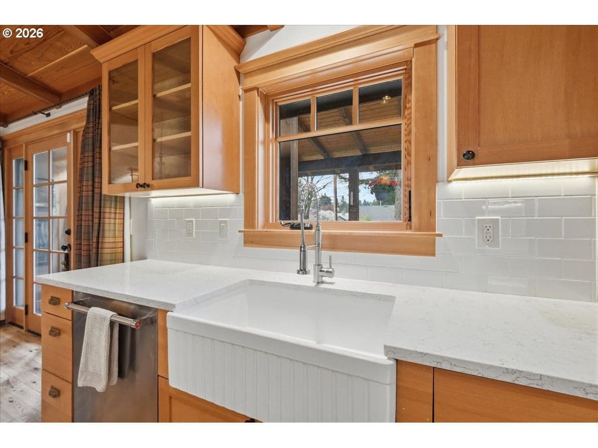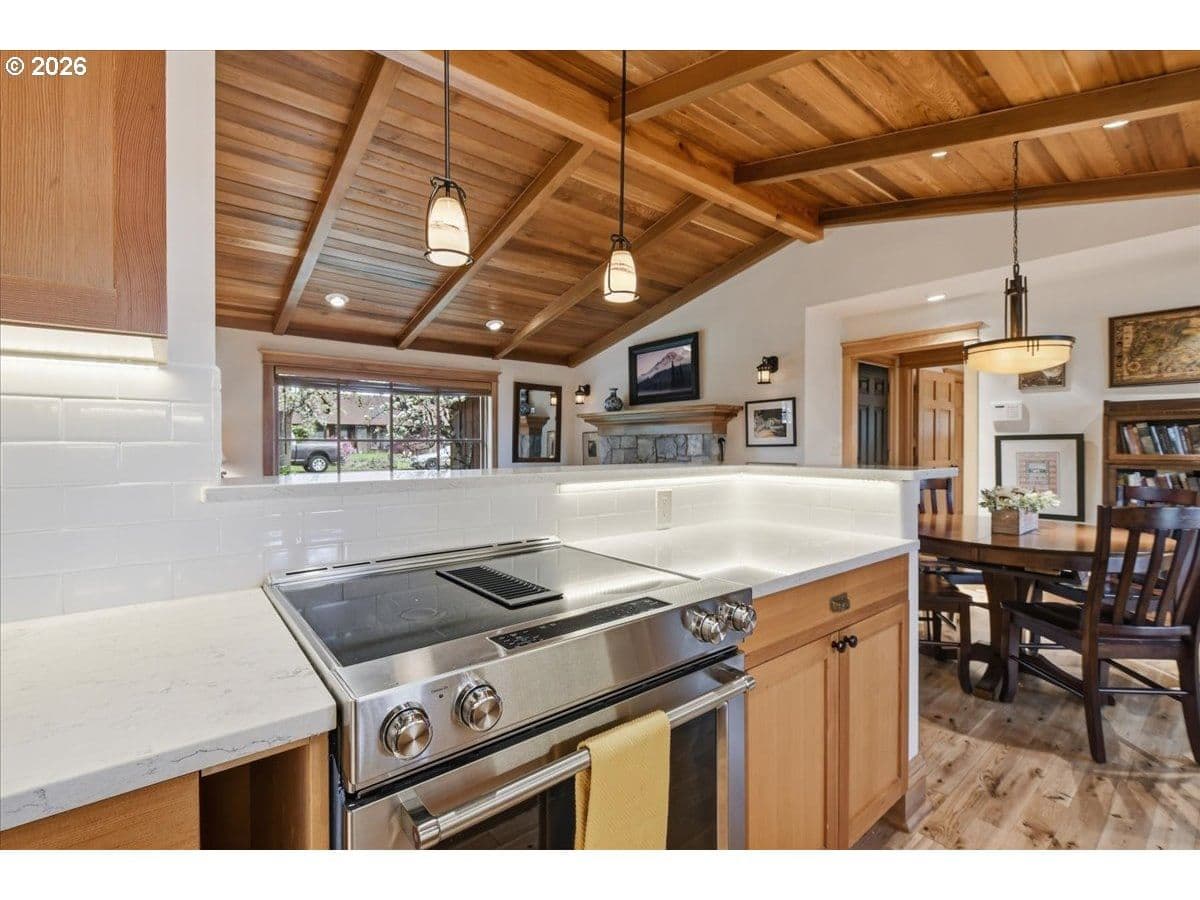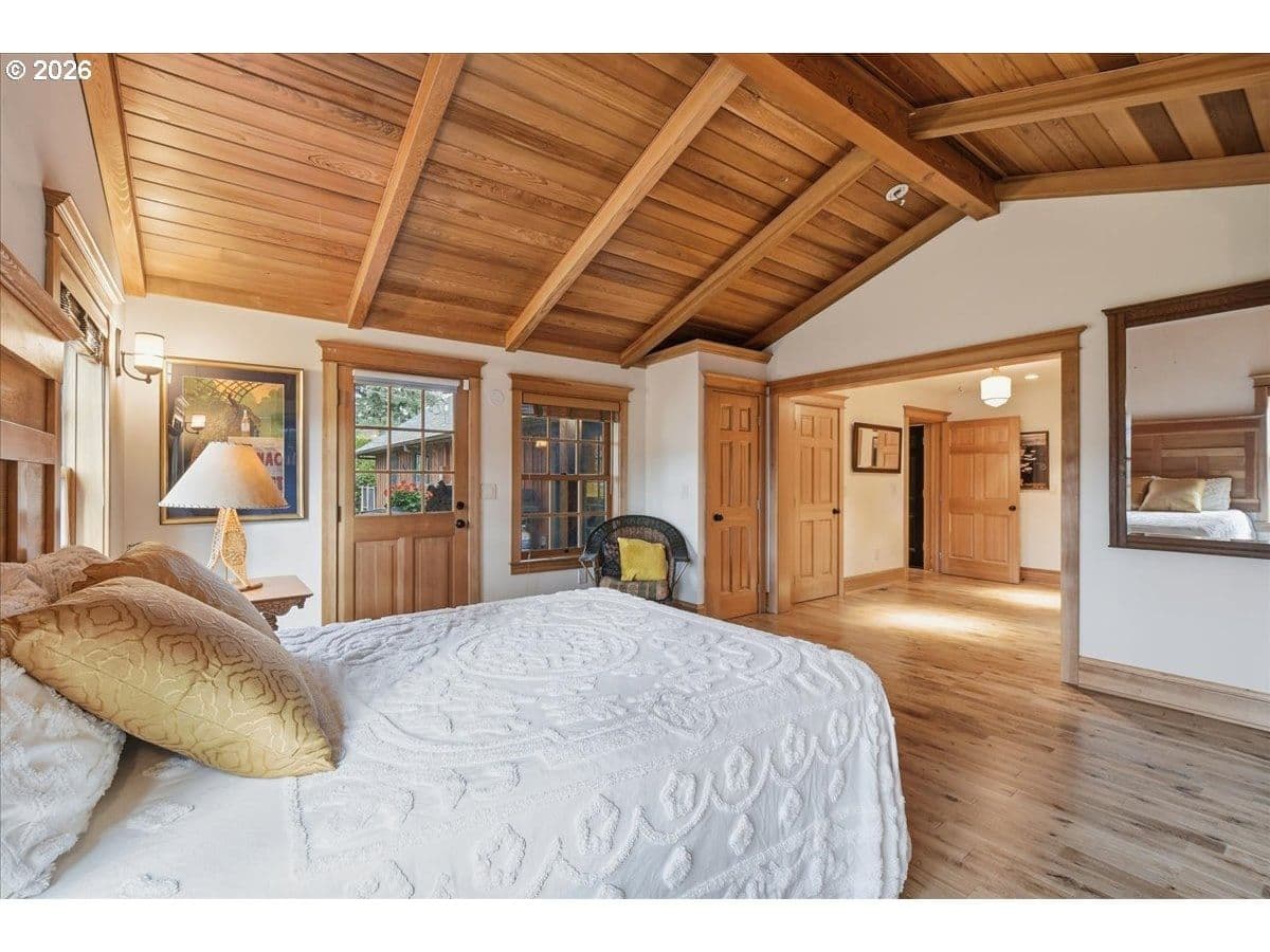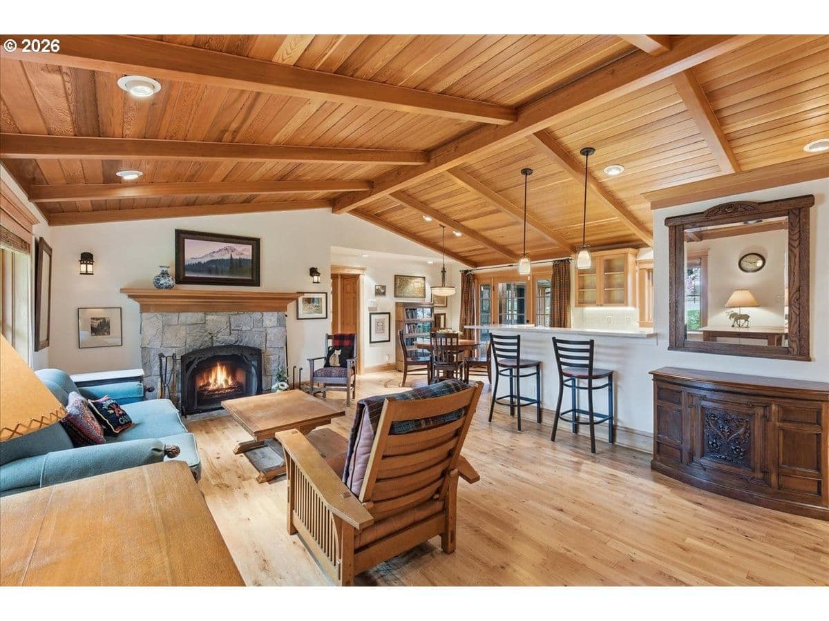Beautiful Northwest Craftsman-style home in the desirable Northcrest neighborhood, located in The Heights area of Vancouver, offering timeless character and a warm, inviting feel. Rich wood siding, exposed beams, and a covered front entry create standout curb appeal. Inside, vaulted tongue-and-groove ceilings, hardwood floors, and detailed millwork showcase the craftsmanship throughout. The living room centers around a stunning stone fireplace and flows into the dining area and updated kitchen featuring quartz counters, farmhouse sink, and custom cabinetry.The spacious primary suite offers vaulted ceilings and a peaceful retreat, while additional rooms provide flexibility for guests, office, or hobbies. Bathrooms have been tastefully updated, and a dedicated laundry room adds convenience.Enjoy year-round outdoor living under the covered patio, surrounded by mature landscaping and a large, usable backyard. Detached garden shed provides extra storage or workspace. The Northcrest subdivision features a neighborhood park located at the end of the street. Centrally located with easy access to shopping, restaurants, hospital, I-5, I-205, and PDX Airport.