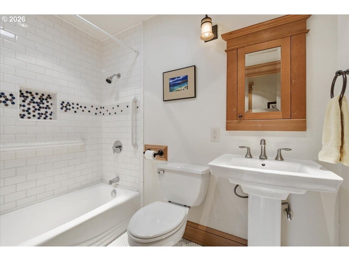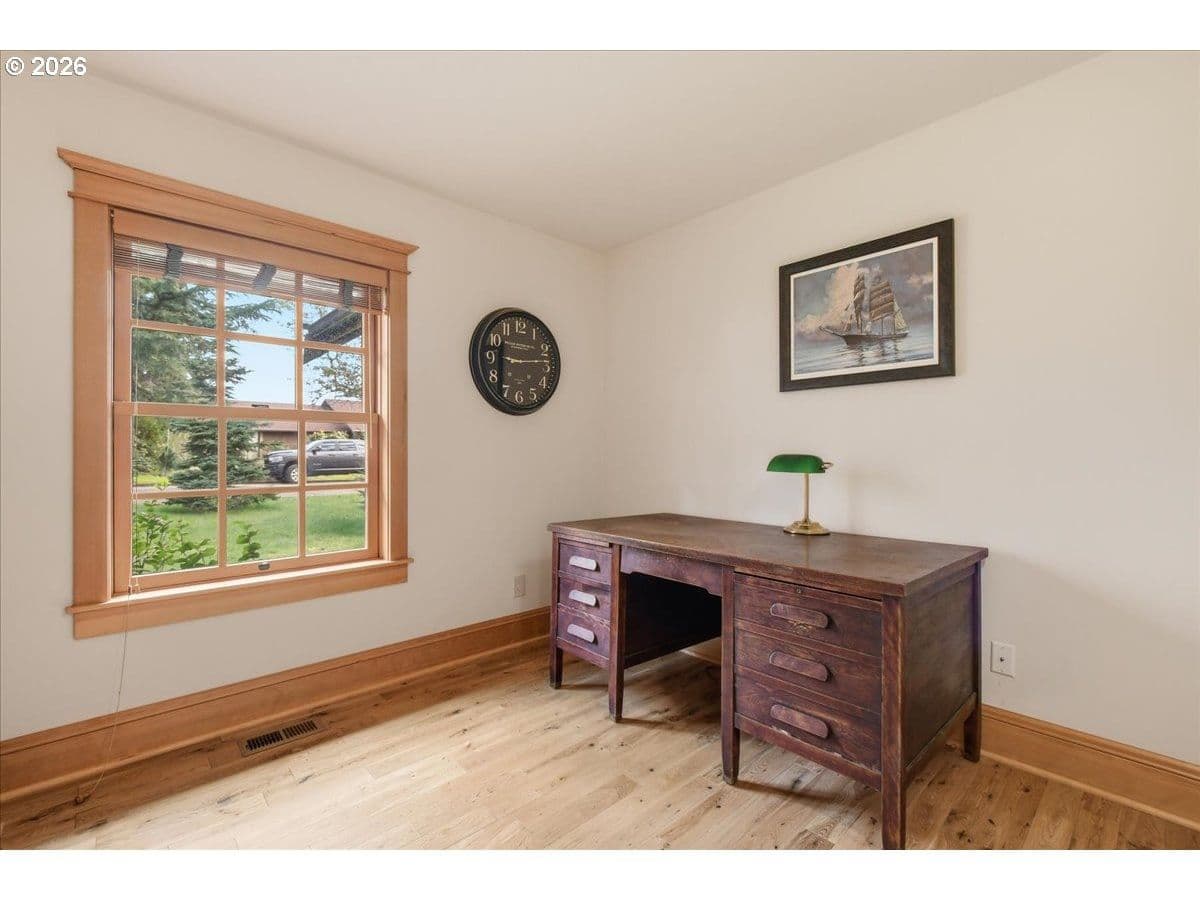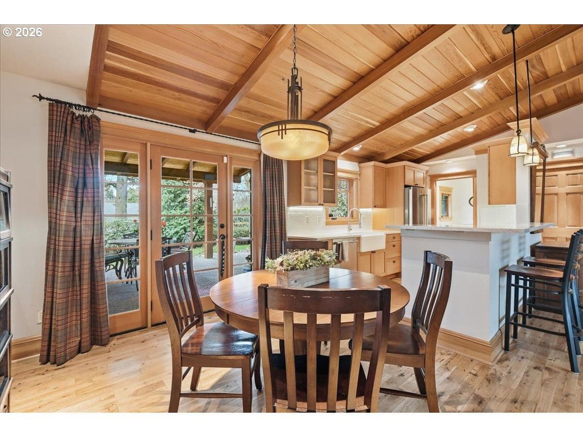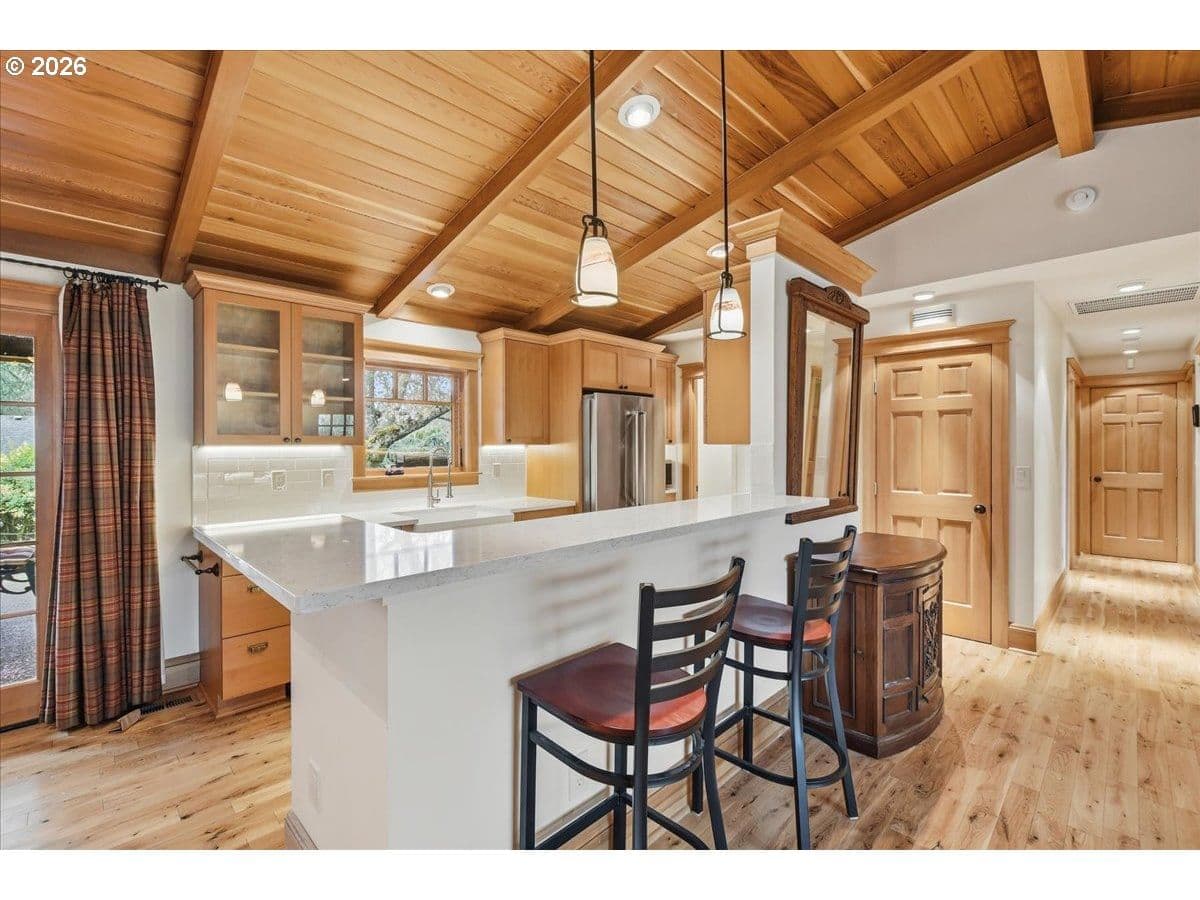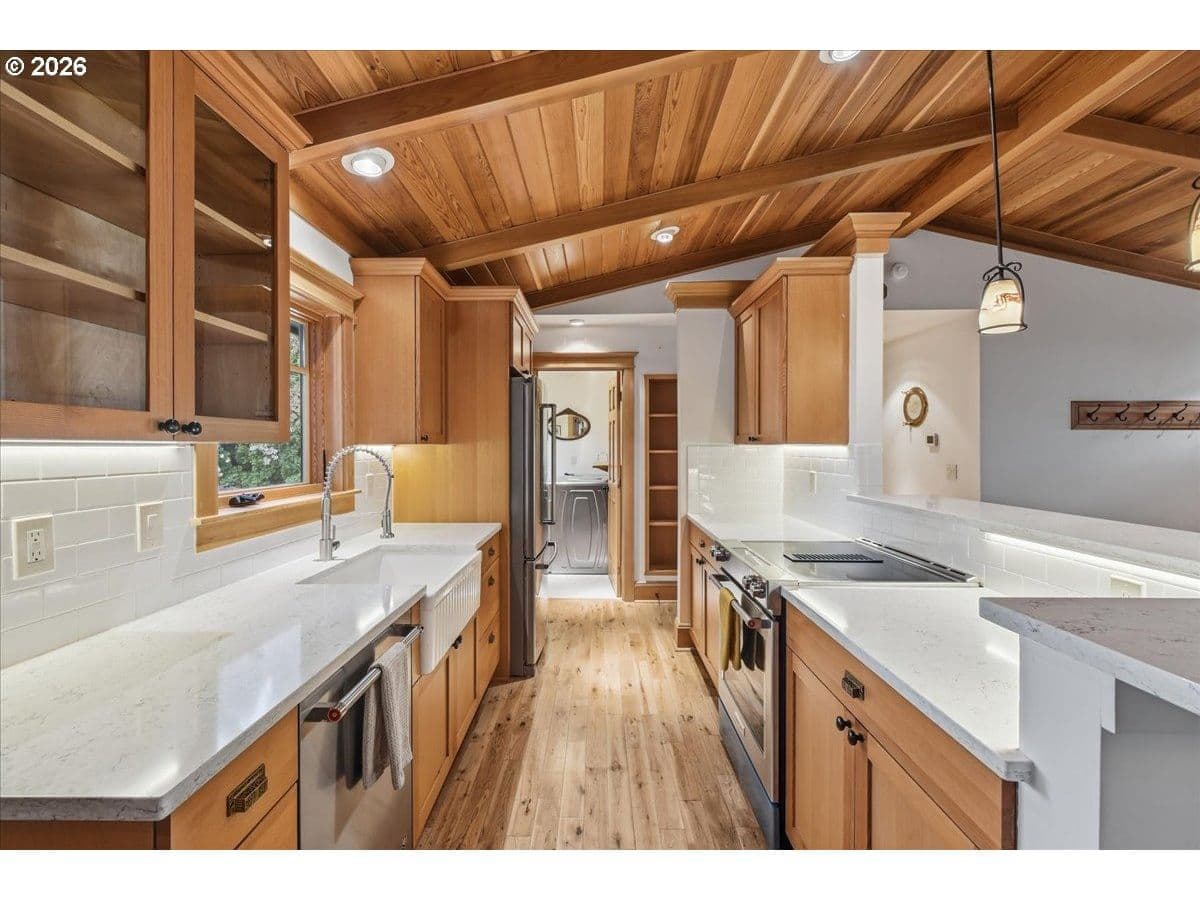 Beautiful Northwest Craftsman-style home in the desirable Northcrest neighborhood, located in The Heights area of Vancouver, offering timeless character and a warm, inviting feel. Rich wood siding, exposed beams, and a covered front entry create standout curb appeal. Inside, vaulted tongue-and-groove ceilings, hardwood floors, and detailed millwork showcase the craftsmanship throughout. The living room centers around a stunning stone fireplace and flows into the dining area and updated kitchen featuring quartz counters, farmhouse sink, and custom cabinetry.The spacious primary suite offers vaulted ceilings and a peaceful retreat, while additional rooms provide flexibility for guests, office, or hobbies. Bathrooms have been tastefully updated, and a dedicated laundry room adds convenience.Enjoy year-round outdoor living under the covered patio, surrounded by mature landscaping and a large, usable backyard. Detached garden shed provides extra storage or workspace. The Northcrest subdivision features a neighborhood park located at the end of the street. Centrally located with easy access to shopping, restaurants, hospital, I-5, I-205, and PDX Airport.