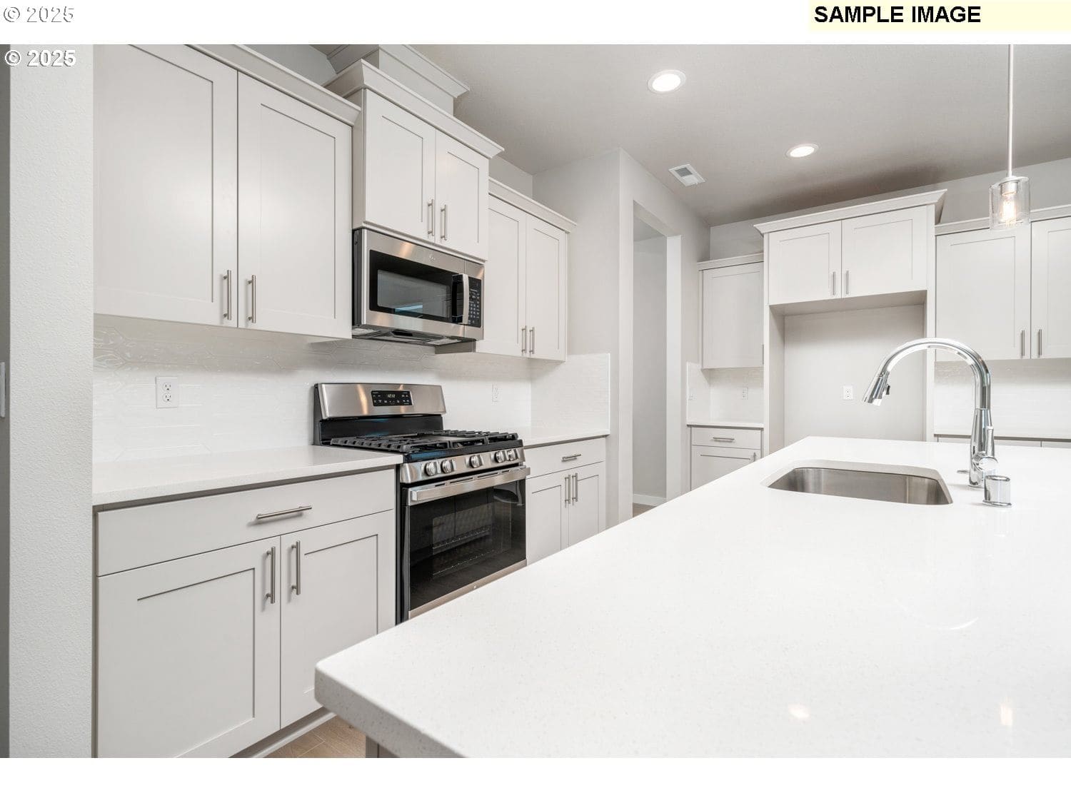 2299 Floor Plan on a Corner Lot - Ready in early January! Spacious 3 bedroom with large loft, 2.5-baths, with a 2-car garage! The home features a great room with a gas fireplace, laminate flooring throughout the first floor, 9-foot ceilings on the main level, upgraded quartz countertops throughout, a large island, gas range, primary suite with a walk-in closet and soaking tub, heat pump with air conditioning, triple-pane windows, front yard with irrigation system, situated on a fully fenced lot. Community amenities include walking trails, green spaces, and park areas. Sample images are provided—all finishes and colors may vary. Additional homes are also available.