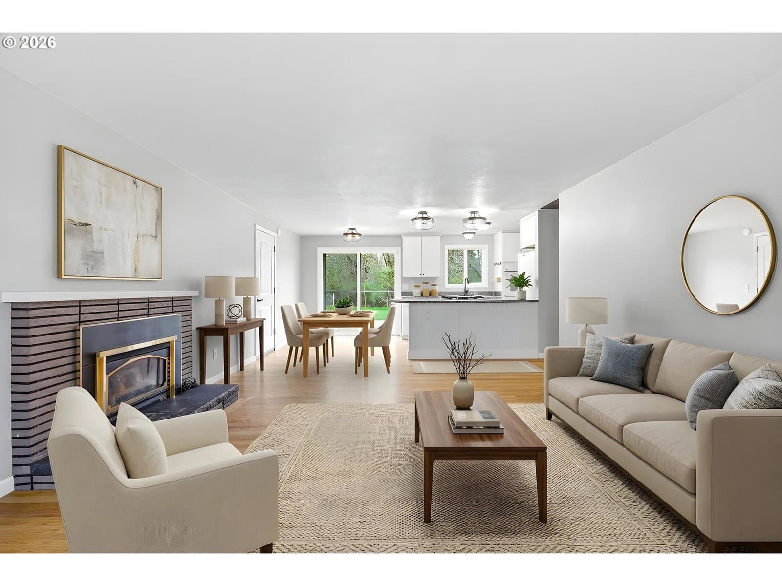 Here is the house that nature embraces! With the backyard abutting a protected green belt, the iconic oak trees of Oak Grove in the front yard, while all on a quiet street, the natural world comes alive. Bring your binoculars for the birds! This is single level living at it's finest, with an updated open concept kitchen to living room, two full bathrooms, three bedrooms, and ample garage space. Natural light fills the rooms in this 1964 ranch. With over a 1/4 acre you also have space for RV or boat parking. In the large backyard, you have an apple, fig and crabapple tree, and enough room for garden beds, or ADU possibilities. Some systems features like a newer water heater, and a well maintained furnace from 2016 gives you a peace of mind. Mere blocks away from the Willamette River, the Trolly trail, and close to downtown Milwaukie and the Max, the location can't be beat. Come see for your self! (Buyer to do their own due diligence regarding ADU accessibility).