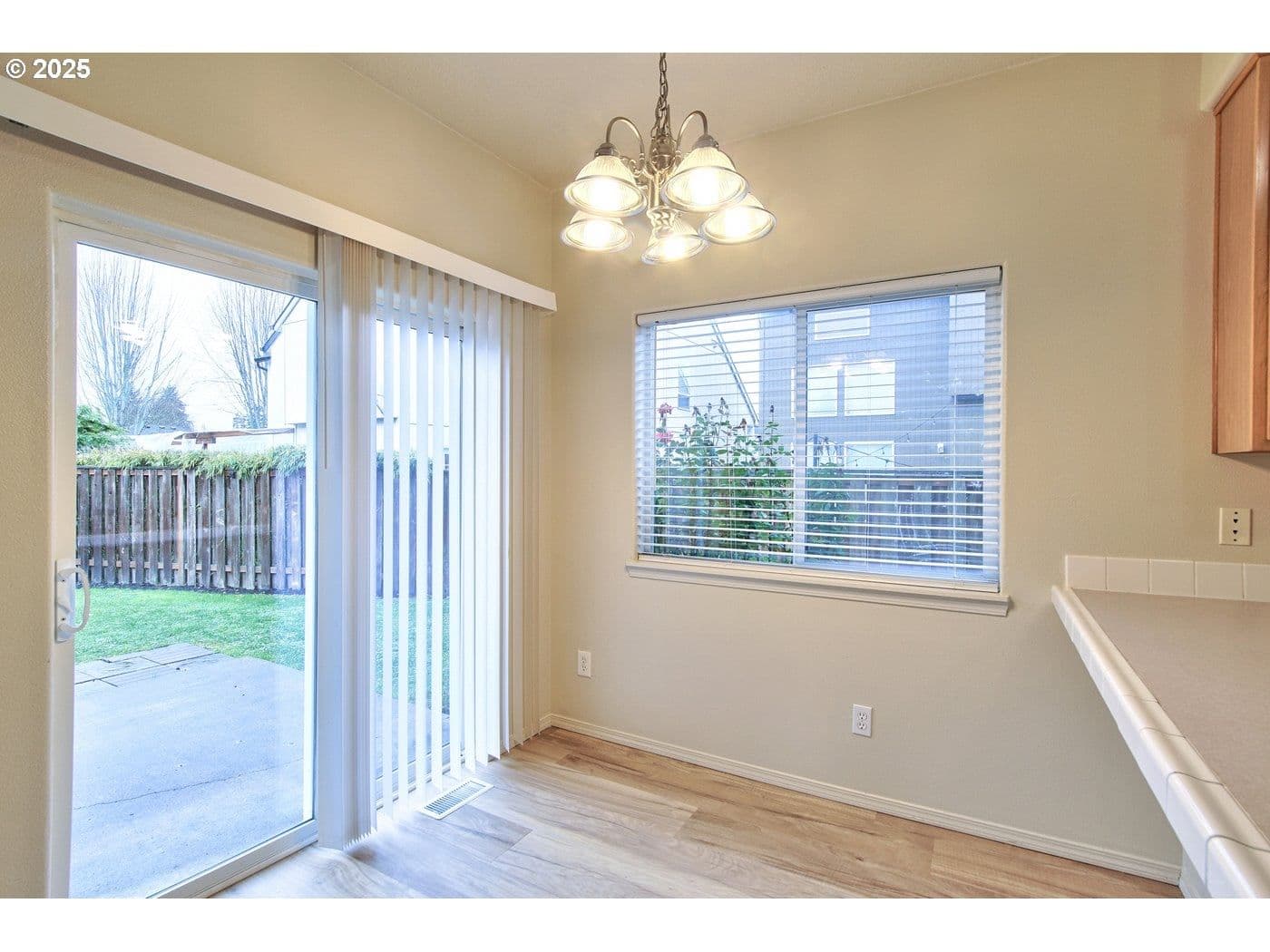 Super cute & fresh duplex offers a perfect solution for a starter home w/NO HOA! Enjoy a great backyard & patio for entertaining, newer exterior paint in 2020 & 5 yr old roof, a brand new garage door plus easy care interior w/luxury vinyl plank flooring on the main level & new carpet upstairs. There is a new stainless steel double sink in the kitchen w/disposal, new refrigerator, built-in microwave, stove and dishwasher. You'll love the warmth of the gas fireplace integrated into your main living space too. Don't miss the extra overhead garage storage plus there is plenty of extra parking. Efficient gas heat & central air with a home energy score of 7! All appliances included. 3 bd/2 baths upstairs, w/vaulted ceilings in both the primary and secondary bedrooms. French doors, double vanities and walk in closet in the primary suite. Clean & move-in ready! [Home Energy Score = 7. HES Report at https://rpt.greenbuildingregistry.com/hes/OR10243090]