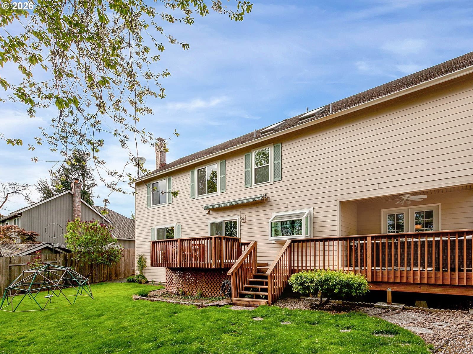 OPEN HOUSE SUNDAY 4/19 FROM 2-4 PM! This spacious and light-filled home in West Linn’s Hidden Springs Ranch neighborhood offers more than 3,000 square feet of functional living space and an exceptional backyard setting with room to play, relax, and entertain. A dramatic two-story entry and vaulted ceilings create an open, welcoming feel, while multiple living areas provide flexibility for everyday living, gatherings, or working from home. The kitchen features an island, walk-in pantry, coffee bar, and a bright breakfast nook with a slider that opens to a large deck and fully fenced, usable backyard, creating a seamless connection to outdoor living. The primary suite offers generous space, a walk-in closet, and an ensuite bath with soaking tub, skylight, double sinks, and updated flooring. Positioned on one side of the home for added separation, the additional bedrooms are located down a long hallway on the opposite side, offering privacy and flexibility. A fourth bedroom or large bonus room provides ideal space for a media room, playroom, or guest suite. Abundant storage includes a walk-in storage room upstairs, a backyard shed, and ample closet space throughout. Optional membership to Hidden Springs Recreation Association offers access to a neighborhood pool and tennis courts. Located within the highly regarded West Linn-Wilsonville School District with convenient access to parks, trails, shopping, and dining. Optional membership available to Hidden Springs Recreation Association, offering access to community pool and tennis courts. Membership is separate from property ownership, subject to availability, and buyer to verify.