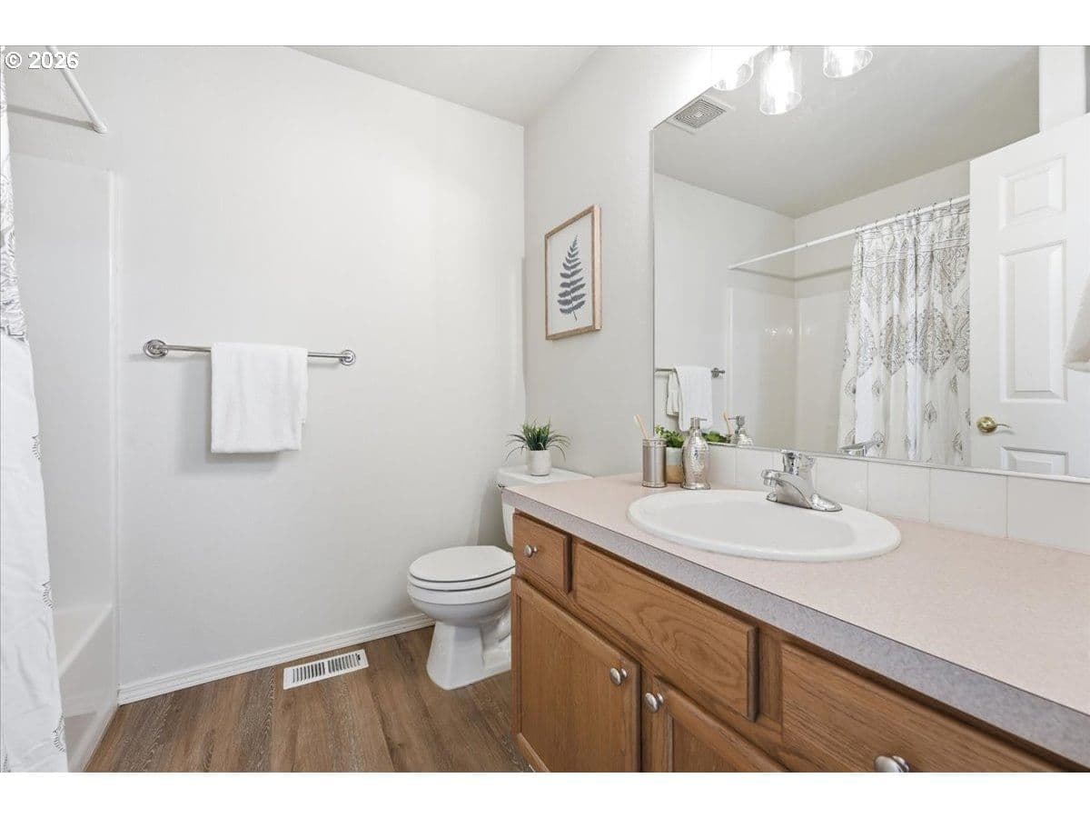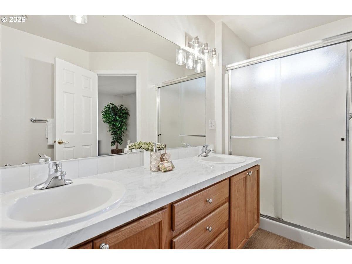 Beautifully updated townhouse offers stylish upgrades, major system improvements, and an unbeatable location. Fresh interior paint, new LVP flooring, brand-new carpet, and updated light fixtures create a clean, modern feel throughout. The kitchen features a newer range, microwave and a brand-new dishwasher.The main level includes a bright office with French doors and a bay window, along with the living room, kitchen, dining area, and a convenient half bath. Upstairs are two spacious bedroom suites, each with a walk-in closet, plus a laundry room on the same level. The lower level offers a large flex room perfect for a home gym, media room, guest space, or additional living area.Major updates include a high-end furnace and central A/C system and a durable 50-year roof, providing peace of mind for years to come.Enjoy outdoor living with flagstone hardscaping, a spacious Trex deck, and a private fenced backyard. Updated front steps add curb appeal and a welcoming entry.Conveniently located just minutes from Nike, the scenic Fanno Creek Trail, shops and dining.Buyer to verify all information to their satisfaction. Jules Berkan - president of HOA