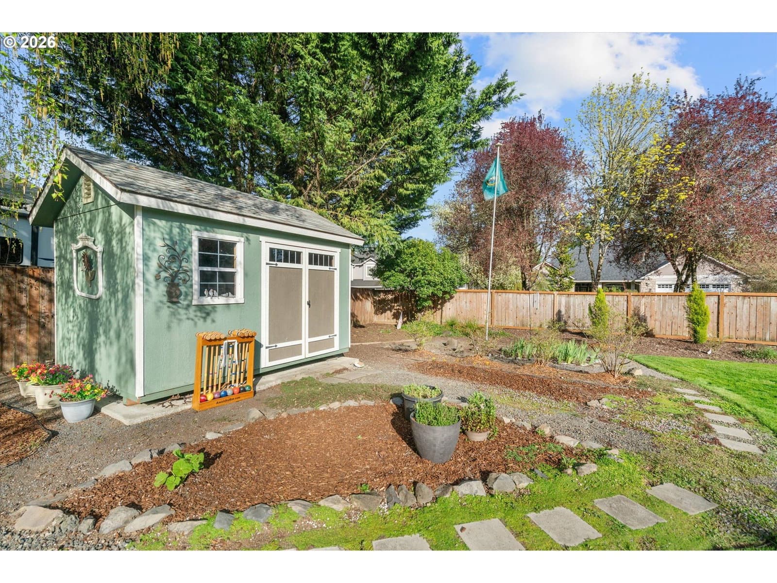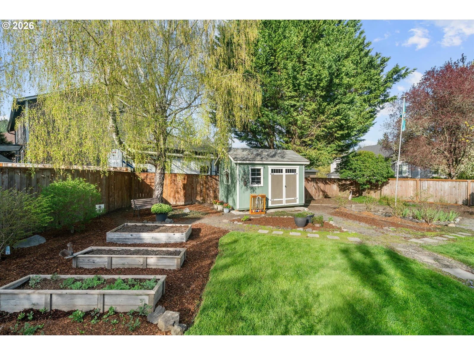 Beautiful, unique 3 bedroom, 2.5 bath home tucked back into La Center's fabulous Southview Heights neighborhood. Dramatic high ceilings and picture windows flood the living areas with light. The massive .27 acre yard, on a cul-de-sac, features raised garden beds, beautiful mature landscaping, and large shed! With new quartz countertops and ss appliances, new HVAC, and newer paint, this home is move in ready! Walk to Heritage Park and Breeze Creek trail. Minutes from I-5, Ilani, and excellent schools.