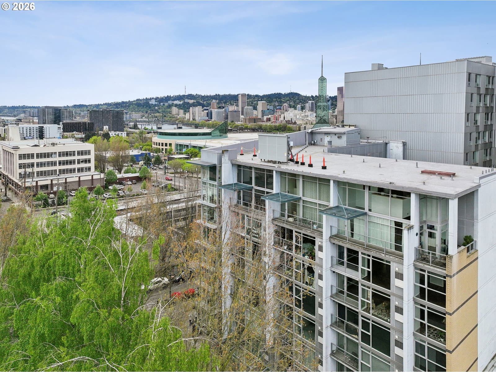 Light and bright 1-bedroom corner unit on 7th floor of Cascadian Court Condos in Portland's Lloyd Center. Unit 701 has floor-to-ceiling windows, new kitchen appliances, butcher block counter, tiled backsplash, newer HVAC, washer/dryer, bedroom closet built-ins. The condos at Cascadian Court are part of a modern mid-rise building with secure entry, and a shared courtyard. Located in the Lloyd District, the property offers excellent walkability and transit access, with restaurants, shopping, and entertainment all close by. Healthy HOA that covers water, sewer, trash, internet, cable tv, maintanance, management.