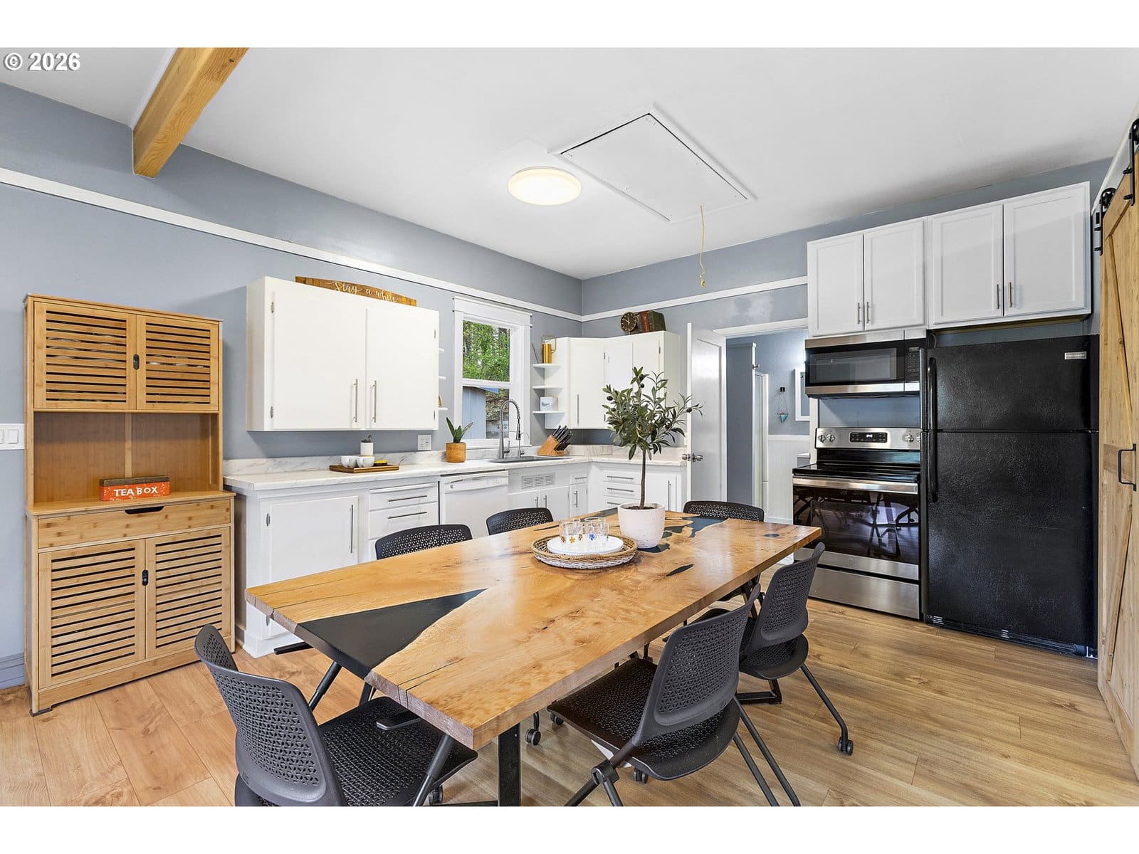 Updated cottage in peaceful setting surrounded by nature just outside city limits. Open floorplan, studio-style interior with beautiful finishes. New roof and gutters in 2025, exterior paint 2026. Other features include expansive parking, underground cellar, unfinished attic, low-voltage landscape lighting. This is move-in and comfortable living ready!