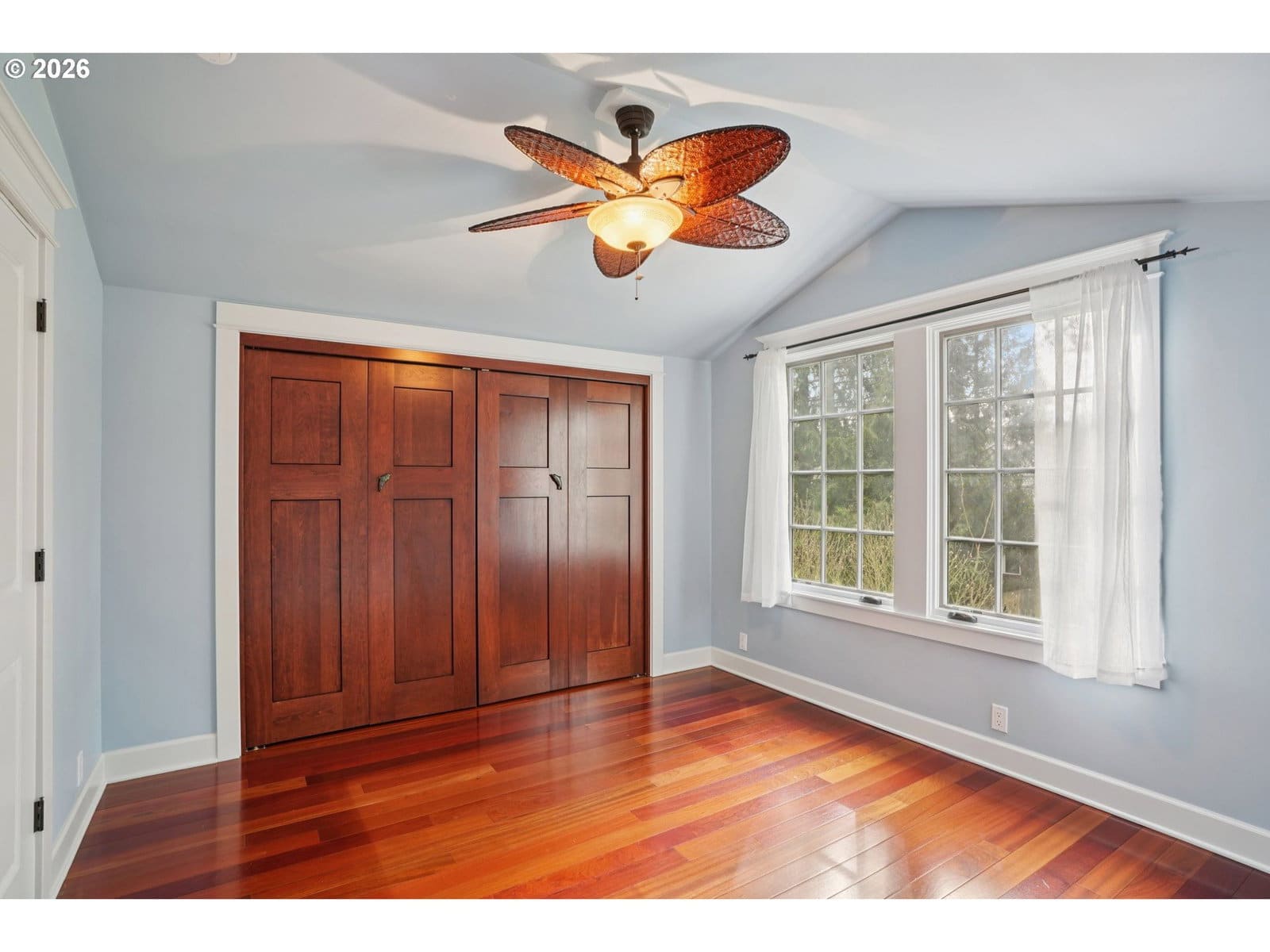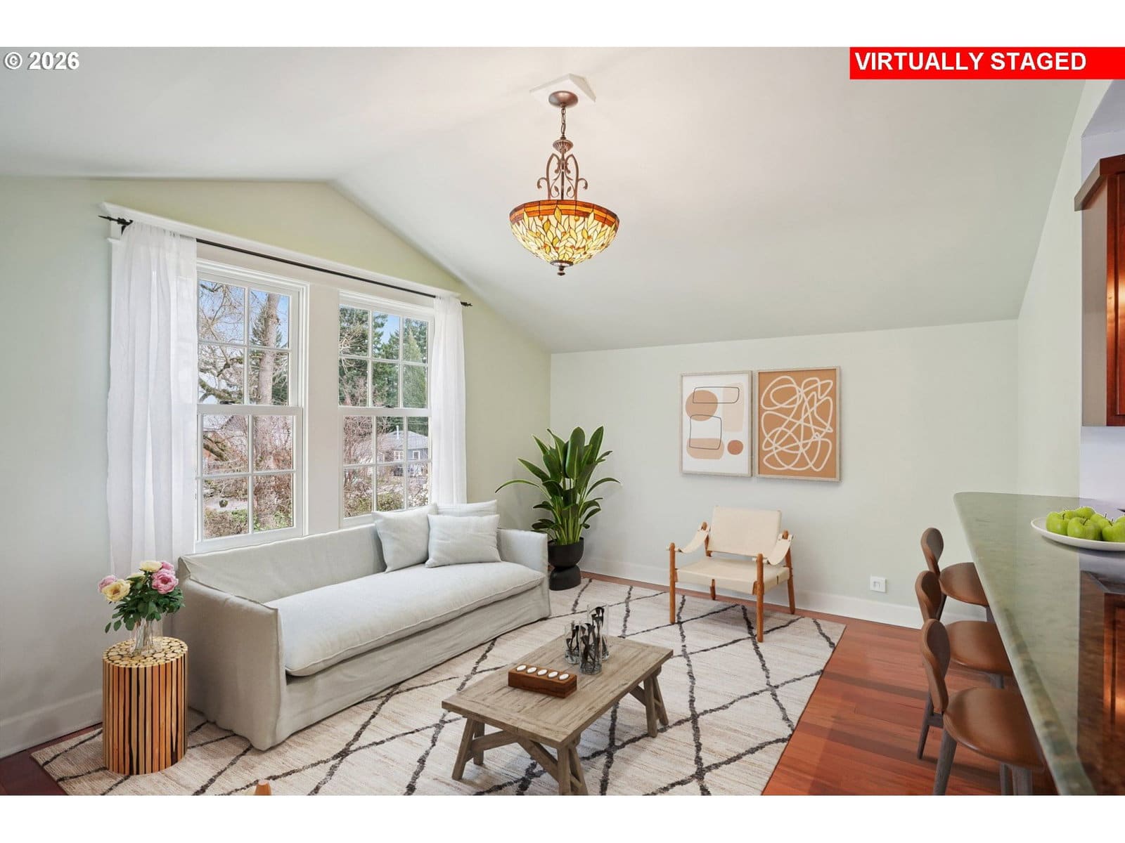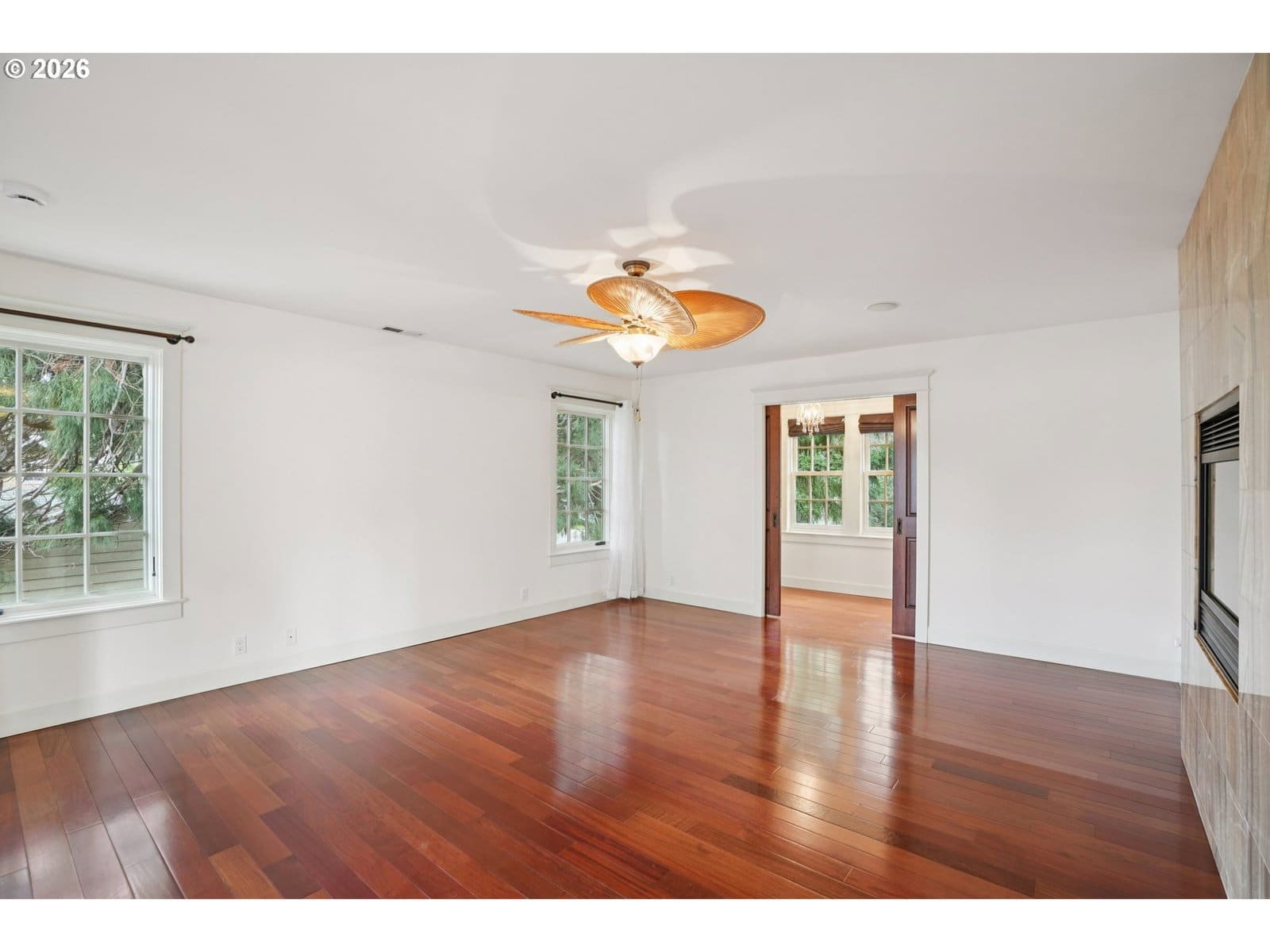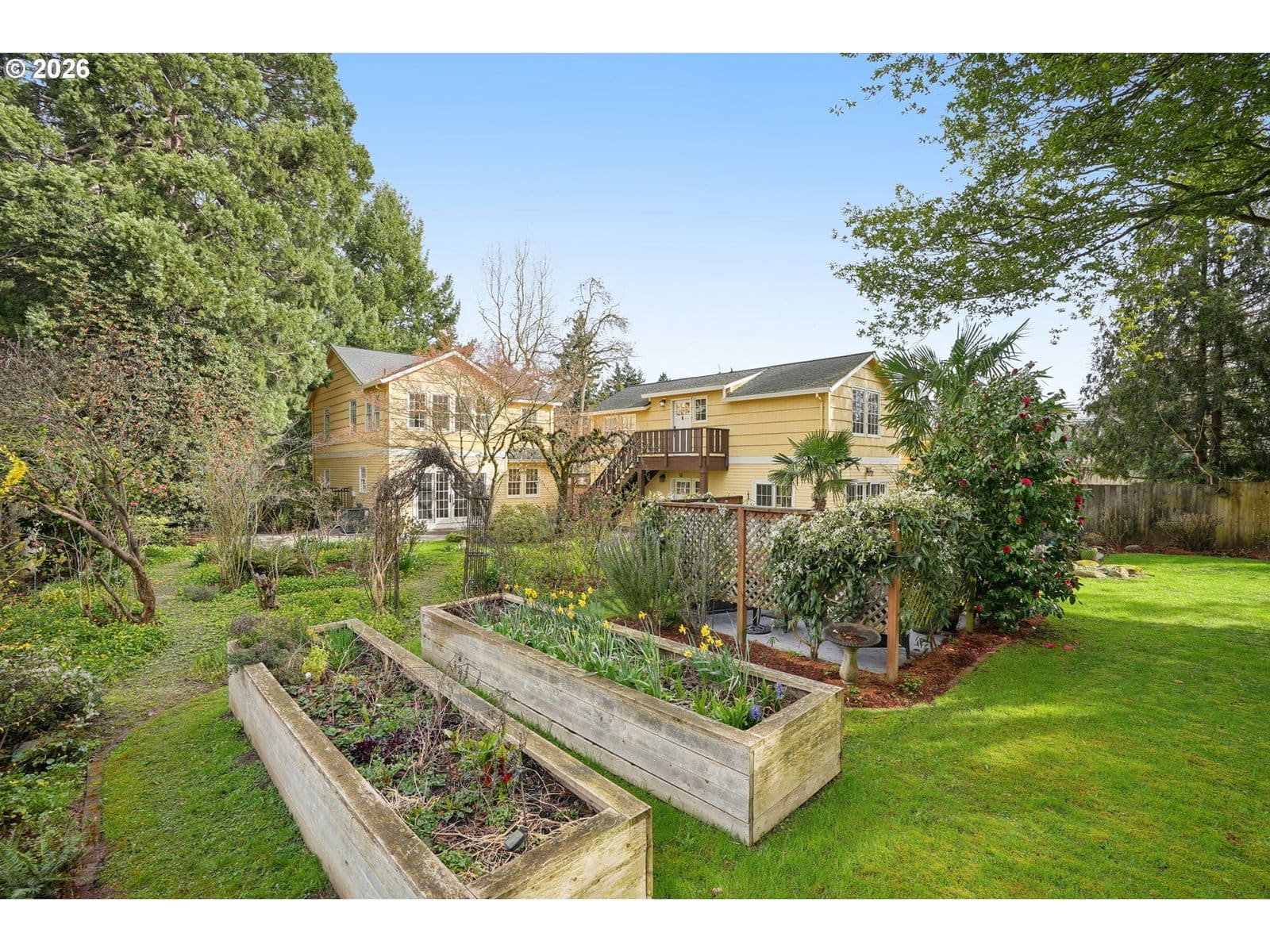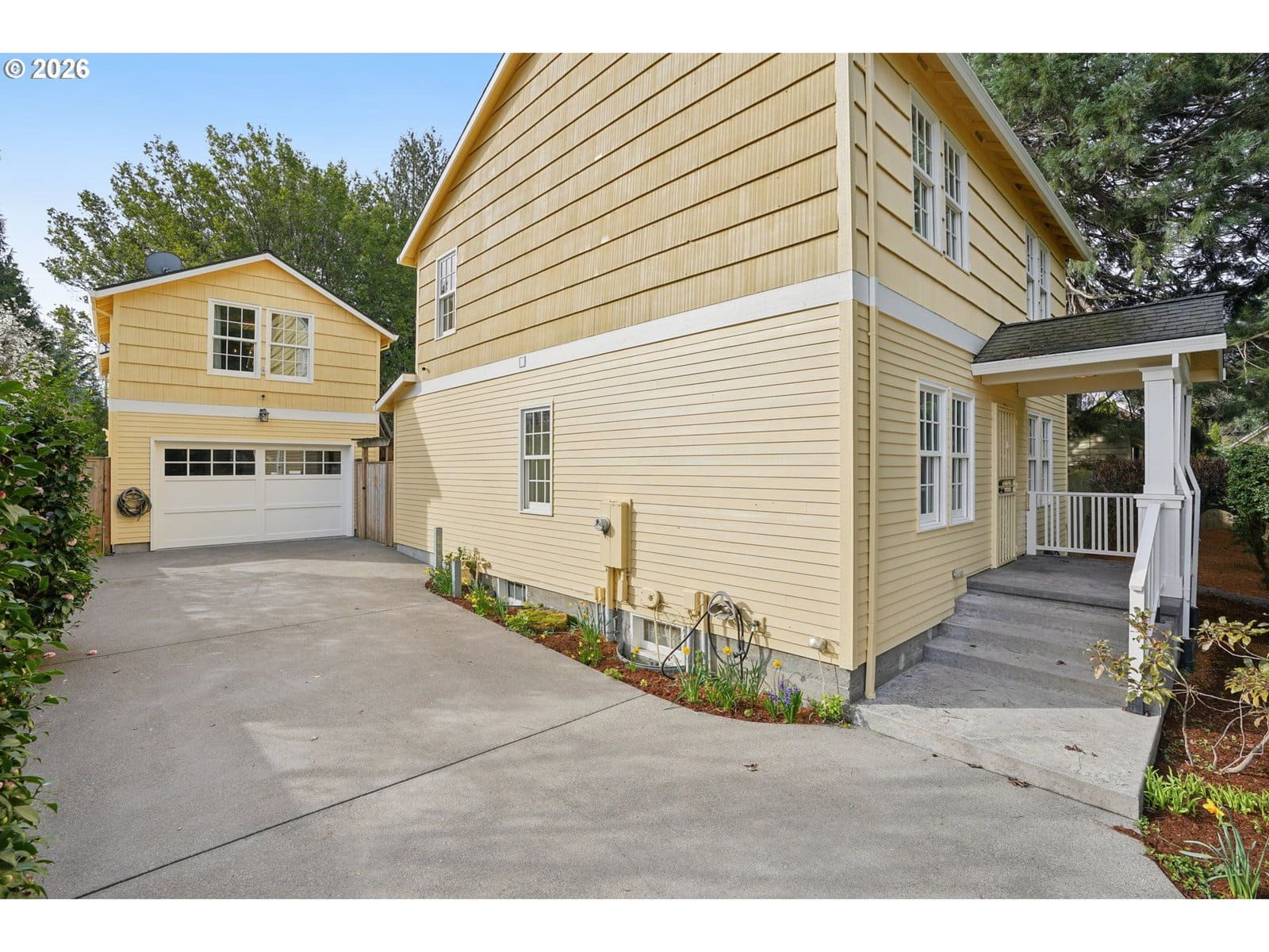 Gardener's paradise meets entertainer's dream — a .4-acre gated property with raised beds, mature trees, sweeping lawn, and multiple patios, plus a permitted ADU. New paint inside and out makes this truly turnkey convenience in Northeast Portland. A city-permitted ADU above the detached garage includes one bedroom, hardwood floors, an upgraded bathroom, a kitchen with stainless steel appliances, and a 154 square foot lower level bonus room — a private, self-contained living space ideal for guests, rental income, or extended family. The main home features an open layout with rich hardwood floors throughout and natural light from every angle. The kitchen showcases custom countertops, fine cabinetry, an island with a gas cooktop and breakfast bar, and stainless steel appliances. An open concept with main-level bedroom with french doors and built-ins, and a full bath round out the first floor. The upper level primary suite is a true retreat: a stone-surround dual-sided fireplace, spa-like bathroom with soaking tub and separate shower, walk-in closet with built-ins, and a bonus room with french doors for a home office with lots of natural light. A finished basement provides laundry and additional storage. Minutes from Fernhill Park and Rose City Park, with quick access to shopping, dining, and commuter routes. A rare chance at this much outdoor space and versatility in desirable NE Portland. [Home Energy Score = 4. HES Report at https://rpt.greenbuildingregistry.com/hes/OR10245226]
