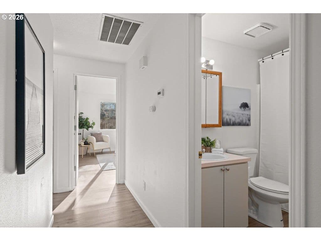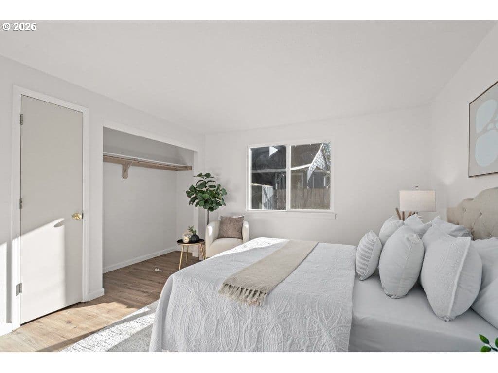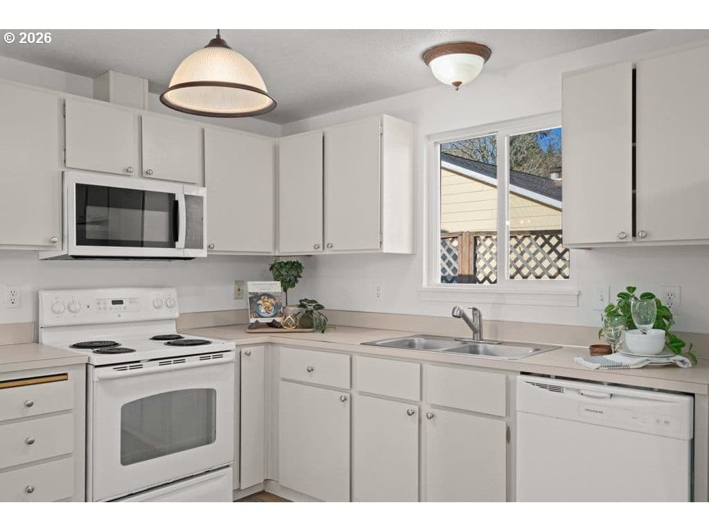 Light and bright one-level 3-bedroom, 2-bath home tucked away on a quiet private drive in Beaverton. Vaulted ceilings and an open living and dining layout create a spacious, airy feel with excellent natural light and effortless flow. The eat-in kitchen offers functional space for everyday living, meal prep, and entertaining. The en-suite primary bedroom serves as a peaceful retreat, complete with a private full bath. Two additional bedrooms and a second full bathroom complete the easy-living floor plan. Set on a large, fully fenced lot, the backyard offers exciting possibilities, featuring a utility shed with power plus an additional storage shed—ideal for hobbies, projects, and extra storage. Additional highlights include a two-car attached garage and fresh interior and exterior paint. Ideally located minutes from Nike, Intel, and the High Tech Corridor, and blocks from Arnold Park and the prestigious International School of Beaverton, this home offers comfort, convenience, and opportunity. Come see what your next chapter could look like today.