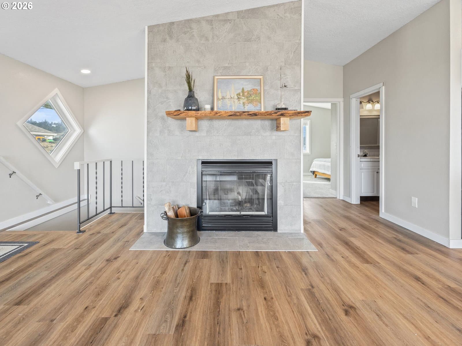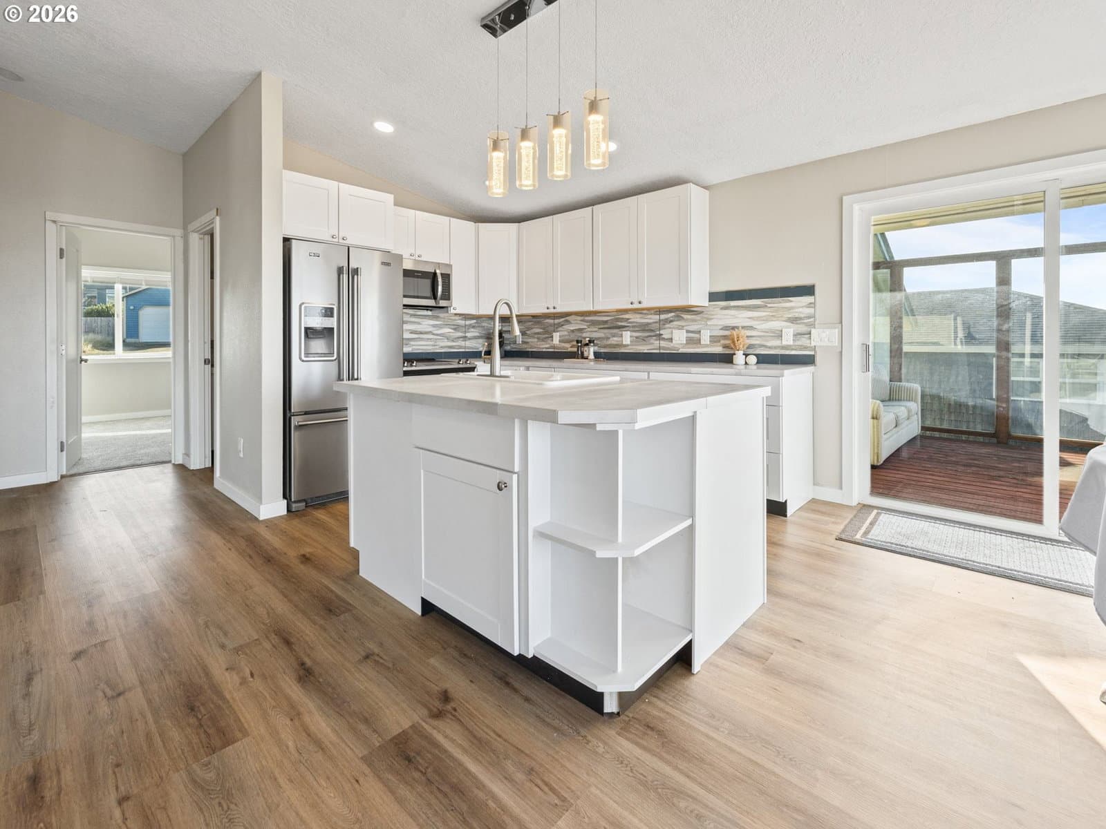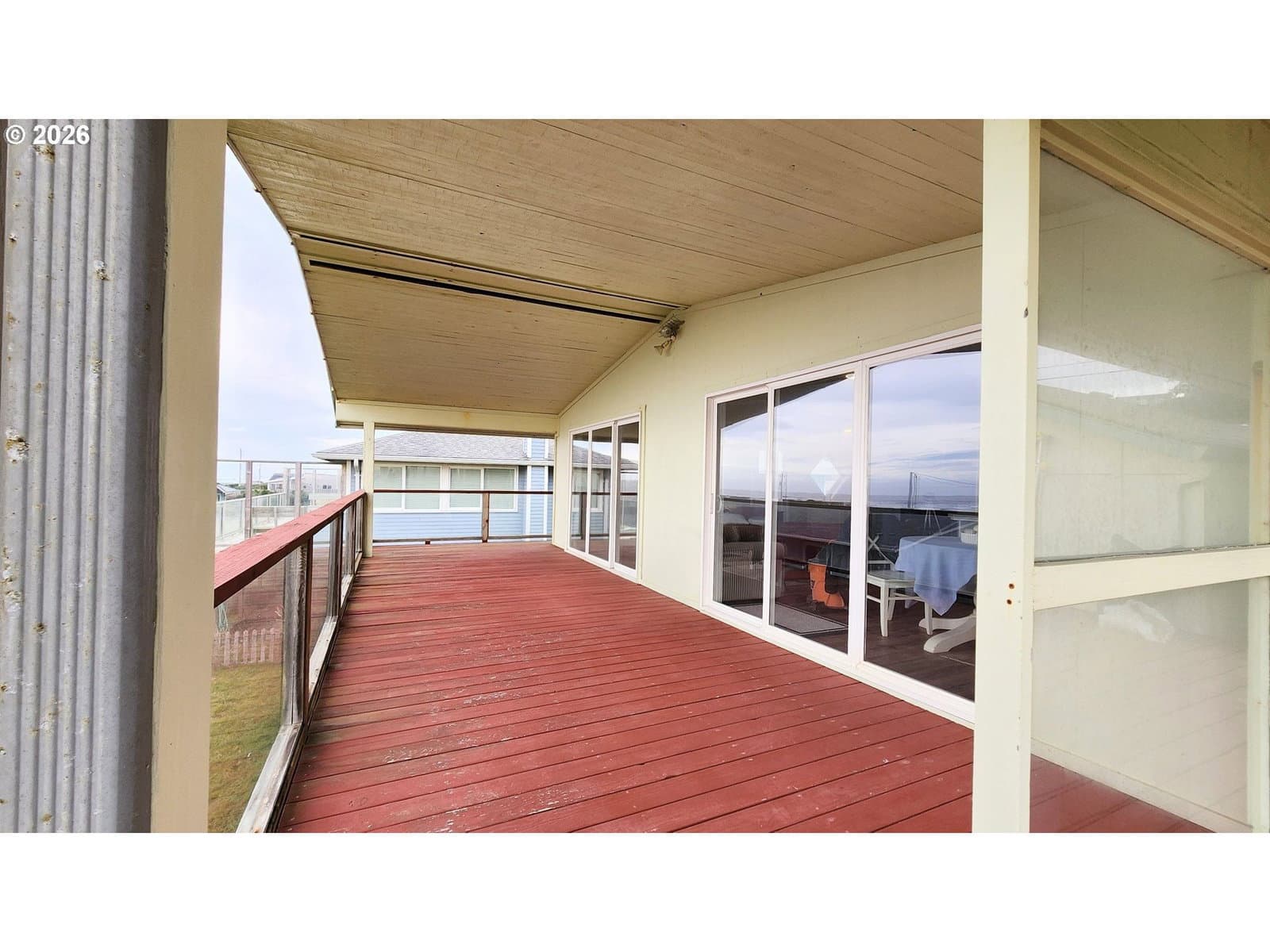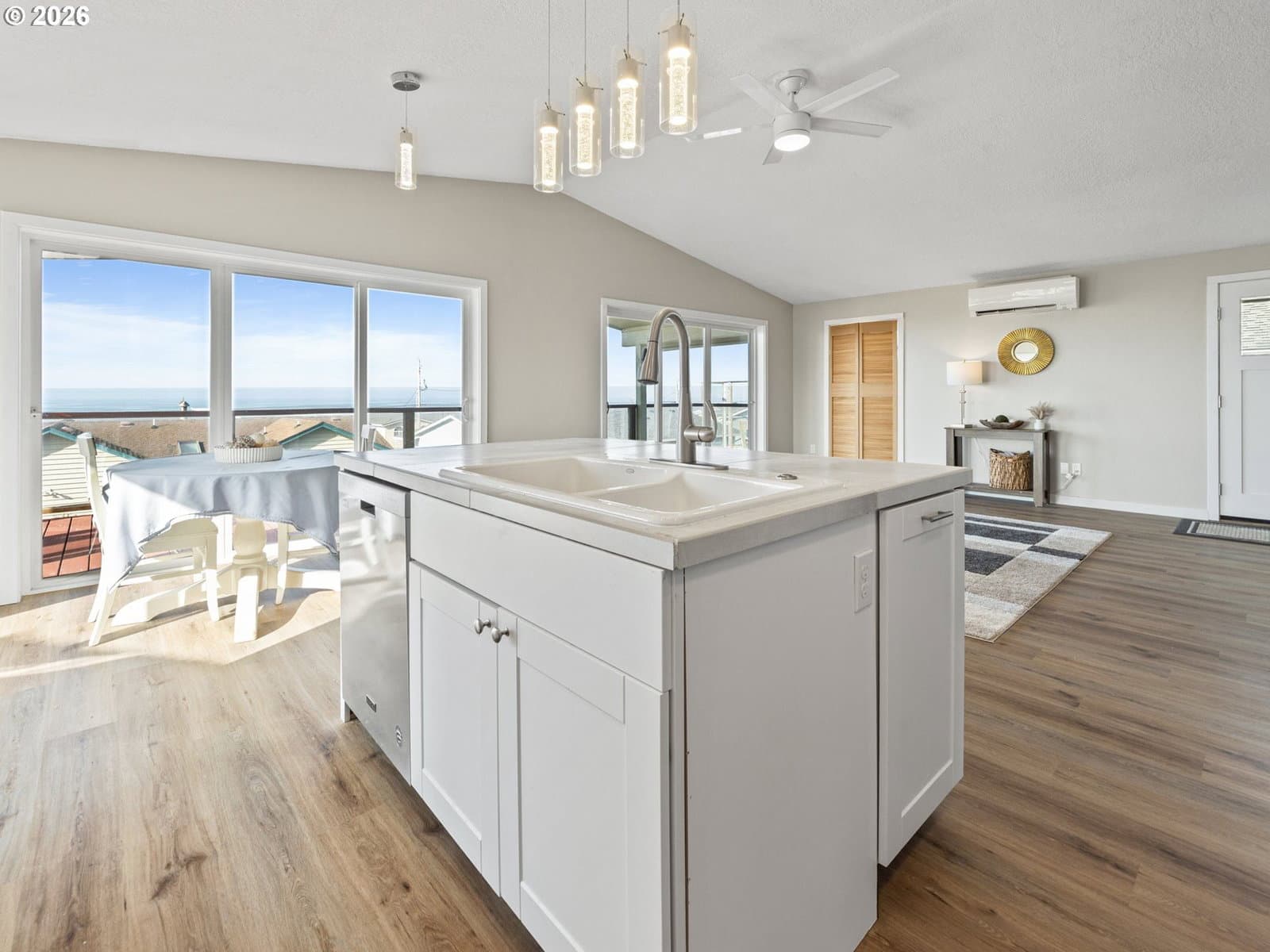 Welcome home to breathtaking ocean views and the best of coastal living. A wrap-around deck invites year-round enjoyment, perfectly framing this beautifully refreshed 3-bedroom, 2-bath home. The newly updated kitchen opens to the great room, where expansive windows capture sweeping ocean vistas and fill the home with natural light. Spend your evenings cozied up by the fireplace in the living room. Thoughtful upgrades throughout include a newly updated kitchen with stainless steel appliances, laminate flooring and plush carpet, showers in all bathrooms, fresh interior paint, lighting, and a custom-designed laundry room with built-in storage.The lower level features a private bedroom with walk-out patio access, a bathroom with a walk-in shower, a quiet office, and a living room anchored by a second fireplace. New roof installed on the home in 2026. Just one block from the beach, this home delivers sought-after ocean-view living with plenty of space.