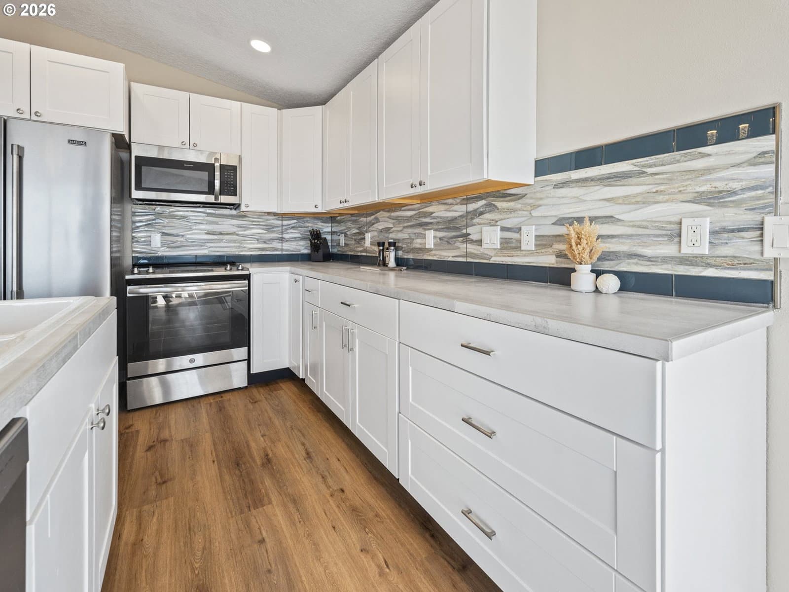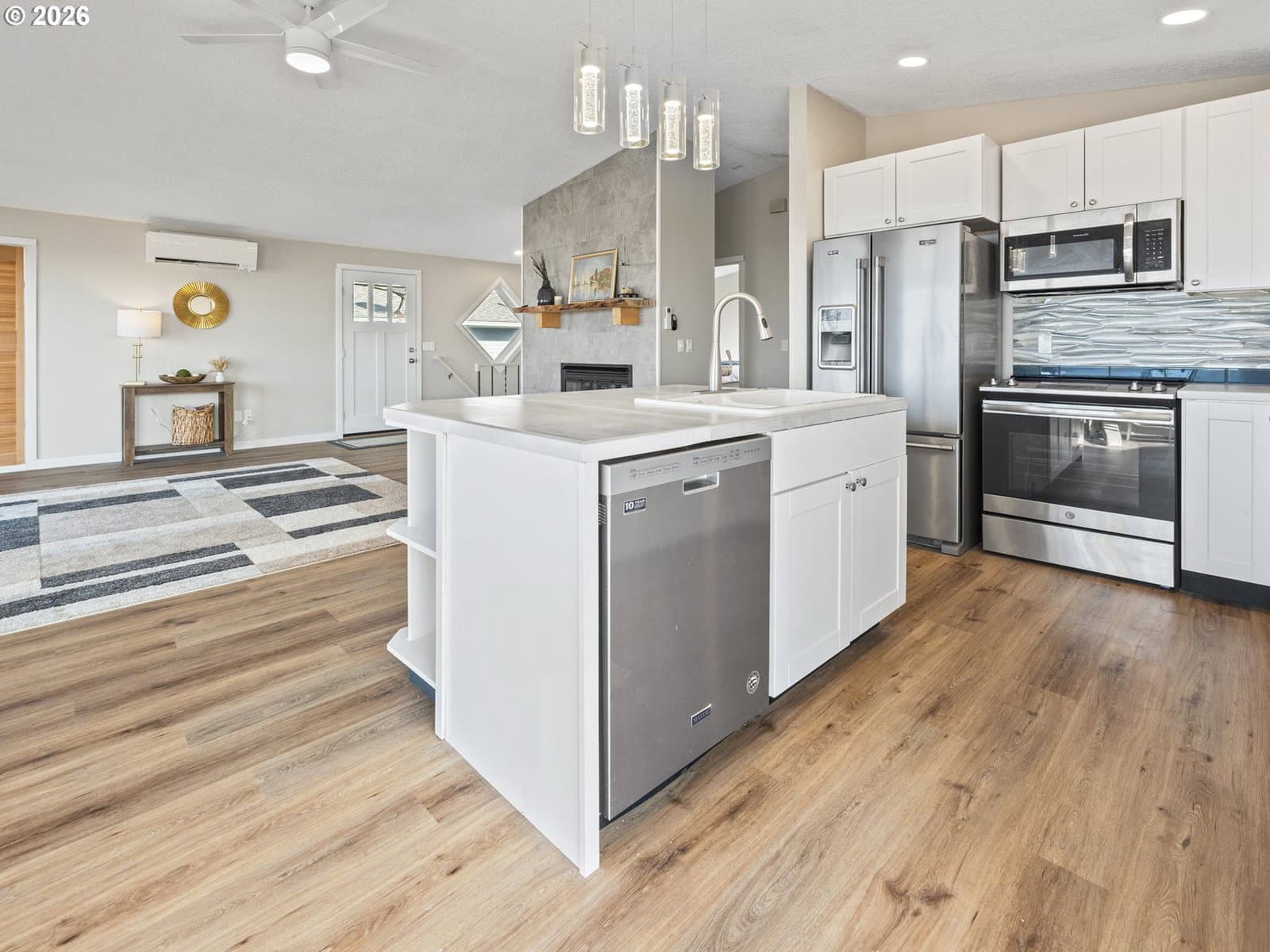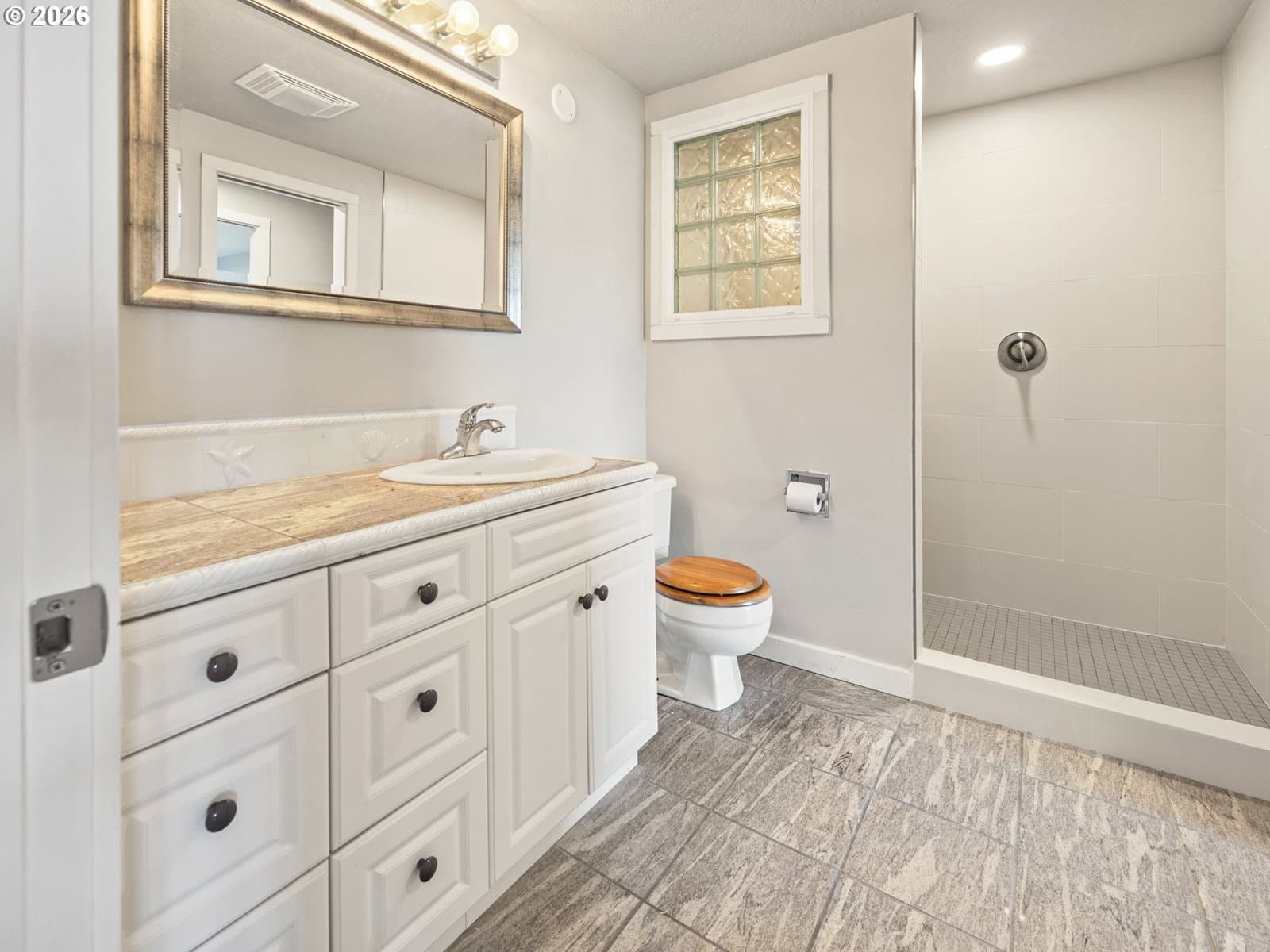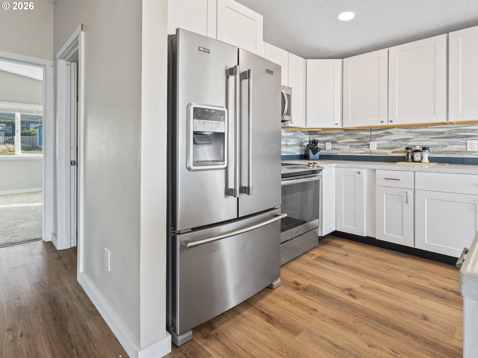 Welcome home to breathtaking ocean views and the best of coastal living. A wrap-around deck invites year-round enjoyment, perfectly framing this beautifully refreshed 3-bedroom, 2-bath home. The newly updated kitchen opens to the great room, where expansive windows capture sweeping ocean vistas and fill the home with natural light. Spend your evenings cozied up by the fireplace in the living room. Thoughtful upgrades throughout include a newly updated kitchen with stainless steel appliances, laminate flooring and plush carpet, showers in all bathrooms, fresh interior paint, lighting, and a custom-designed laundry room with built-in storage.The lower level features a private bedroom with walk-out patio access, a bathroom with a walk-in shower, a quiet office, and a living room anchored by a second fireplace. New roof installed on the home in 2026. Just one block from the beach, this home delivers sought-after ocean-view living with plenty of space.