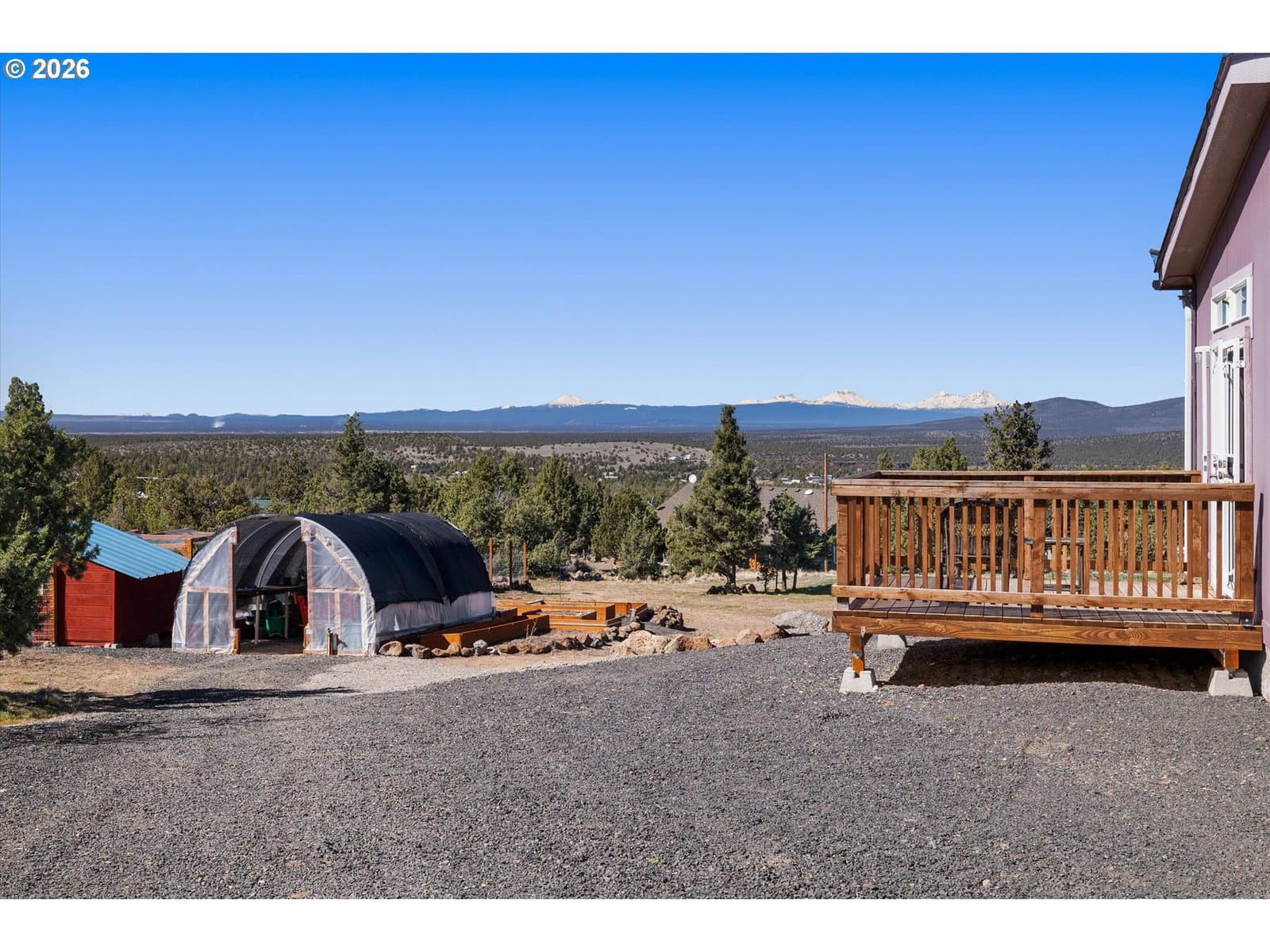 1.82 private acres with panoramic Cascade Mountain views! This 2,100 sqft home offers ON-OR-Off grid living! Excellent self sufficiency and homestead potential. Featuring 4 bedrooms and 2 bathrooms with double sinks and a spacious open layout. The primary suite includes a private porch, walk through closet, and ensuite bath with 6' jetted tub. The kitchen features granite countertops, farmhouse sink, island, gas cooktop, and built in wall oven with a propane fireplace. 3 porches provide relaxing outdoor spaces. Designed with sustainability in mind, the property includes a 13.175 kW solar system with 11kWh battery backup, 2 high efficiency mini splits, propane and an EV outlet. 24' x 41' insulated shop with electricity. Even a greenhouse, insulated shed with 220V, pump house with storage, and 3 fenced animal areas including a chicken coop, turkey habitat, and small barn with a run.