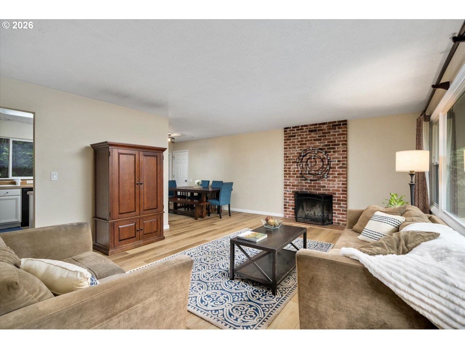 With strong curb appeal and a beautifully maintained front and backyard, this home offers a well designed layout and a natural connection between indoor and outdoor living. The main level features a spacious living room that flows naturally into the dining area and kitchen, creating an easy everyday layout. Newer luxury vinyl flooring runs throughout the main level, adding a clean and updated feel.Downstairs, a large family room provides additional living space with good natural light and a wood burning fireplace, offering flexibility for recreation, media, or gathering. Another fireplace in the main living room adds warmth and character to the home.The backyard is a standout feature, with a private, beautifully landscaped setting and a patio that connects directly to the dining room through sliding doors. This space is ideal for outdoor living and entertaining, with room to enjoy summer evenings and everyday use. A sport court adds another layer for entertaining and activity in the outdoor space.Major system updates include HVAC with AC and furnace in 2021, water heater in 2023, plumbing system replacement in 2024, and new flooring in 2026. The home also includes a basement waterproofing system and an updated sump pump, providing added confidence in long term maintenance. Kitchen appliances have been updated in recent years as well.Located in West Linn, this home offers convenient access to parks, schools, shopping, and restaurants, supporting easy everyday living.