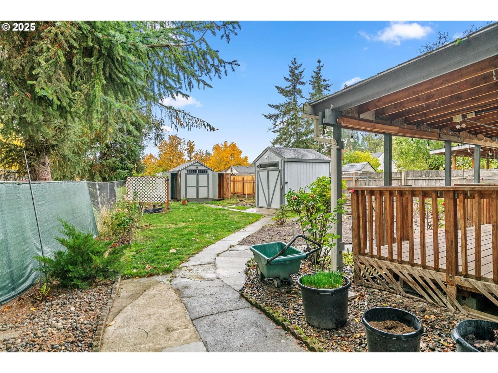 This 3-bedroom, 2-bath home has a head start on your remodel, with fresh interior paint and new carpet already completed.Featuring an inviting floor plan, one bedroom is separated from the others, offering privacy and flexibility.The home offers a spacious backyard with a covered deck, two sheds, and multiple utility rooms, making it ideal for storage, hobbies, or future improvements.A livable project home, you can move in now and update over time while making it your own.Tucked away on a quiet dead-end street yet close to all the conveniences of Salem, this home is ready for your finishing touches.