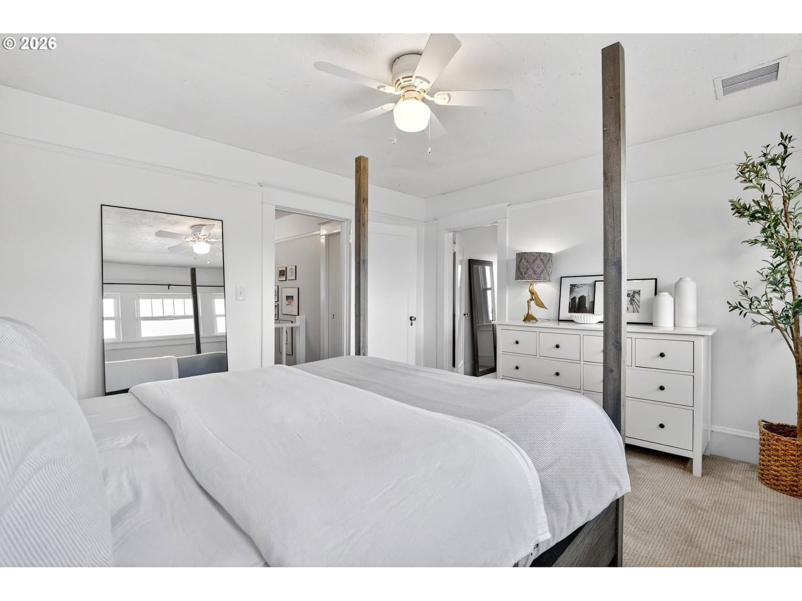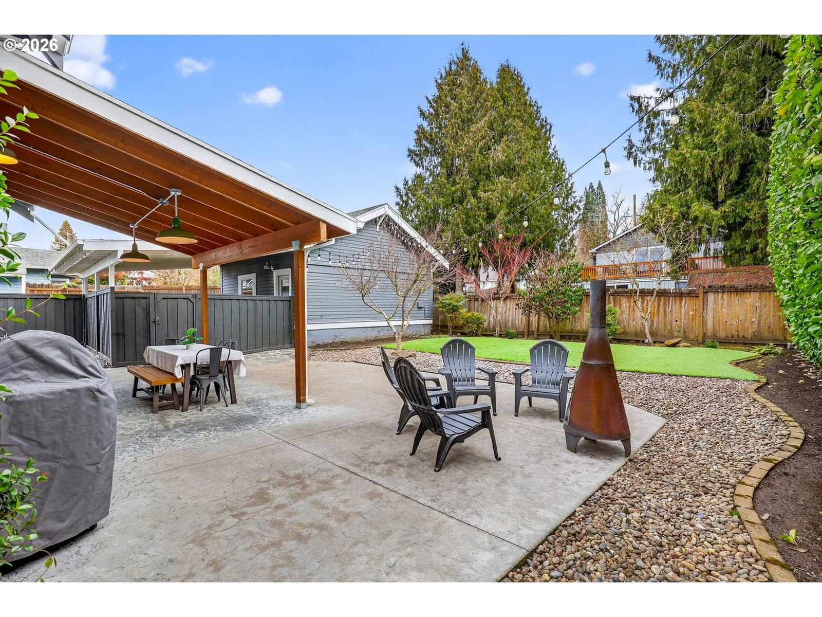 Step onto the welcoming front porch and immediately feel the timeless charm of this rare historic bungalow in Oregon City. Lovingly maintained over the years, this home reflects a true pride of ownership that is felt from the moment you arrive. Inside, natural light fills the living and dining rooms where a cozy woodstove creates a warm and inviting gathering space, perfect for relaxing at the end of the day or hosting friends and family. The beautifully updated kitchen has been thoughtfully designed with rich hickory cabinets, a farmhouse sink, and quality finishes throughout. It is a space that blends the character of the home’s era with modern function. Also included on the main level is a comfortable bedroom and an office that is ideal for working from home, hobbies, or a quiet retreat. Upstairs you will find three additional bedrooms with walk-in closets and an impressive bathroom featuring a walk-in shower, soaking tub, and heated floors. The dry basement provides excellent storage and flexibility. Outside, the property continues to impress with a detached garage and its own electric meter that is well suited for projects or a workshop. A carport and additional parking area offer plenty of space for guests. The fenced backyard and covered patio create a wonderful setting for summer evenings, outdoor dining, and relaxed entertaining. Located in the heart of the McLoughlin Historic District, this home is just a short stroll to the library, coffee shops, restaurants, and local shops in downtown Oregon City. A truly special home where history, comfort, and lifestyle come together. Come see it in person and fall in love.