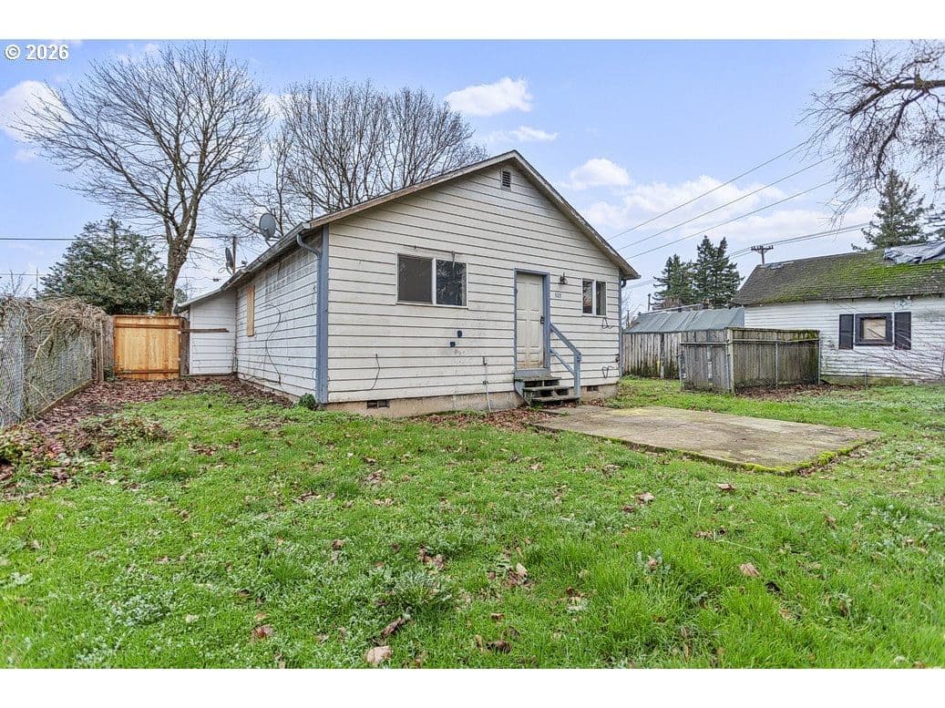 This charming 1950 bungalow offers solid potential on a spacious 0.18-acre lot (7,872 sq ft). The single-story home features 2 bedrooms, 1 bath, and 846 sq ft of living space, with a detached garage, composition shingle roof, forced air heat, and concrete foundation. The interior provides a blank canvas with open, light-filled rooms, wood laminate flooring, and a practical layout awaiting updates. Exterior features include pressboard siding, a fully fenced backyard suitable for gardening or outdoor use, and a quiet, tree-lined neighborhood with convenient access to shopping, parks, and major routes. This property is ideal for customization, and renovation. Bring your ideas and transform this classic mid-century home!