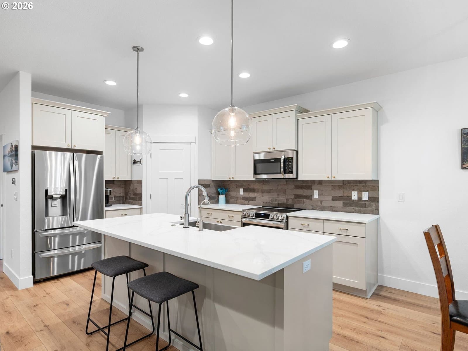Highly sought-after Abernathy Landing single-level home! This 3-bedroom, 2-bathroom property offers an ideal layout and backs to serene green space for added privacy. Features include a spacious 3-car garage plus additional RV/toy parking. Recent updates include new flooring, fresh interior paint, and an updated kitchen with new countertops. Electrical is already in place for a hot tub. The yard has been professionally landscaped, and the property was previously approved by the HOA for a shop—offering incredible potential. All of this for under $700,000! Open Houses: Saturday 4/18 & Sunday 4/19 1-3pm.