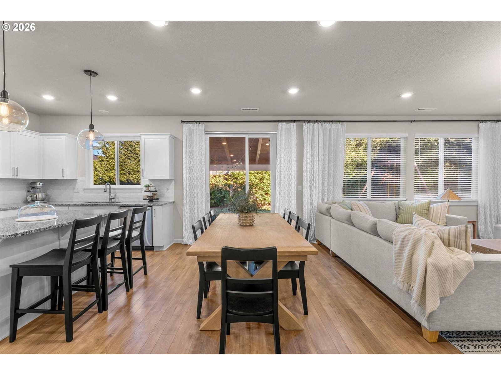 This move-in-ready home offers a highly desirable layout with four bedrooms located upstairs and a dedicated office on the main level, providing clear separation between living, working, and resting spaces. Situated in an established neighborhood with no HOA, the property also features a three-car garage and a floor plan designed for long-term functionality.High ceilings and abundant natural light enhance the open feel throughout. The open-concept kitchen includes stainless steel appliances, a large center island, and direct connection to the living and dining areas—ideal for everyday use and gatherings.The fully fenced backyard has been thoughtfully improved with privacy trees along the perimeter, creating a sense of privacy and comfort. A covered patio extends outdoor living space, while the spacious side yard adds flexibility for storage, recreation, or hobbies.Additional features include a tankless water heater, generously sized bedrooms, and a layout that balances openness with defined spaces.Homes offering four bedrooms upstairs, a main-level office, no HOA, and usable outdoor space are consistently in demand. This property presents a strong opportunity for buyers seeking a well-maintained home ready to enjoy from day one. Welcome Home!