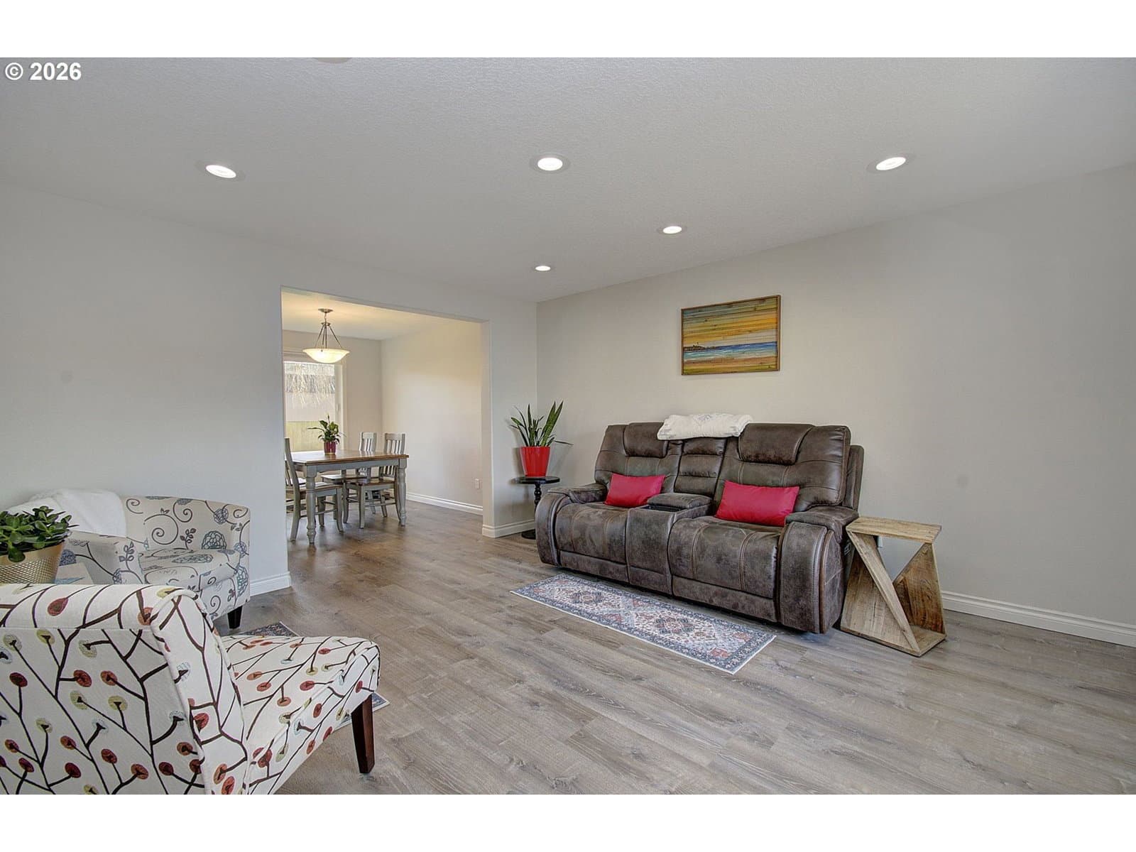 Step into a storybook setting where comfort meets charm in this beautifully updated 4-bedroom, 2½-bath home. From the moment you enter, you’ll feel the warmth of new paint and elegant LVP flooring that flow throughout the spacious layout. The formal dining and living rooms invite cherished gatherings, while the open family room—just off the thoughtfully designed kitchen with stainless steel appliances and an inviting eating bar—sets the scene for everyday moments to remember. Vaulted ceilings add a touch of grandeur, and the large master suite, complete with a walk-in closet, offers a peaceful retreat. Outside, a fenced backyard with a generous deck invites you to unwind under the evening sky, while the dedicated RV pad with a 30-amp circuit ensures convenience for your adventures. Perfectly located near schools and shopping, this move-in ready treasure is more than a house—it’s the next chapter of your love story, waiting to be written.
