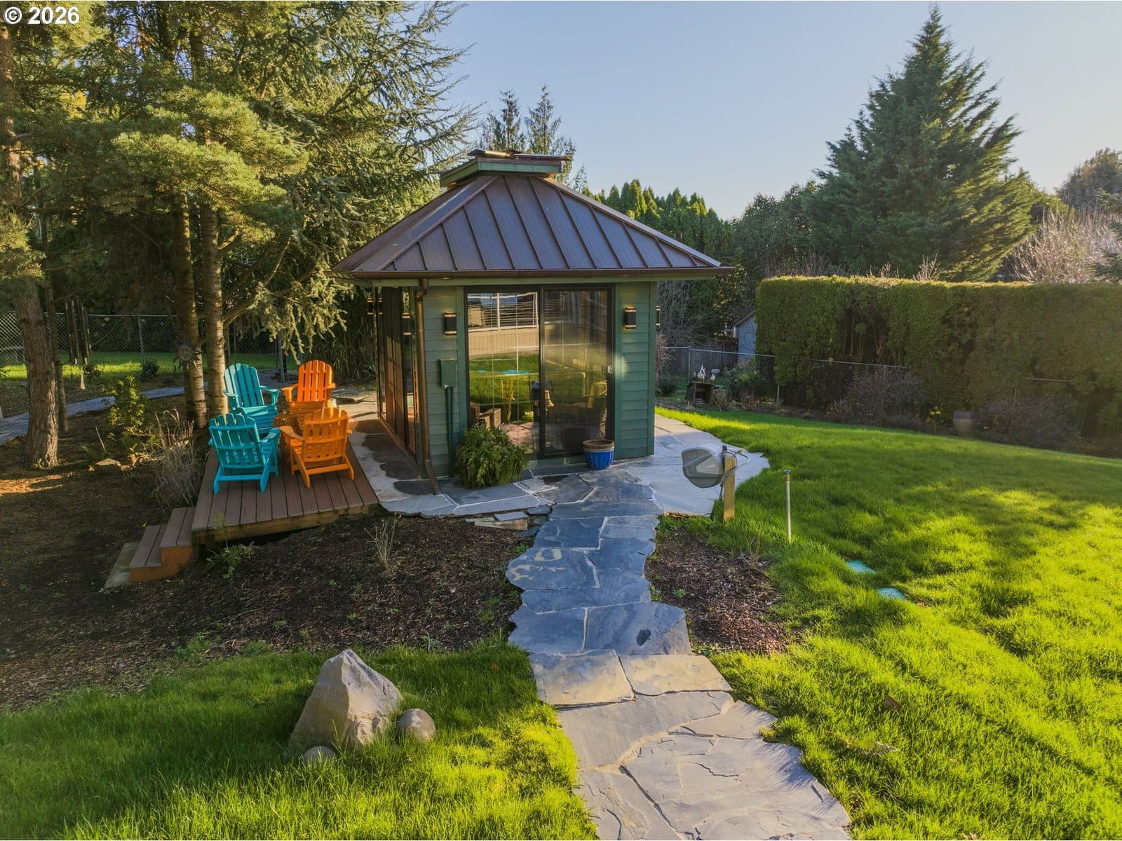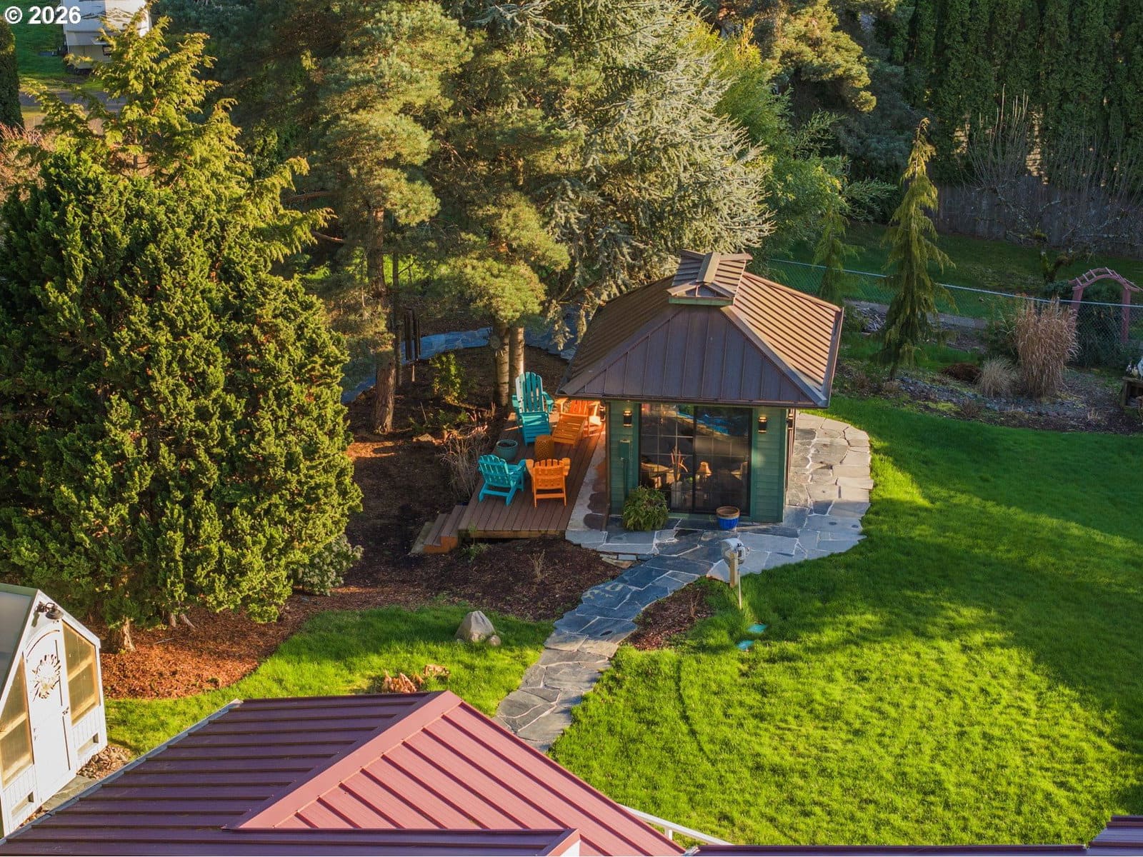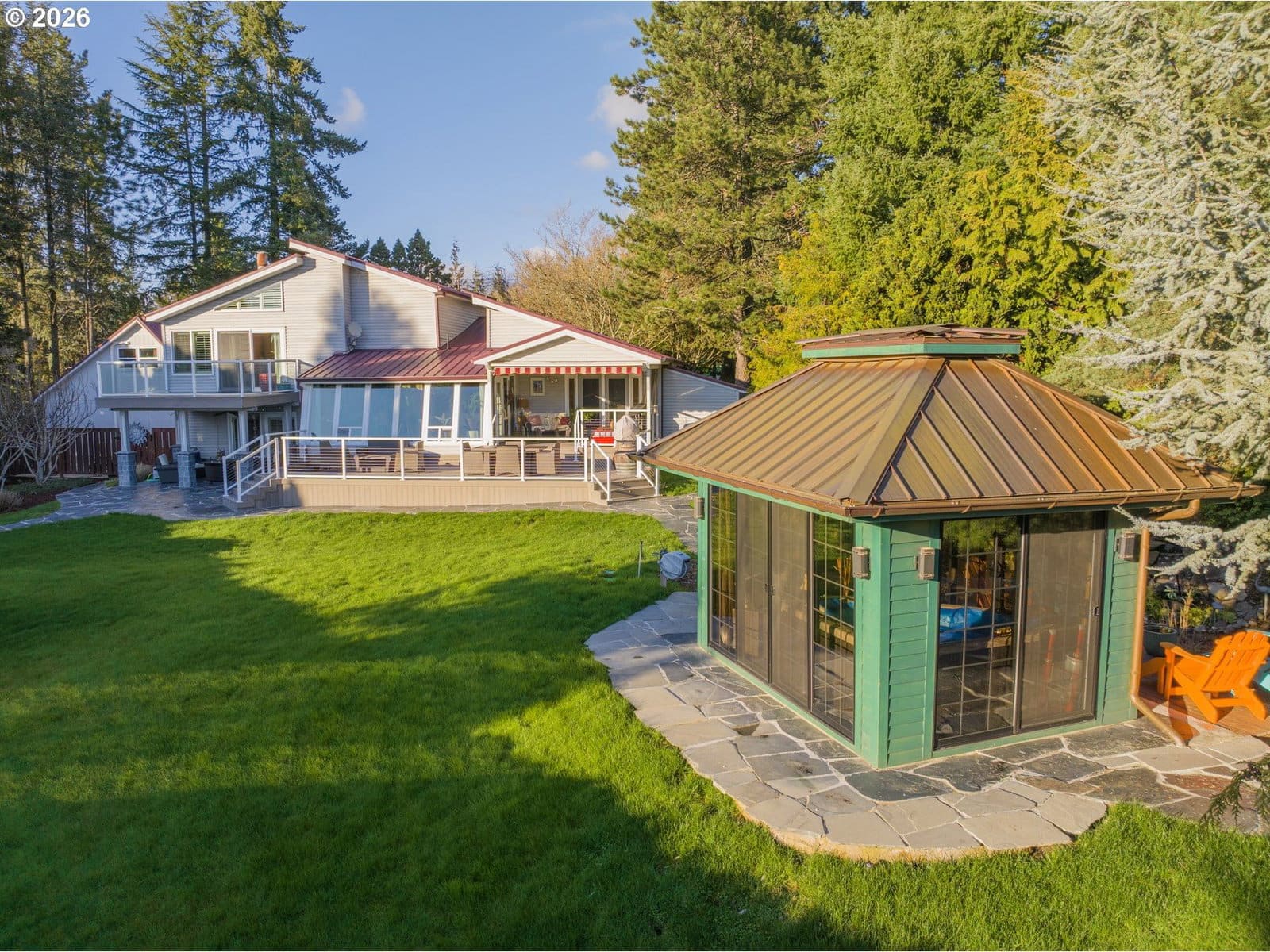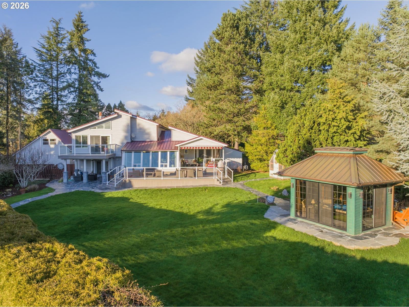 OPEN HOUSES: SAT 02/14 12-3PM, SUN 02/15 12-3PM. Introducing a private sanctuary of luxury living on nearly a full acre in the heart of Bull Mountain. Surrounded by lush greenery and meticulously manicured grounds, this estate offers a rare blend of serenity, privacy, and refined outdoor living. A true highlight of the property is the authentic Japanese tea house—an inspiring retreat designed for quiet reflection, morning tea, or peaceful evenings under the stars after a soak in the hot tub. Every inch of the landscape has been curated to create a calming, resort-style atmosphere. The grounds are thoughtfully positioned for a future pool, while the home itself is designed for entertaining—offering generous indoor and outdoor gathering spaces ideal for hosting large events or intimate celebrations alike.Inside, you’ll find expansive living areas filled with natural light and a beautifully finished sunroom that seamlessly connects you to the outdoors year-round. Above the detached garage/shop, a separate studio-style guest quarters (ADU-style) provides flexible living options—perfect for multi-generational living, extended stays, rental income, or private workspace. Car enthusiasts and hobbyists will appreciate the rare dual 4-car garages, delivering exceptional room for vehicles, storage, or a workshop setup. The circular driveway with two entrances onto Bull Mountain Road enhances both convenience and curb appeal. Along the west side of the property, abundant RV and boat parking offers additional flexibility, or potential space for an additional dwelling (buyer to perform due diligence). With possible divisibility and development potential, this property offers not only luxury living but long-term upside. This is more than a home, it’s a lifestyle. A private retreat, an entertainer’s dream, and a rare opportunity in one of Bull Mountain’s most sought-after settings.