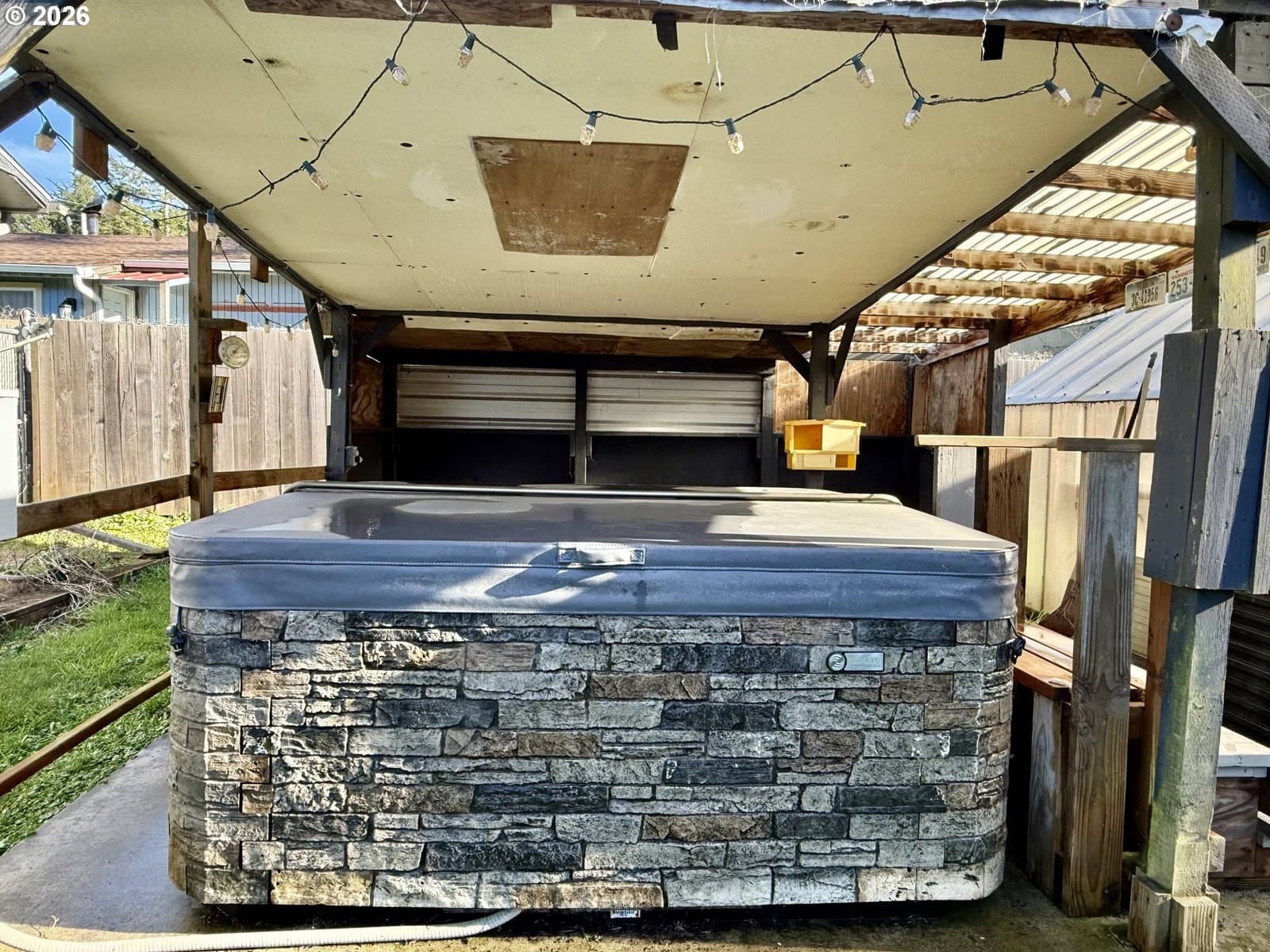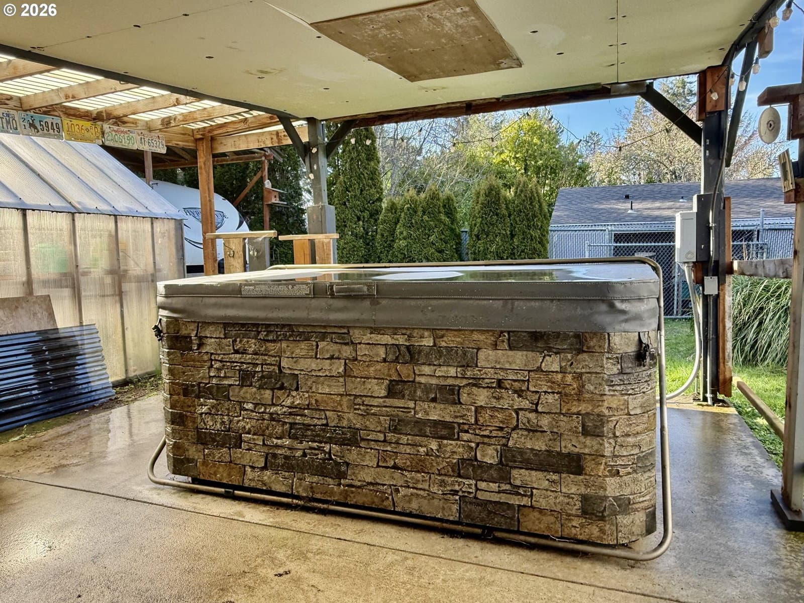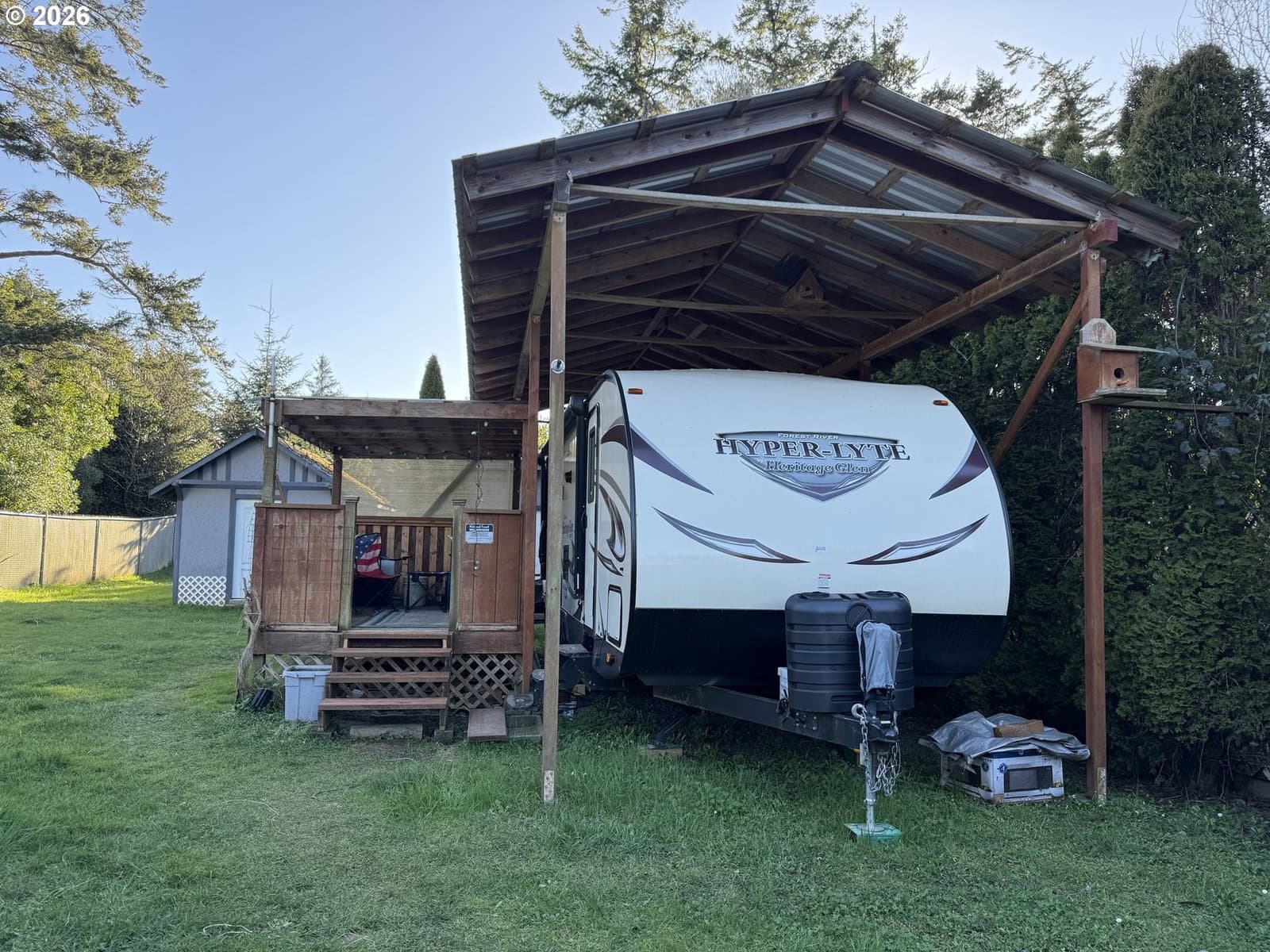 Country living with elbow room on .23 acres, but just mins to bay and water views, beach, shopping and restaurants. Soak up the day on the covered wrap around porches and relax in the evenings in the hot tub. Enjoy sustainable living and grow your own food in the large greenhouse. RV shelter is timber constructed with cabana and full hook ups for company or for your own escape RV. Abundant indoor storage and workshop space with a large storage shed and 15 X 27 workshop with its own electrical panel, and wood floor. Open kitchen with large windows and abundant natural light. Includes fridge and range. Spacious living room, 2 bedrooms and full bath with shower over tub combo. Recent updates and improvements include: Covered RV port, timber frame wrap round deck, insulation under floor, vinyl frame windows, house roof, Heat Pump, water heater. A few miles drive to Botanical Gardens & Drake Point where you can see and hear the sea lions and whale watch.