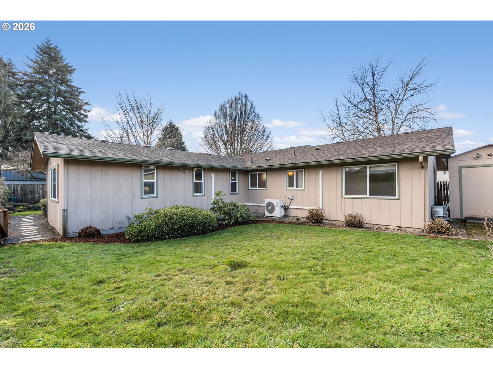 Looking for a single-level, move-in ready, well-built home, with a great yard, in a walkable neighborhood close to everything...then look no further! Notable features for this sweet house include a NEW roof and skylights ('25 install), hardwood floors, updates to the kitchen and bonus room, a ductless heat pump system (2 heads - heat/AC), a new pellet stove, vinyl windows throughout, great storage, and both a living AND bonus room! And thoughtfully priced to accommodate the cosmetic updates of your choice! Enjoy a fully fenced backyard with a patio, mature landscaping, a small water feature, and a garden shed w/ 110 power! This beloved neighborhood is a quick walk to the river and boat launch, schools, parks, the bus line, shopping and restaurants. And it's just a couple blocks away from the newly developed Santa Clara Park with a playground, outdoor community gathering space, picnic shelter, water/spray play feature, and with both soft-surface walking trails and bike/pedestrian path connectivity through the park, which will eventually meet the West Bank extension project. According to Parks & Rec website (link is noted in this listing), future phases of park development will include a community center and pool, court sports, a dog park, and a community garden. Laundry hook ups are in the garage, and sellers will leave the washer/dryer! Don’t miss out on this delightful home! Property is partially in Flood Zone A - flood insurance likely required. Quote for annual flood insurance at $905/yr is attached in docs section. Buyer to do their own due diligence. The super LOW County property taxes, and the irrigation well, are notable benefits for this home, when comparing this listing to similar ones on City taxes.