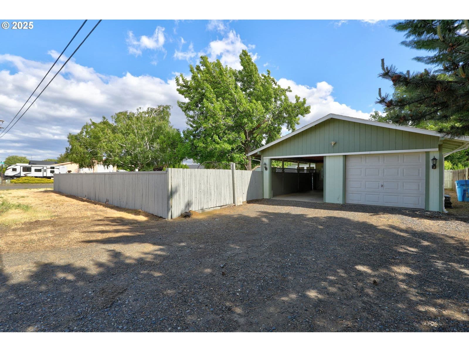 Situated on over a quarter of an acre corner lot on Iola and Central Blvd this spacious home has many quality updates including a 480 square foot ADU, "cabin" with a full bathroom, kitchenette and murphy bed! The 1830 square foot manufactured home has Travertine tile floors and granite counters in the kitchen as well as a solid surface cooktop, under counter lighting and lit glass front cabinets. The large kitchen has an area for a dining table as well as an additional dining room between the living room and kitchen.The bathroom in the primary suite has heated tile floor and a jetted bathtub. Both bathrooms have beautiful tile showers with glass enclosures. All three bedrooms have ceiling fans and walk in closets. One can access the back patio and yard through the laundry room. Down a few steps and across the patio is a large lovely pond with water lilies. The adu/cabin can enjoy the view of the backyard pond through the french doors. The murphy bed in the cabin folds flat against the wall adding to a spacious feel in this efficient floor plan.The kitchenette and full bath offers the opportunity for a separate office space or a caregiver quarters. There is a garage and carport attached to the cabin. The carport also has a gated access to the back yard. The yard is fenced, has a sprinkler system and there is one parking space off Iola street plus parking for several vehicles off sixth street.