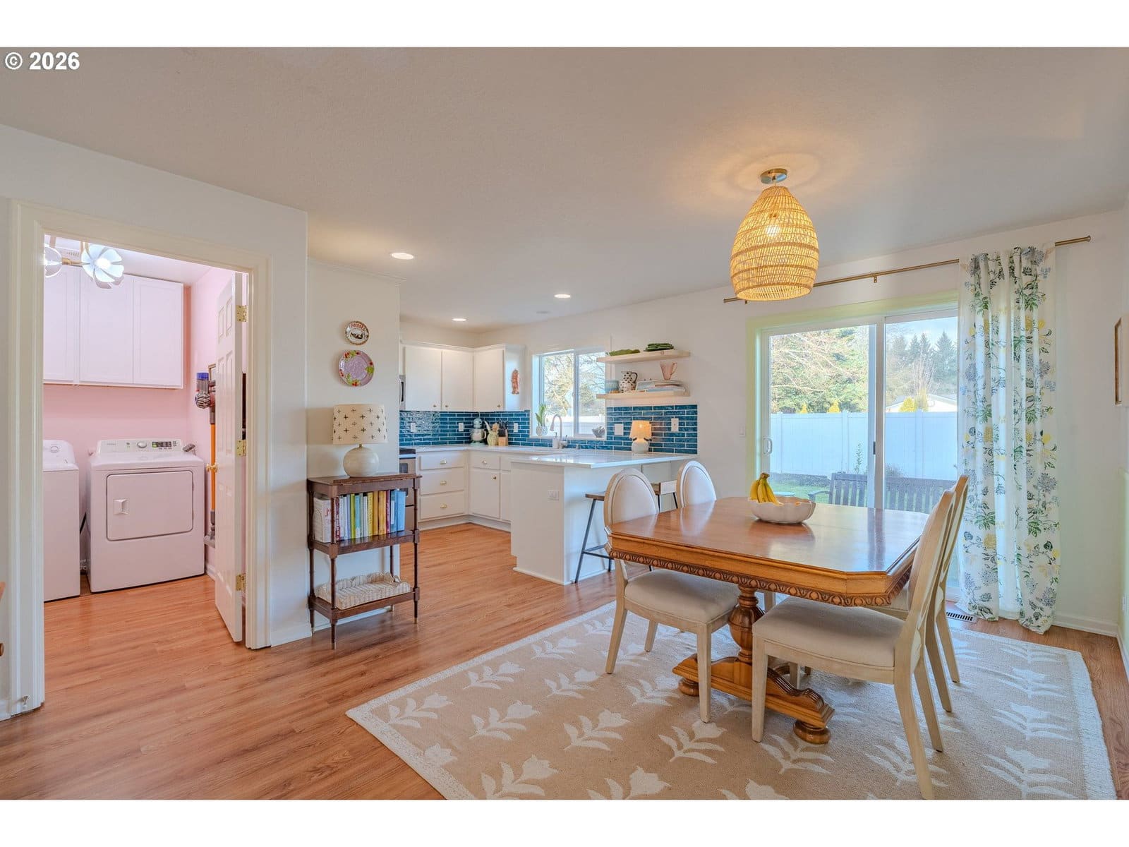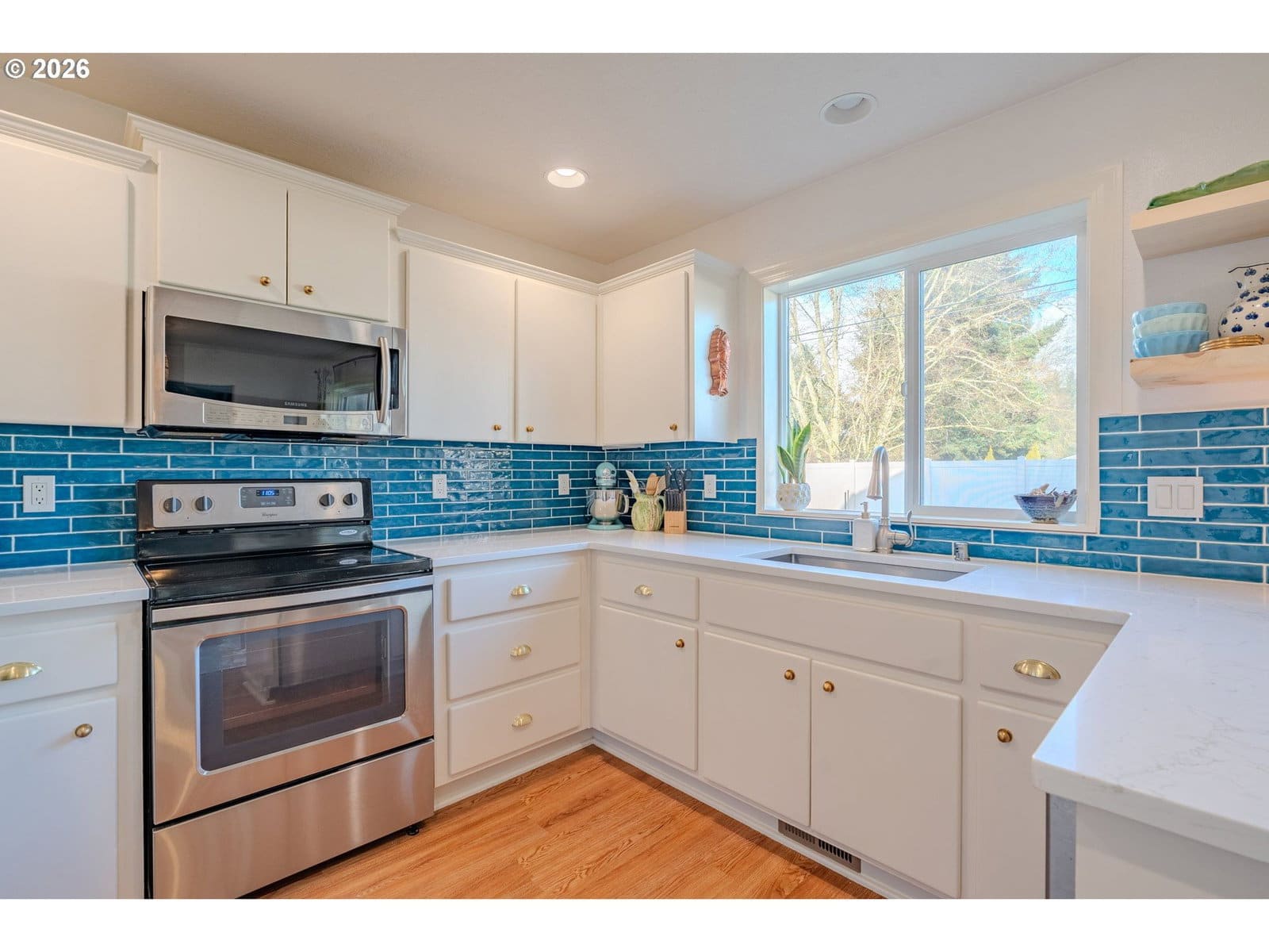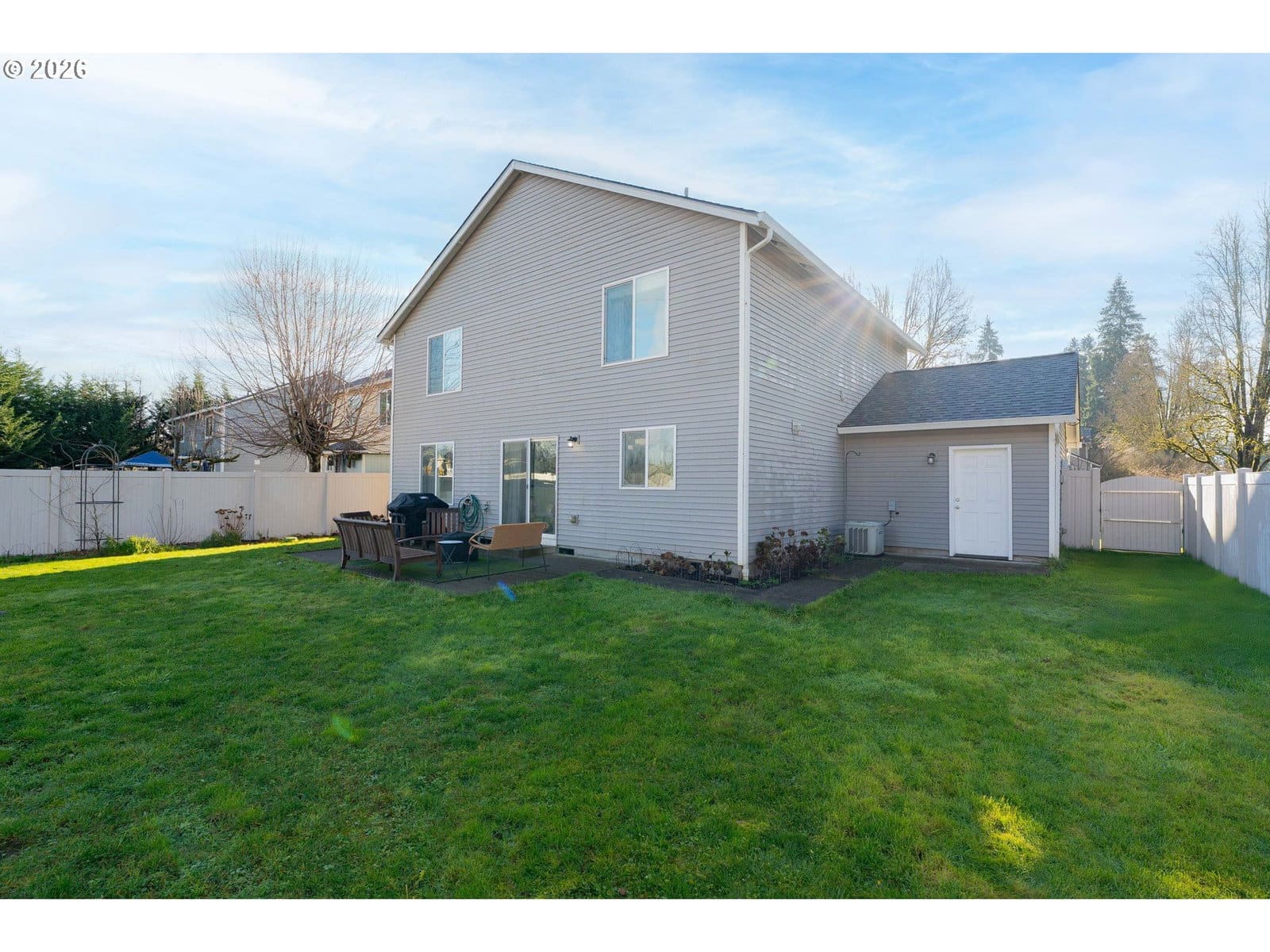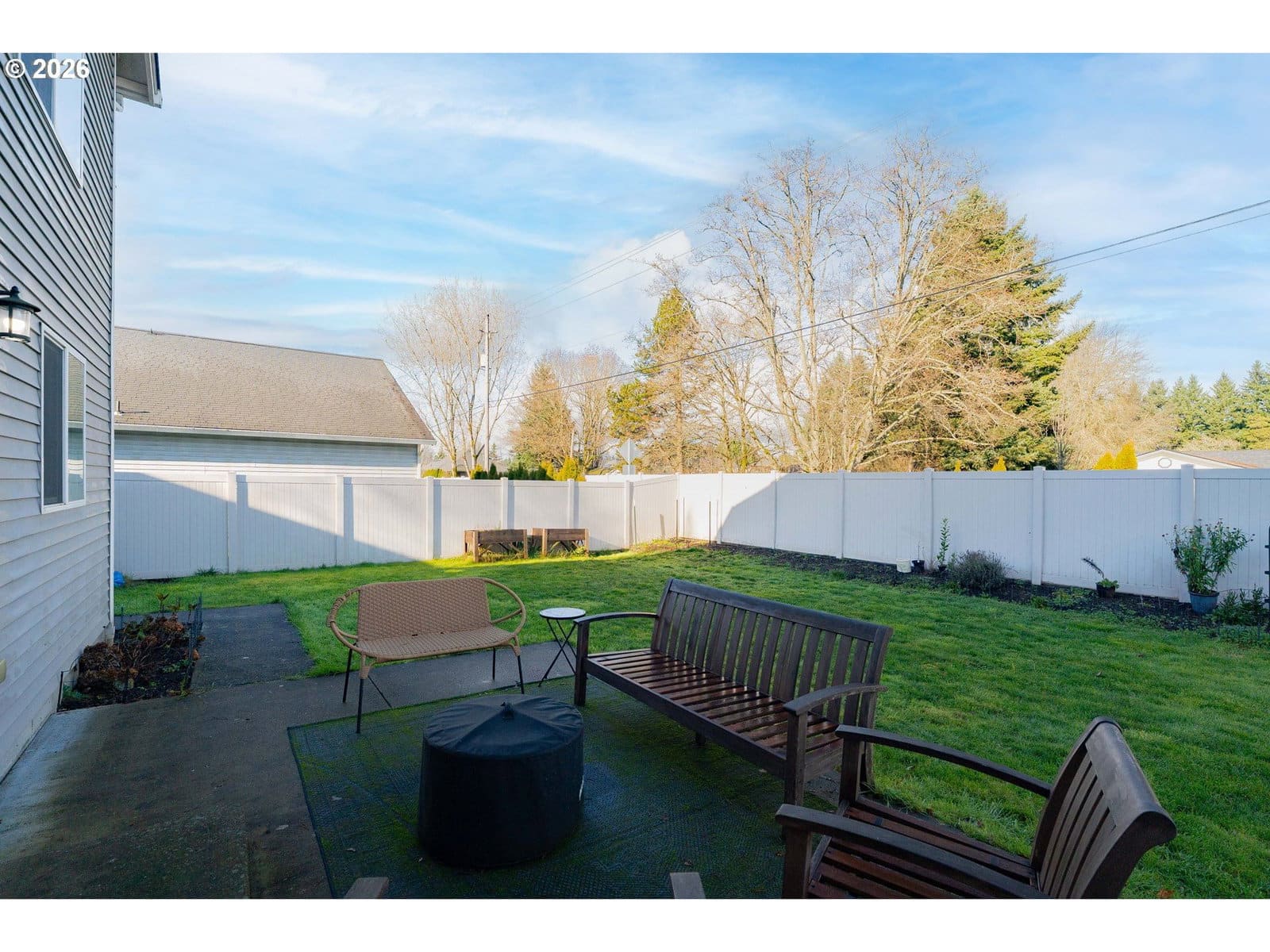 Newer 2-year-old roof adds immediate peace of mind to this 2004-built, 1,972 sq ft home offering 4 bedrooms and 2.5 baths. Set back from the street with a long driveway providing extra parking and a spacious 3-car garage, the property is designed for both convenience and privacy. With no back neighbors, the home enjoys a large, fully fenced backyard ideal for outdoor enjoyment, complete with garden beds and an outdoor sprinkler system for easy maintenance. Inside, a welcoming entry opens to bright, light-filled living spaces enhanced by fresh interior paint. The updated kitchen features quartz countertops, tile finishes, and stainless steel appliances, while refreshed bathrooms provide modern style and comfort. Main-level laundry adds everyday ease.