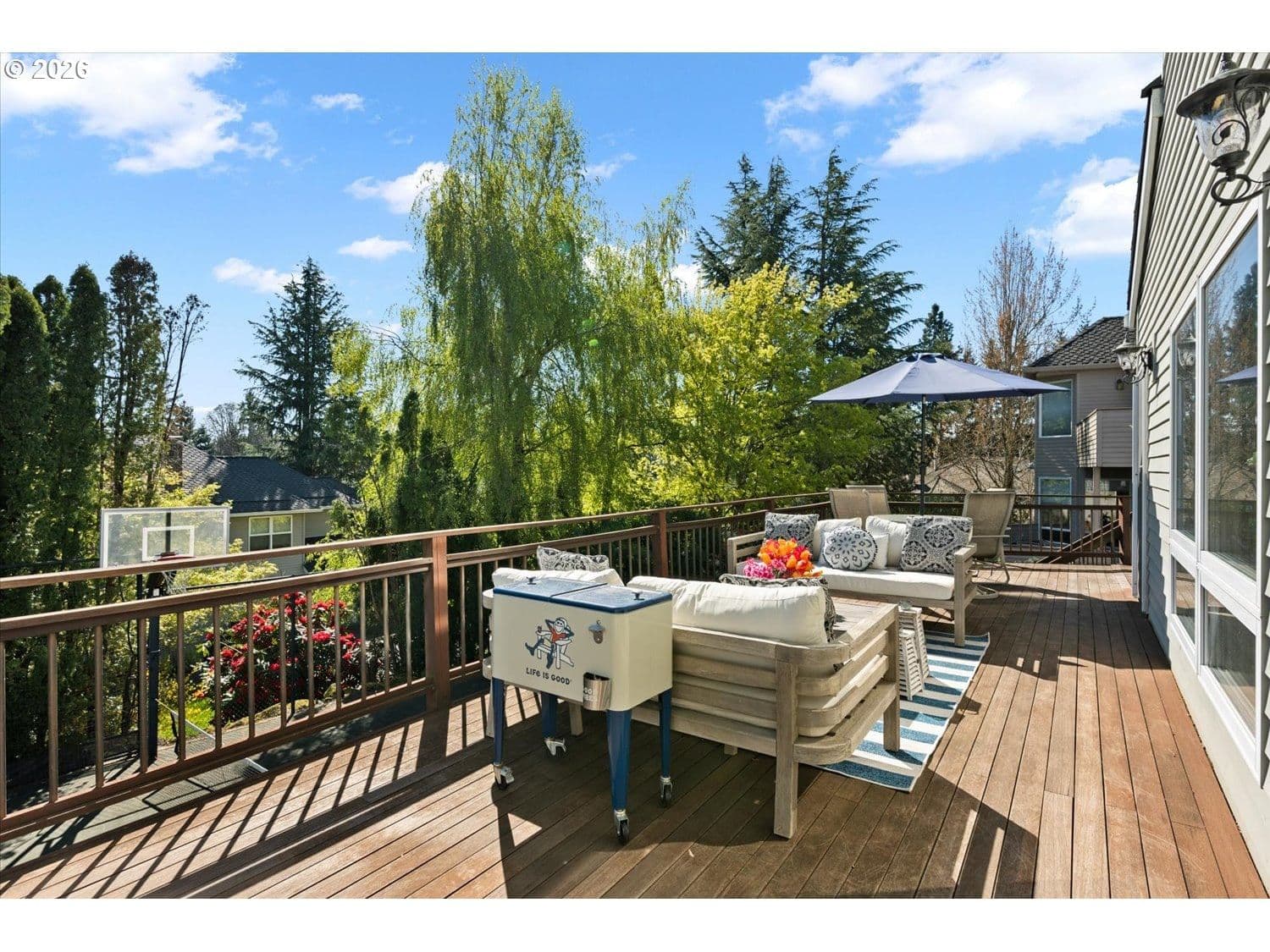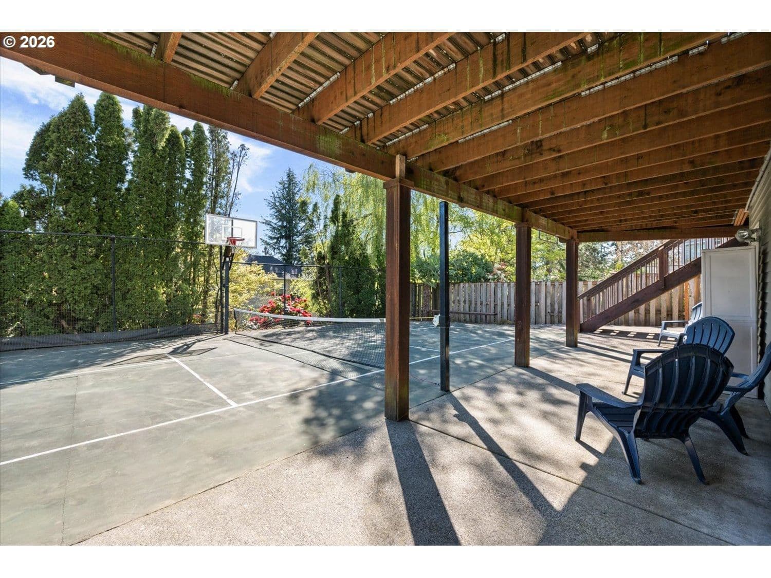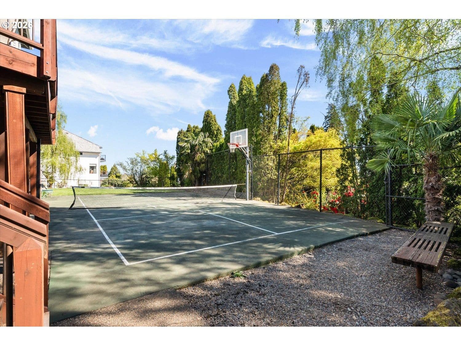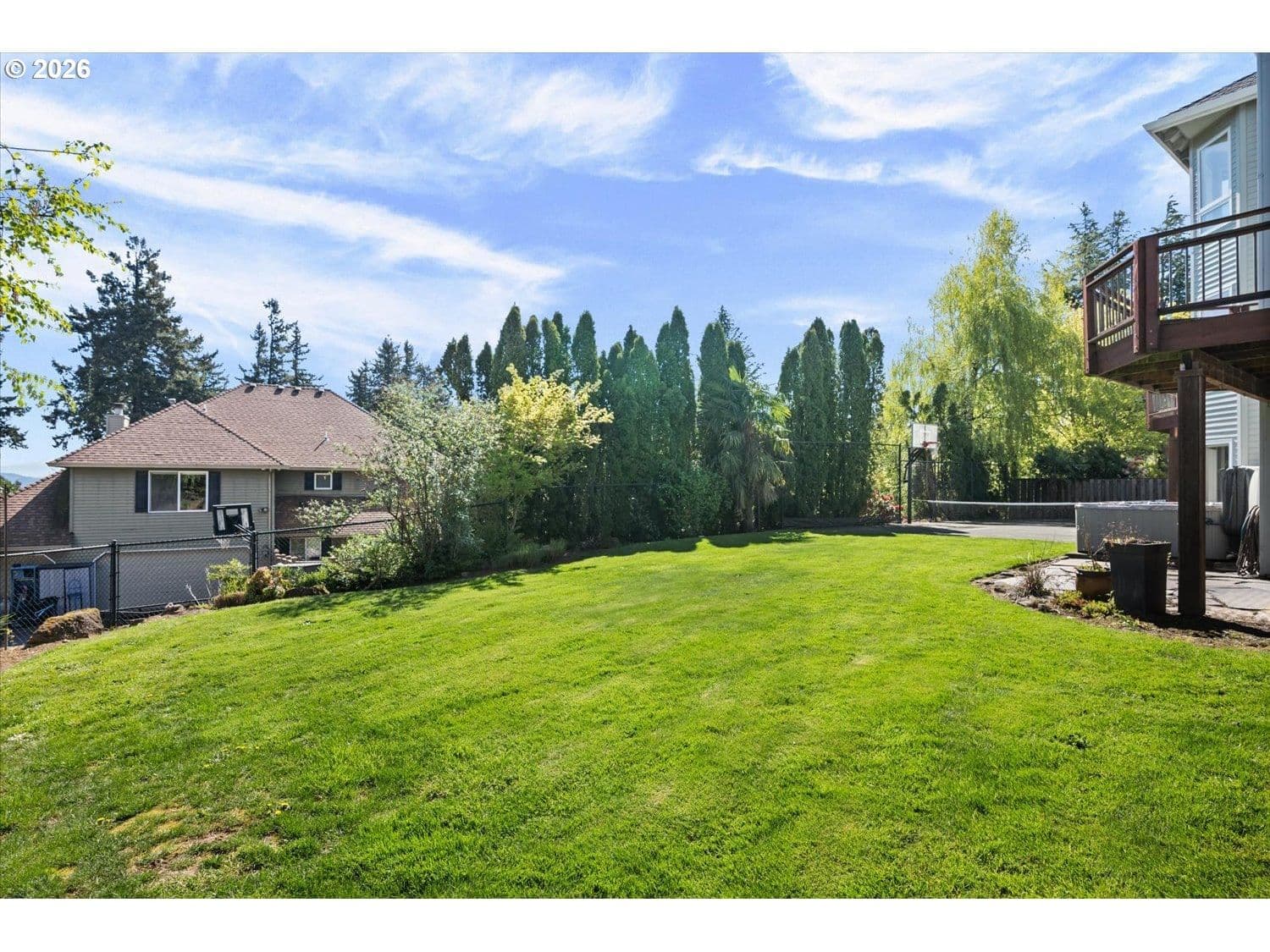 Set in a well-established West Linn neighborhood, this 5 bedroom, 4.5 bathroom home offers a spacious and well-designed layout with easy access to schools, shopping, restaurants, and major commuting routes. The kitchen and living room create a central gathering space, connecting to a sunroom that opens to a large deck that spans the back of the home and captures peek-a-boo views of Mt. Rainier, Mt. Adams, and Mt. St. Helens. The primary suite also enjoys mountain and territorial views, adding to the home’s connection to its surroundings. Recent updates include fully remodeled shared bathrooms and new carpet, creating a clean and refreshed feel throughout. The lower level has been thoughtfully improved to expand functionality, featuring a recreation room with a new kitchenette, an updated bathroom, and a flexible room currently used as a home gym. Sliding doors provide direct access to the backyard, where a sports court and hot tub create additional outdoor living opportunities. Multiple decks and outdoor areas offer options for relaxing or entertaining. A large laundry room and abundant storage throughout add to the home’s everyday convenience. The home offers a flexible floor plan that supports a variety of living needs, combining everyday comfort with space to spread out both inside and out.