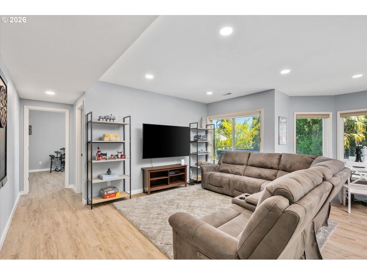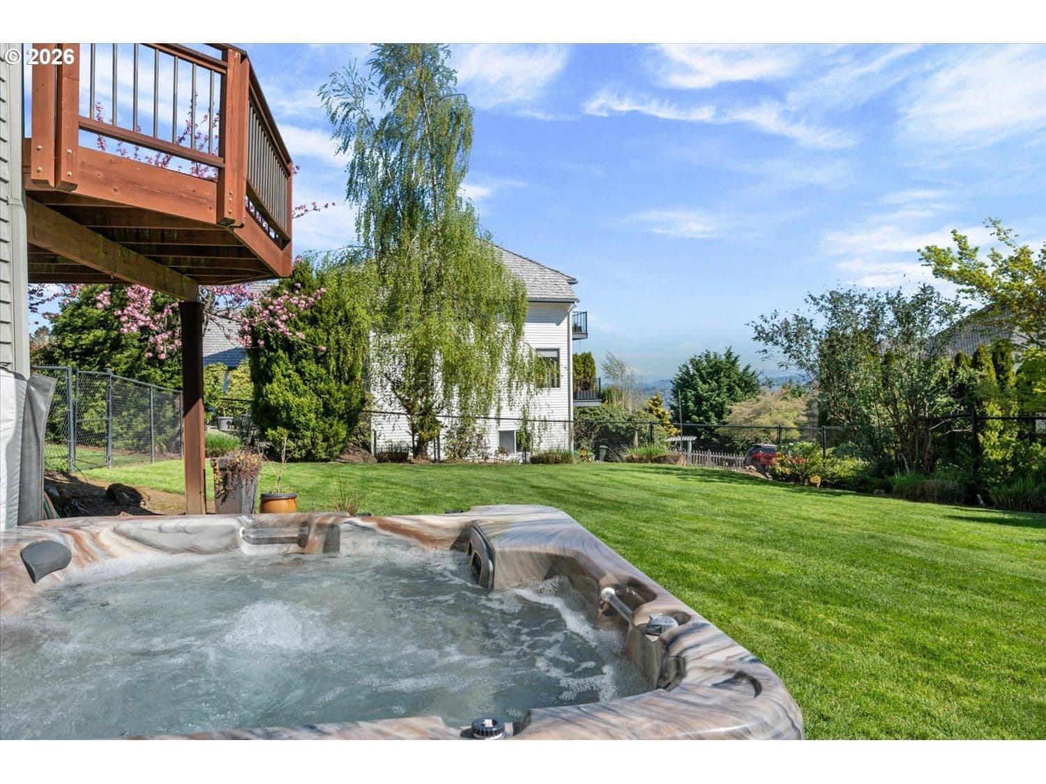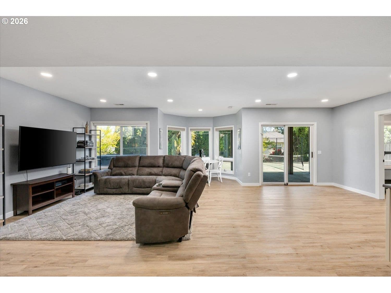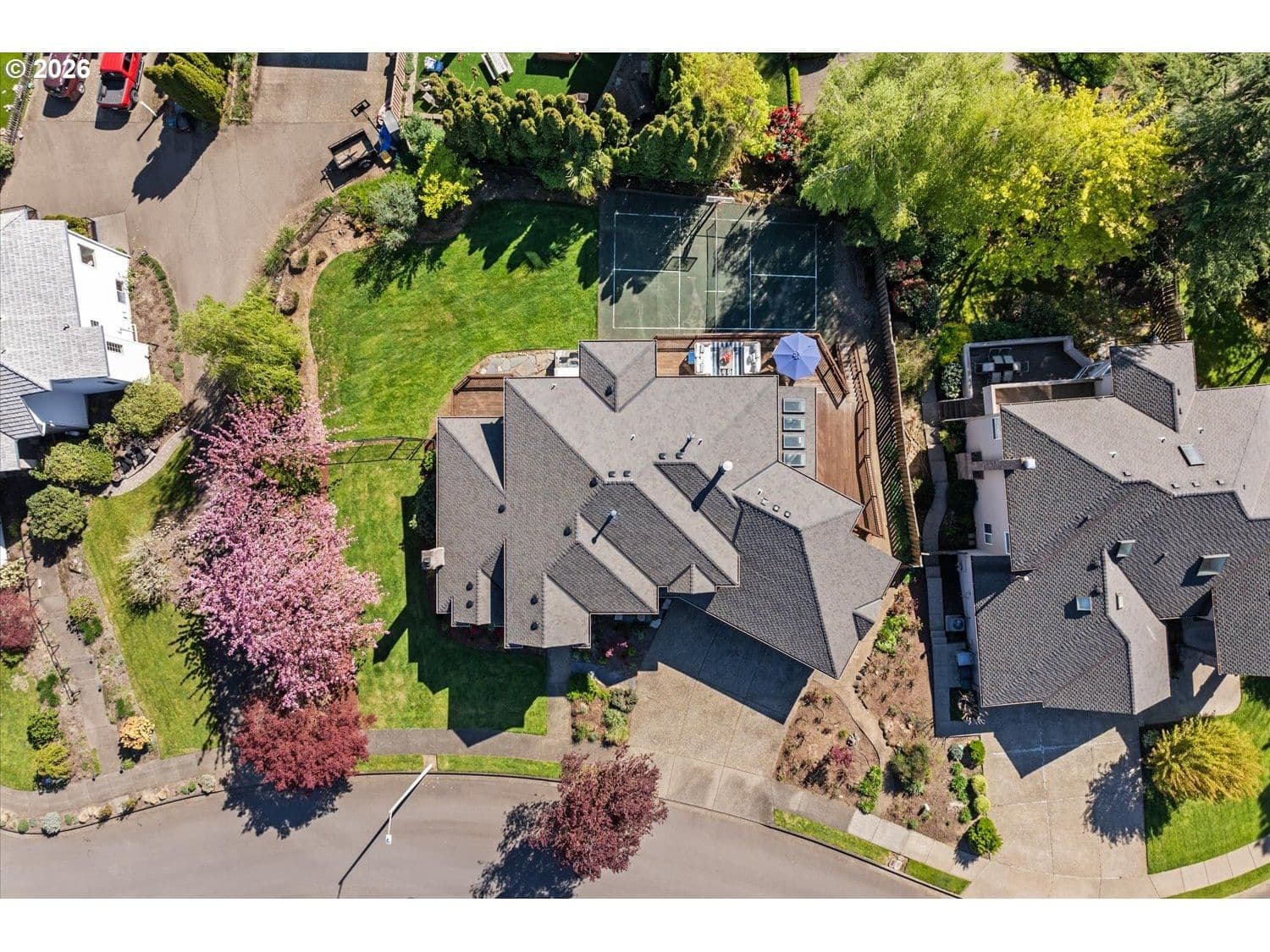 Set in a well-established West Linn neighborhood, this 5 bedroom, 4.5 bathroom home offers a spacious and well-designed layout with easy access to schools, shopping, restaurants, and major commuting routes. The kitchen and living room create a central gathering space, connecting to a sunroom that opens to a large deck that spans the back of the home and captures peek-a-boo views of Mt. Rainier, Mt. Adams, and Mt. St. Helens. The primary suite also enjoys mountain and territorial views, adding to the home’s connection to its surroundings. Recent updates include fully remodeled shared bathrooms and new carpet, creating a clean and refreshed feel throughout. The lower level has been thoughtfully improved to expand functionality, featuring a recreation room with a new kitchenette, an updated bathroom, and a flexible room currently used as a home gym. Sliding doors provide direct access to the backyard, where a sports court and hot tub create additional outdoor living opportunities. Multiple decks and outdoor areas offer options for relaxing or entertaining. A large laundry room and abundant storage throughout add to the home’s everyday convenience. The home offers a flexible floor plan that supports a variety of living needs, combining everyday comfort with space to spread out both inside and out.