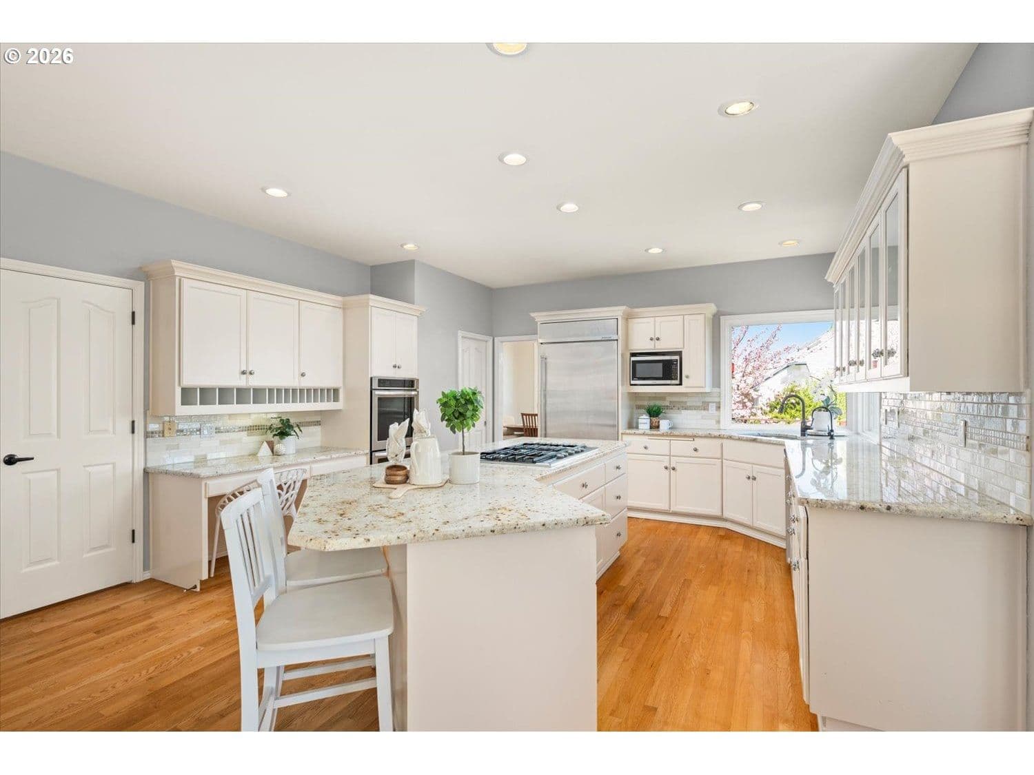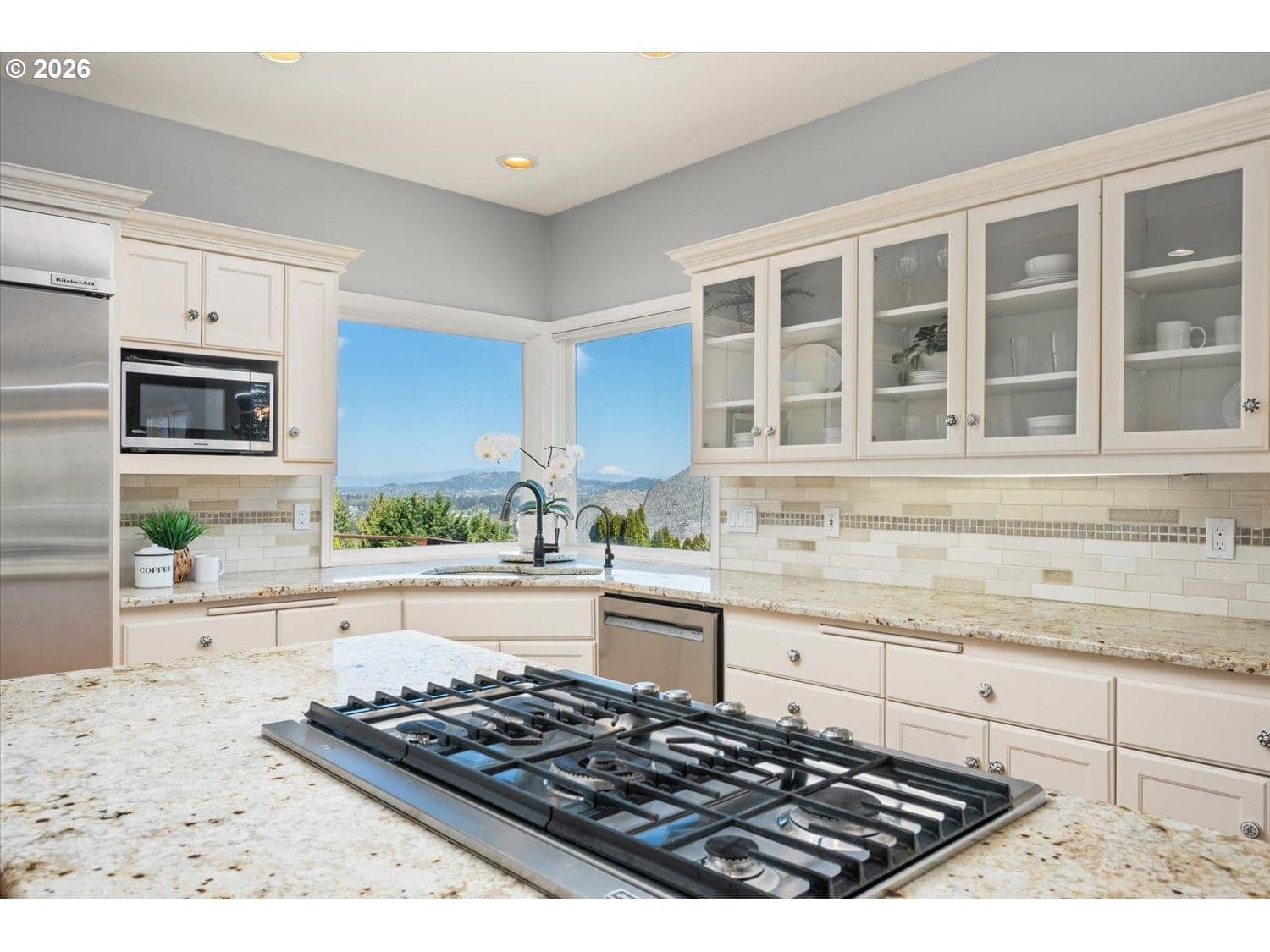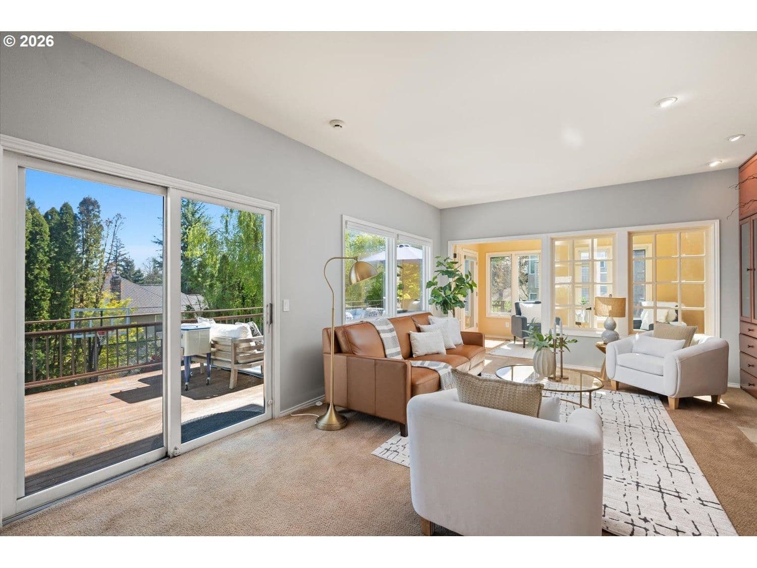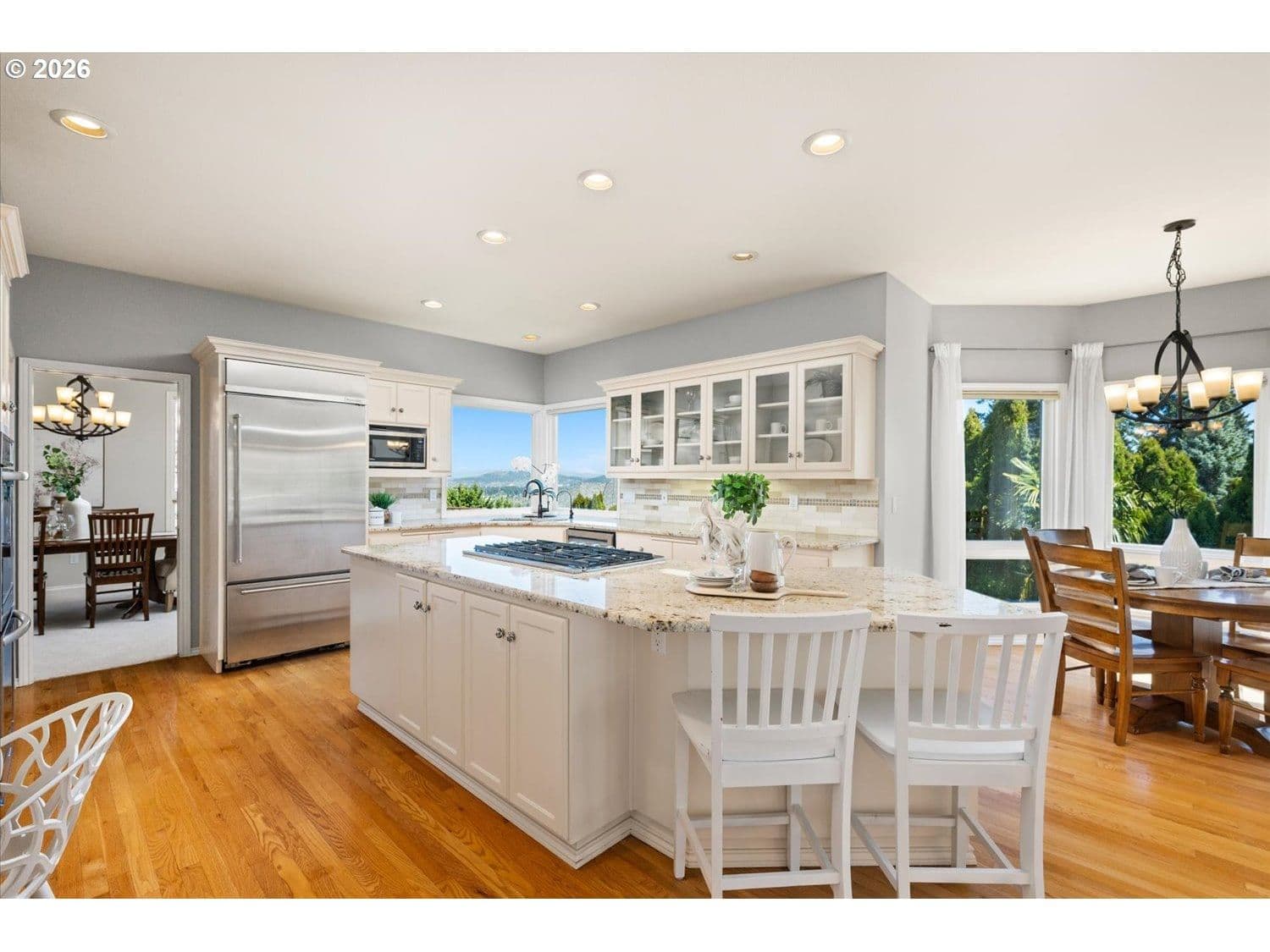 Set in a well-established West Linn neighborhood, this 5 bedroom, 4.5 bathroom home offers a spacious and well-designed layout with easy access to schools, shopping, restaurants, and major commuting routes. The kitchen and living room create a central gathering space, connecting to a sunroom that opens to a large deck that spans the back of the home and captures peek-a-boo views of Mt. Rainier, Mt. Adams, and Mt. St. Helens. The primary suite also enjoys mountain and territorial views, adding to the home’s connection to its surroundings. Recent updates include fully remodeled shared bathrooms and new carpet, creating a clean and refreshed feel throughout. The lower level has been thoughtfully improved to expand functionality, featuring a recreation room with a new kitchenette, an updated bathroom, and a flexible room currently used as a home gym. Sliding doors provide direct access to the backyard, where a sports court and hot tub create additional outdoor living opportunities. Multiple decks and outdoor areas offer options for relaxing or entertaining. A large laundry room and abundant storage throughout add to the home’s everyday convenience. The home offers a flexible floor plan that supports a variety of living needs, combining everyday comfort with space to spread out both inside and out.