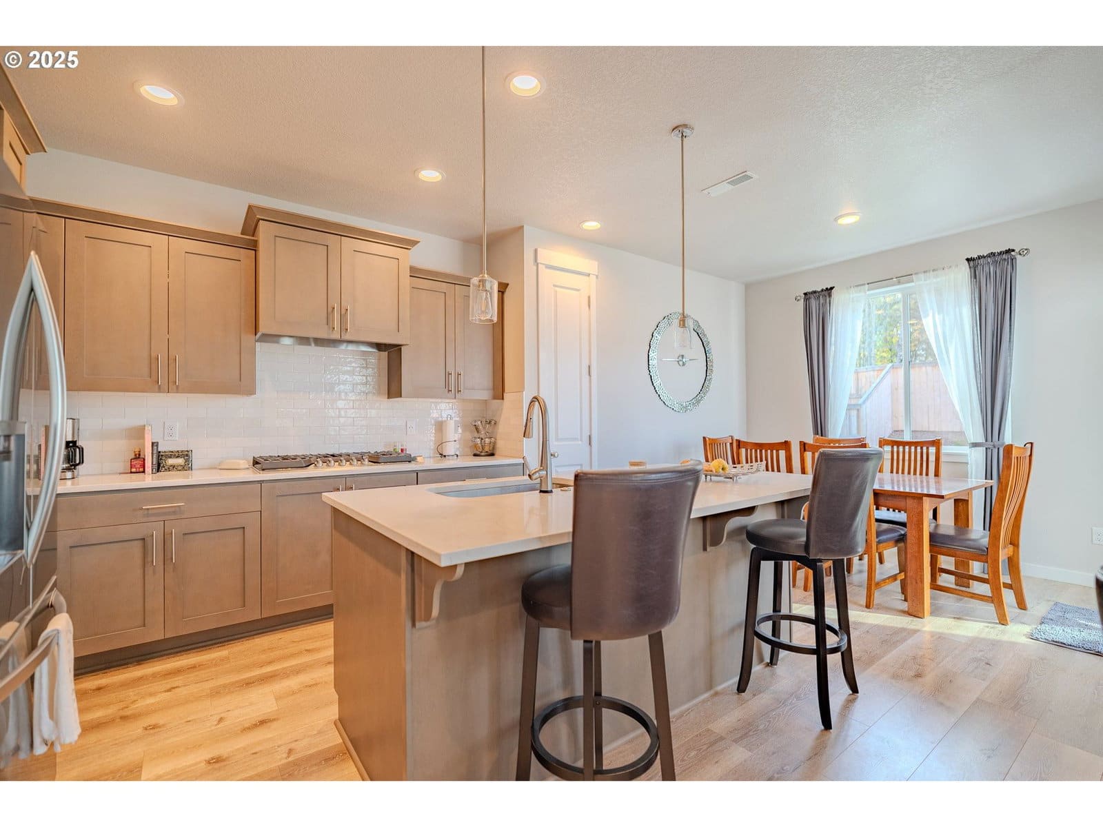 Step into perfection! This stunning 3 bed 2.5 bath home comes complete with tasteful finishes, and many builder upgrades. Previously the model home for the whole community this home has it all. Just a few of the upgrades include: quartz counter tops throughout, stone backsplash, gas stove and range, a fully landscaped beautiful back yard, upgraded faucets in the bathrooms, large walk in tile shower in the primary bedroom, soft close cabinets throughout the home, upgraded LVP flooring, and so much more! The 9 foot ceilings on the main floor and 8 foot ceilings on the second give this home a stately and sprawling feel complemented by double living room windows and a glass patio door to let in plenty of natural lighting.
