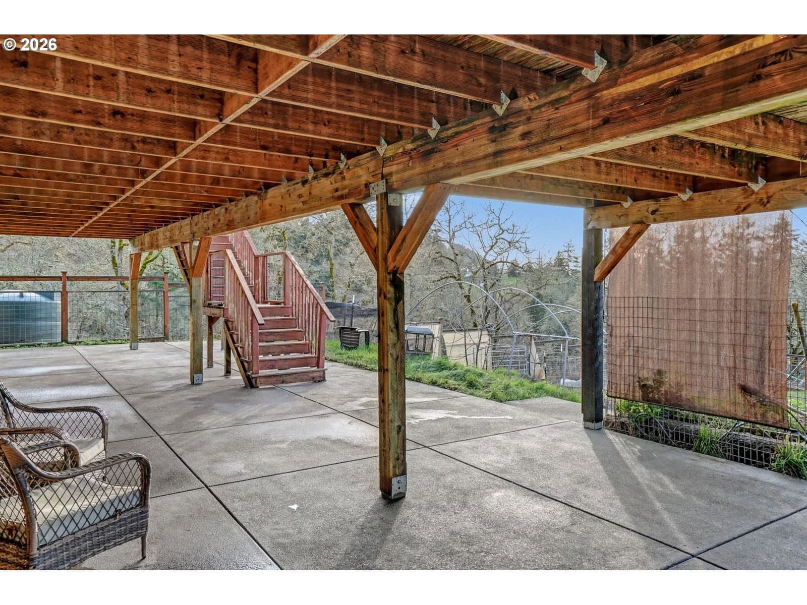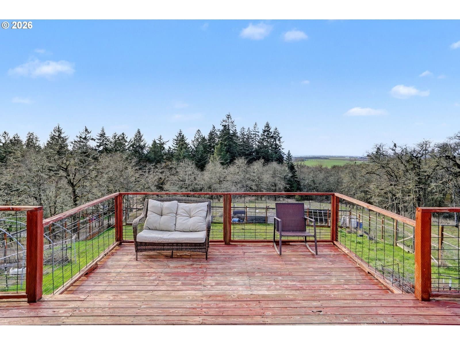 Recently refreshed with interior and exterior improvements completed February 2026, this country retreat sits on 4.97 acres with stunning valley views. The 4-bedroom, 3-bath home offers spacious multi-level living with a large living/dining area, oversized kitchen with pantry, and a generous bonus family room. Updates include roof maintenance, repaired exterior paint and trim, structural beam replacement, and bathroom plumbing and finish repairs. Outside, enjoy a 1-acre fenced yard, fruit trees, grapevines, and a seasonal creek. Property features include two dog runs with additional enclosed space, a large two-story deck, RV parking, oversized garage, and tool shed. Equipped with a water holding tank and filtration system, plus irrigation lines connected to the well. Located in a peaceful neighborhood just 15 minutes from Eugene! Priced below appraised value. Appraisal completed 9/12/25 at $700,000.