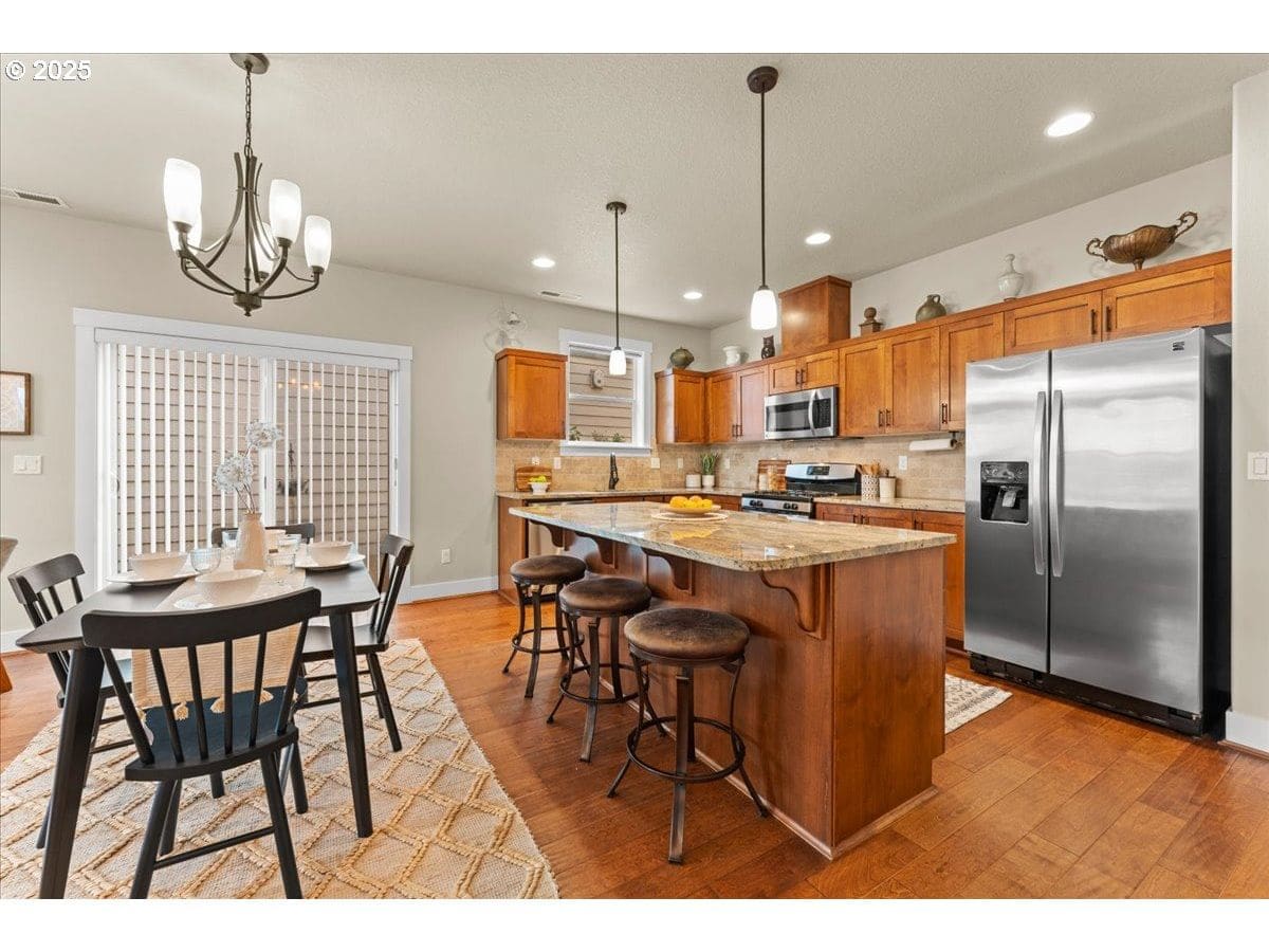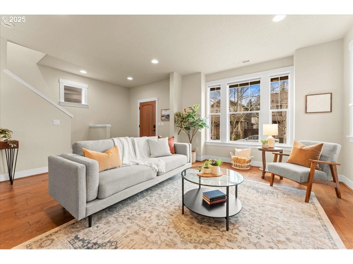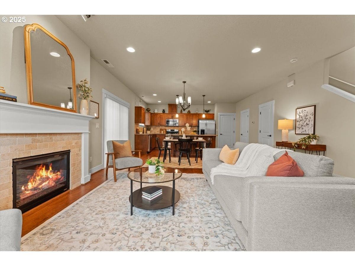 You won’t want to miss this well-designed Polygon build 4 bedroom, 2.1 bath home on a quiet street in the popular Baseline Woods neighborhood. A sturdy birch tree, classic shutters + a covered porch with stone detail all add the architectural flair & curb appeal that welcomes you into this 2013 modern home. Step into the spacious open-concept great room w/a cozy gas fireplace and warm engineered flooring, setting the perfect mood for relaxing evenings or festive gatherings. The living room flows into the dining room w/a slider to the private, fenced, low-maintenance deck. The modern open kitchen features stainless steel & gas appliances, granite countertops & a huge island w/seating for 3 at the bar. The step-in pantry is a favorite feature w/plentiful storage. Upstairs the 8x9’ landing can flex as an office or exercise area. Need a private retreat? The light & bright primary ensuite provides just that w/coved ceiling, walk-in shower, dual vanities, built-in shelving, tons of storage + a spacious walk-in closet. With 3 additional bedrooms, a full hallway bath, laundry room + a 2-car garage, this dialed-in home is move-in ready! Bedroom #4 is great flex space for a play or craft room or whatever suits your lifestyle. The Kenmore refrigerator & washer & dryer are included! 2025 Updates include: Fresh interior paint on the entire main level & partial upper level + new carpeting & dishwasher. Conveniently located to Highway 26 & the dining, entertainment & cultural opportunities proximity to Portland affords + Sunset Corridor high tech industry, Nike, Apple, Intel, Tektronix. Super convenient public transit, parks, trails & shopping are also right in the neighborhood, with all kinds of amenities from Costco to major medical to The Streets of Tanasbourne. An ideal home base w/rare low HOA fees for a lock-and-go lifestyle, future rental, rightsize or first home! Comfort, style, & convenience blend perfectly together in this must see home! HOA maintains front yard landscape, common areas, and alleys.