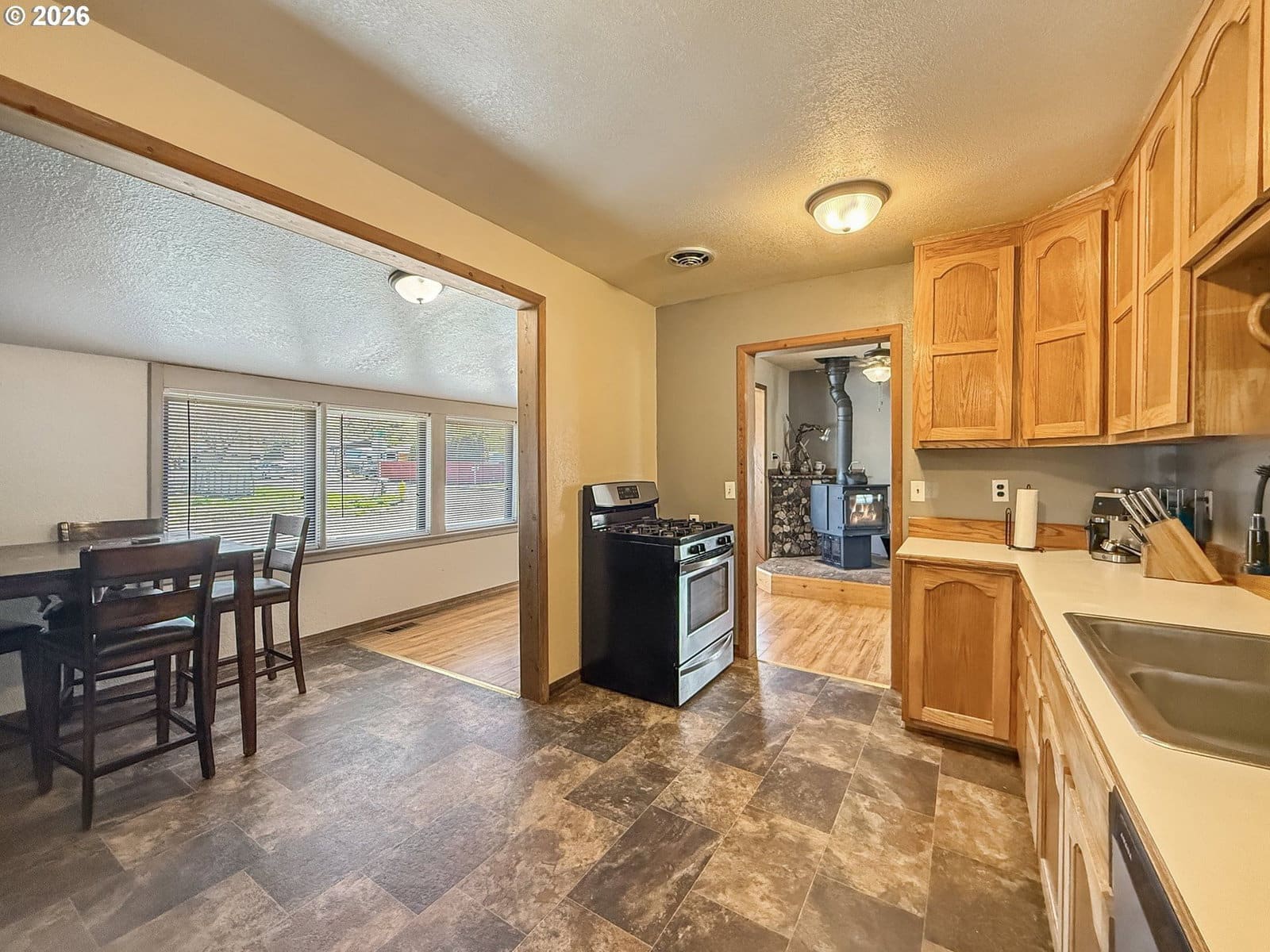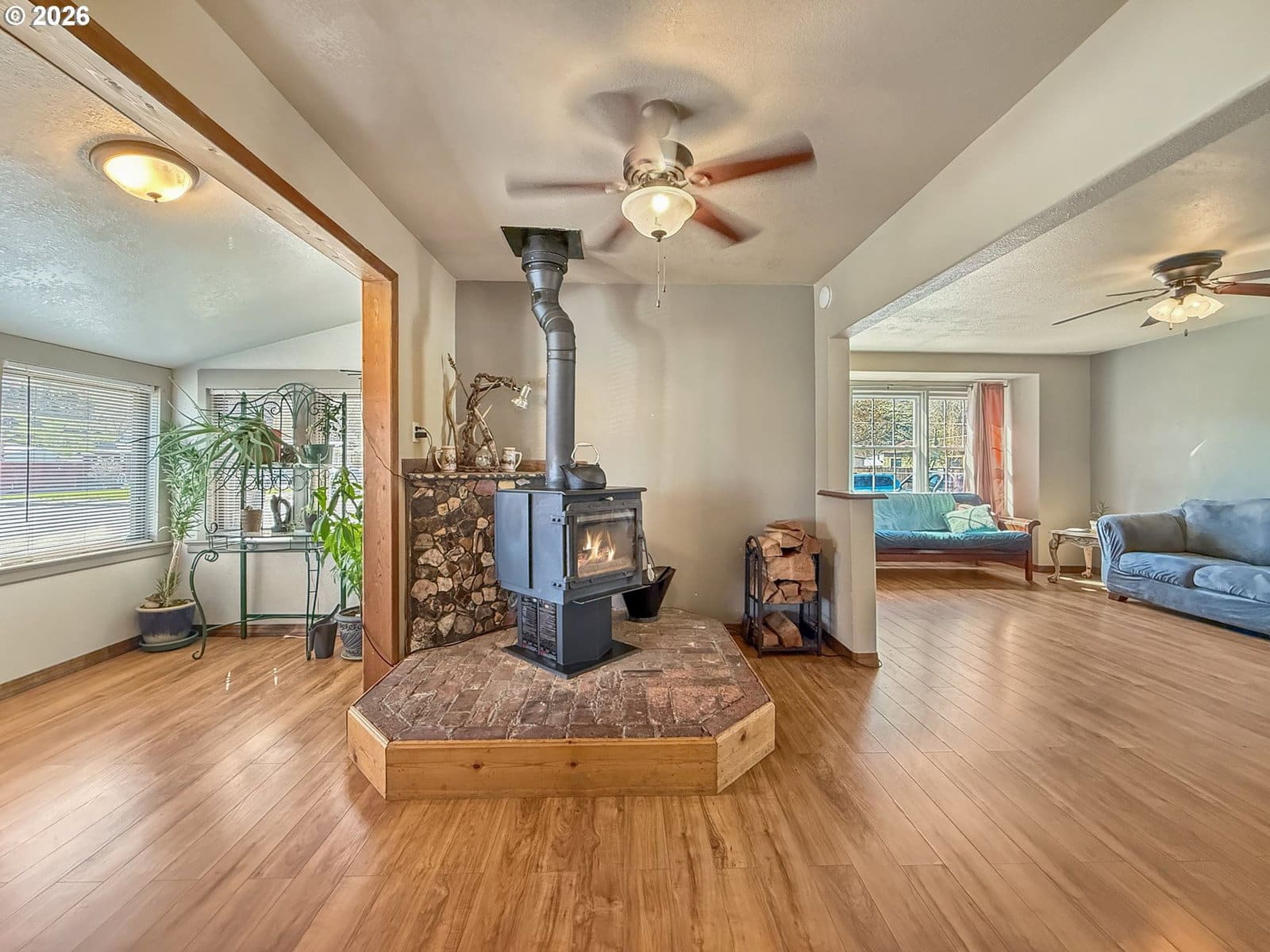 Welcome to your next chapter in the heart of Baker City! This delightful 2-bedroom, 1-bathroom home sits proudly on a generous corner lot, offering the kind of space and versatility that's hard to come by. With a fresh coat of exterior paint and a durable metal roof overhead, this property makes a striking first impression that only gets better as you explore further. Step inside to discover a home that's been thoughtfully updated from top to bottom. Plenty of new windows flood the interior with natural light, creating a warm and inviting atmosphere throughout. A newer wood-burning stove adds rustic charm and cozy warmth during those crisp Eastern Oregon evenings. Venture downstairs to find bonus space in the basement — perfect for a home office, creative studio, or additional storage. The outdoor living is equally impressive. A covered deck in the backyard provides the ideal spot for morning coffee or evening gatherings with friends, all tucked behind a privacy fence that creates your own personal retreat. The large detached garage is a true standout — fully insulated and heated, it's ready to serve as a workshop, hobby space, or comfortable vehicle storage year-round. With updates inside and out, this corner lot gem delivers comfort, functionality, and small-town living at its finest. Don't let this one slip away — schedule your showing today!