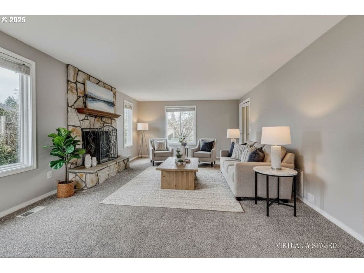 Tucked away on a quiet cul-de-sac in a desirable pocket neighborhood in Beaverton, this beautiful home sits on a generous .24-acre level lot surrounded by mature landscaping and outdoor amenities. The inviting living room features a cozy gas fireplace, while the dining room opens through French doors to a fully fenced backyard designed for both relaxation and function. Enjoy the greenhouse, garden beds, tool shed, covered patio, and large paver patio with a trellis—perfect for gatherings or peaceful evenings outdoors. Thoughtful updates bring modern efficiency and peace of mind, including a new roof, gutters, and gutter guards installed in 2022, new exterior paint in 2019, and updated vinyl windows with many replaced that same year. The home also features a tankless water heater, a new air conditioning unit added in 2024, and an efficient gas furnace for year-round comfort. New interior paint and carpet Dec 2025. Additional highlights include convenient attic storage with pull-down access above the 2 car garage. With major updates complete, this home offers a solid foundation ready for your personal interior touches and style. Located down the street from Melilah Park, near schools, shopping, and Tualatin Hills nature trails, this home combines comfort, practicality, and a welcoming sense of community, all in a fantastic Beaverton location.
