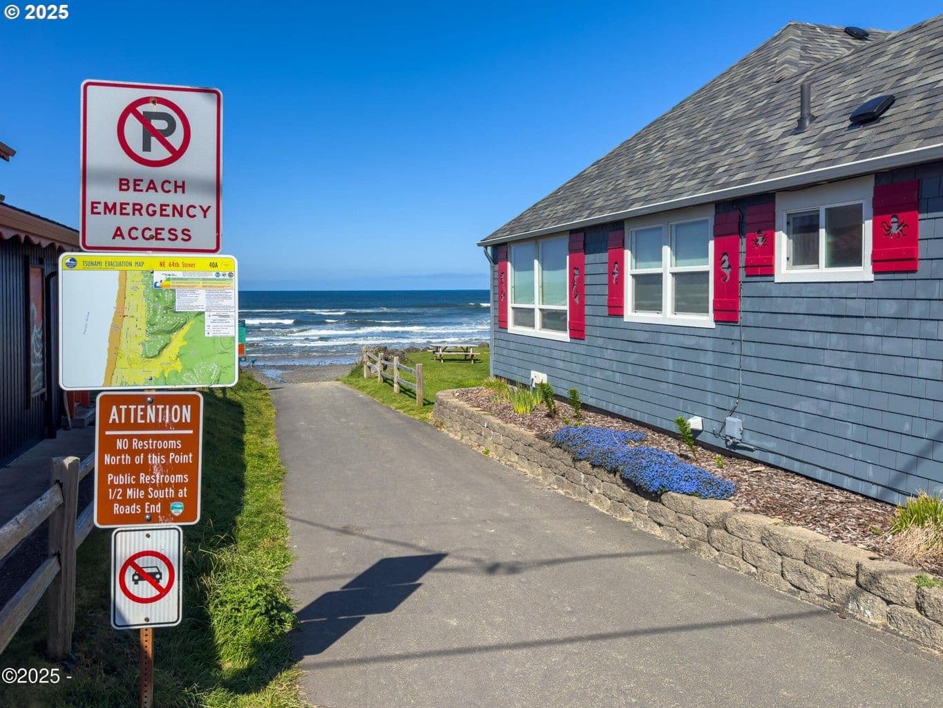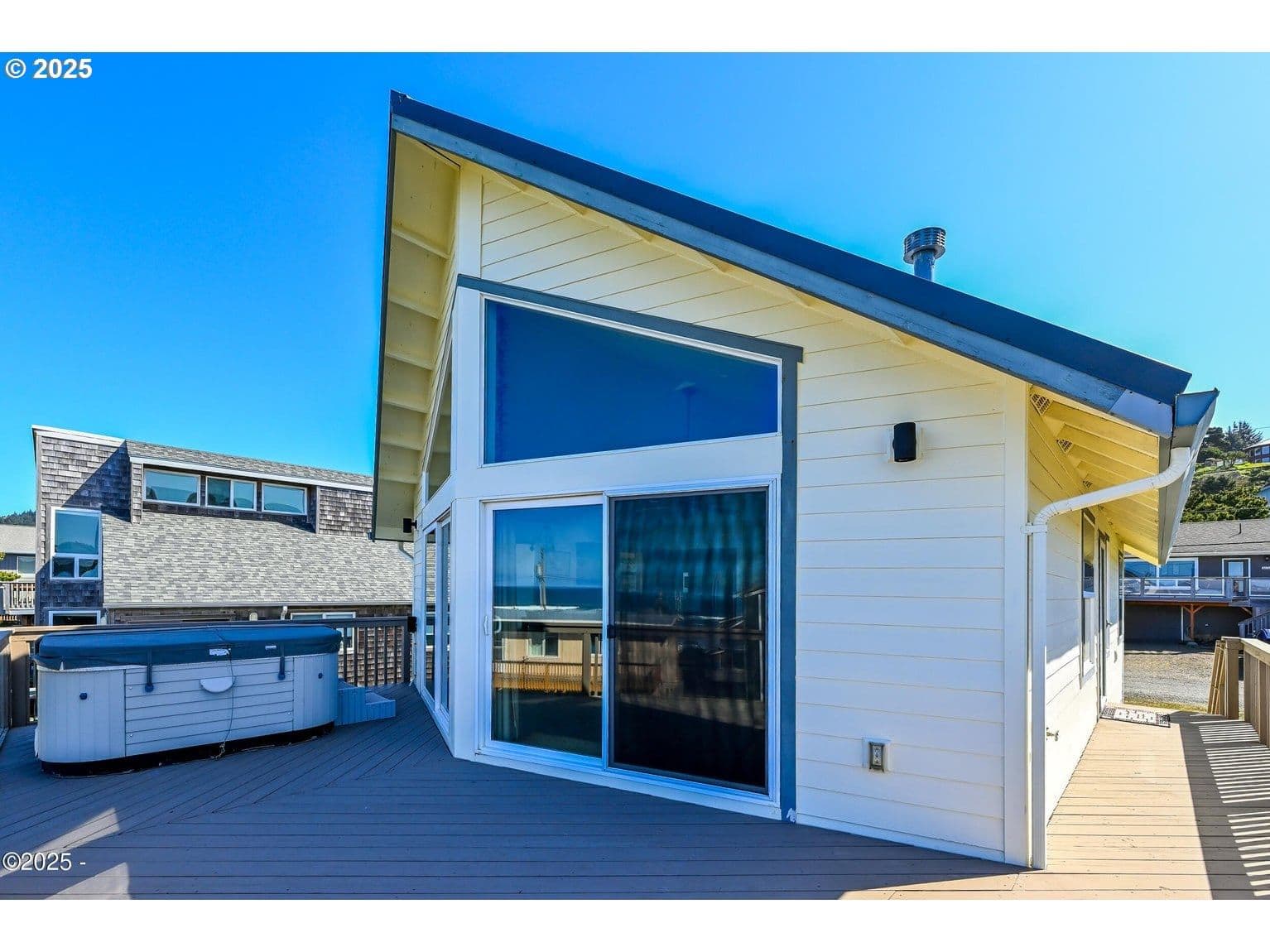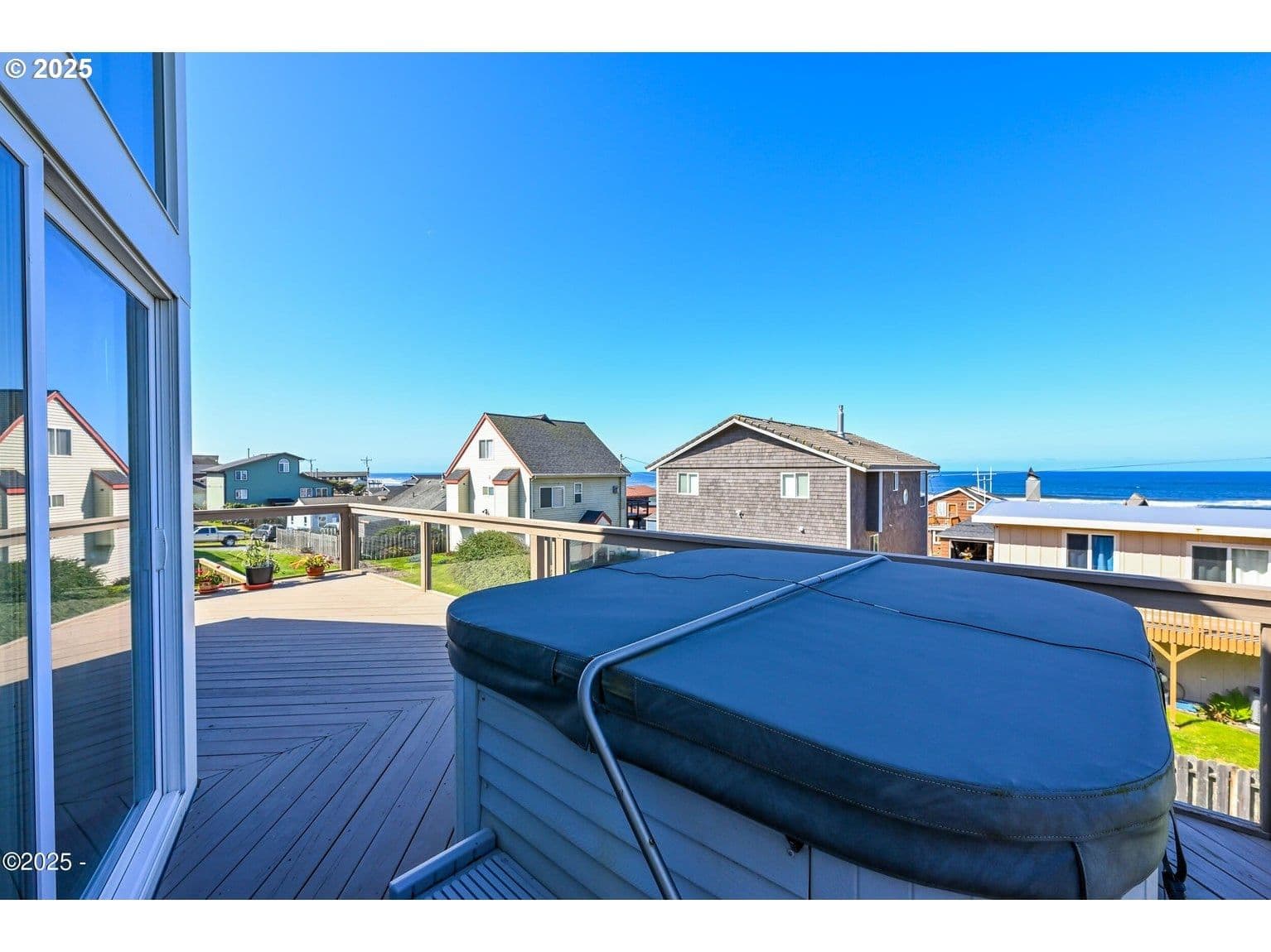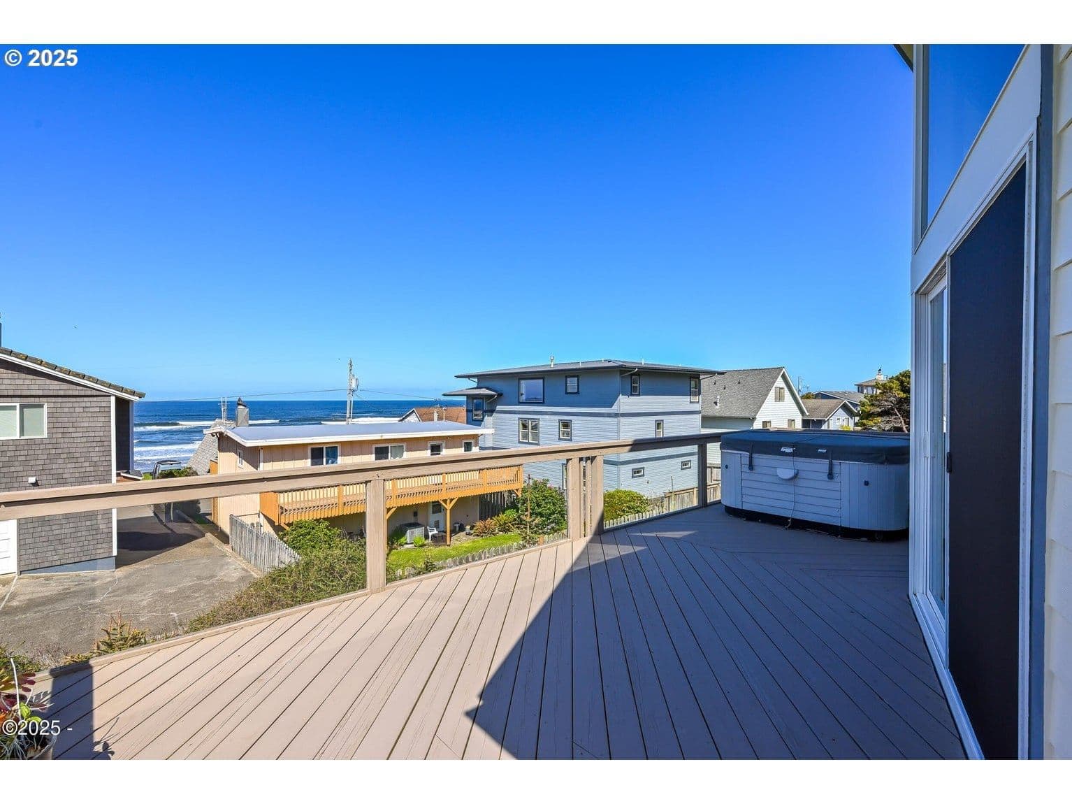 BEAUTIFUL ROADS END BEACH HOUSE Breathtaking Views and one block to the Ocean ! This light and bright, open floor plan has a wall of glass for ocean and wildlife viewing. Comfortable 3- bedroom, 2-full baths with private primary, an oversized attached garage with ample storage for beach toys. Excellent work from home potential with high speed internet. Kitchen includes newer stainless appliances, cozy gas fireplace an Oceanview deck and hot tub for your enjoyment. Updated with a new metal roof, new exterior paint and lighting and new deck paint. Located in the Roads End neighborhood with many walking options out your front door, great restaurants, the Casino and miles of beautiful sandy beach. Don't miss this one!
