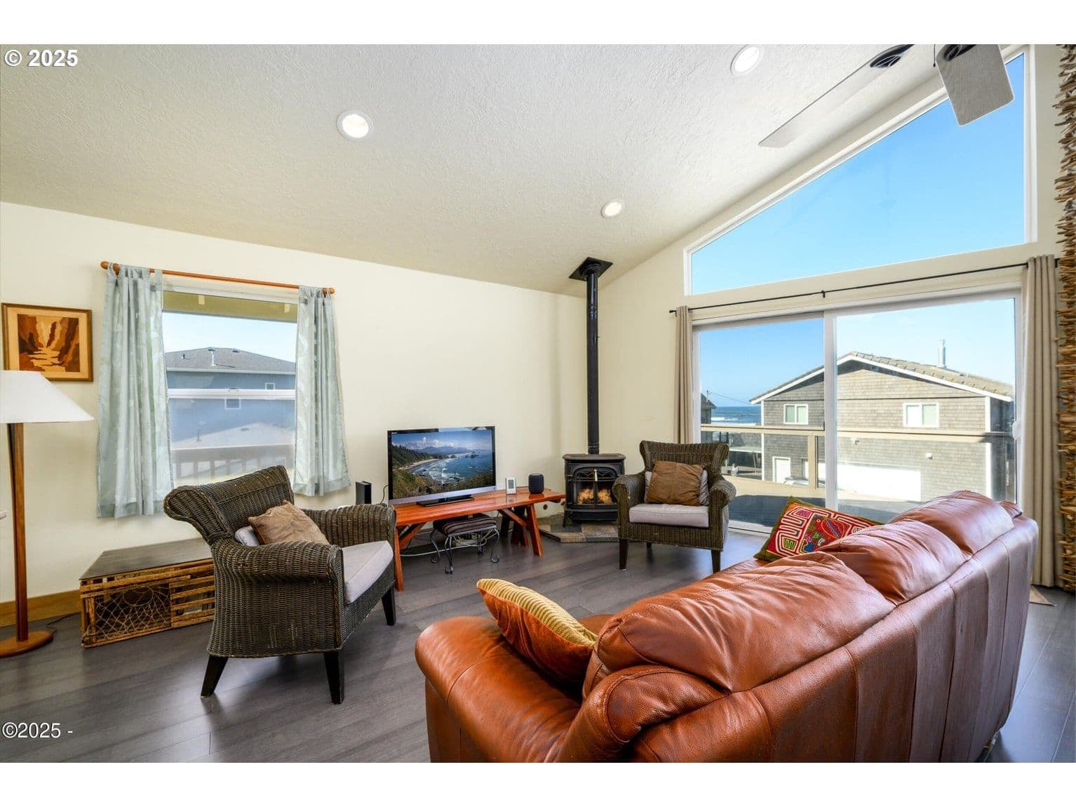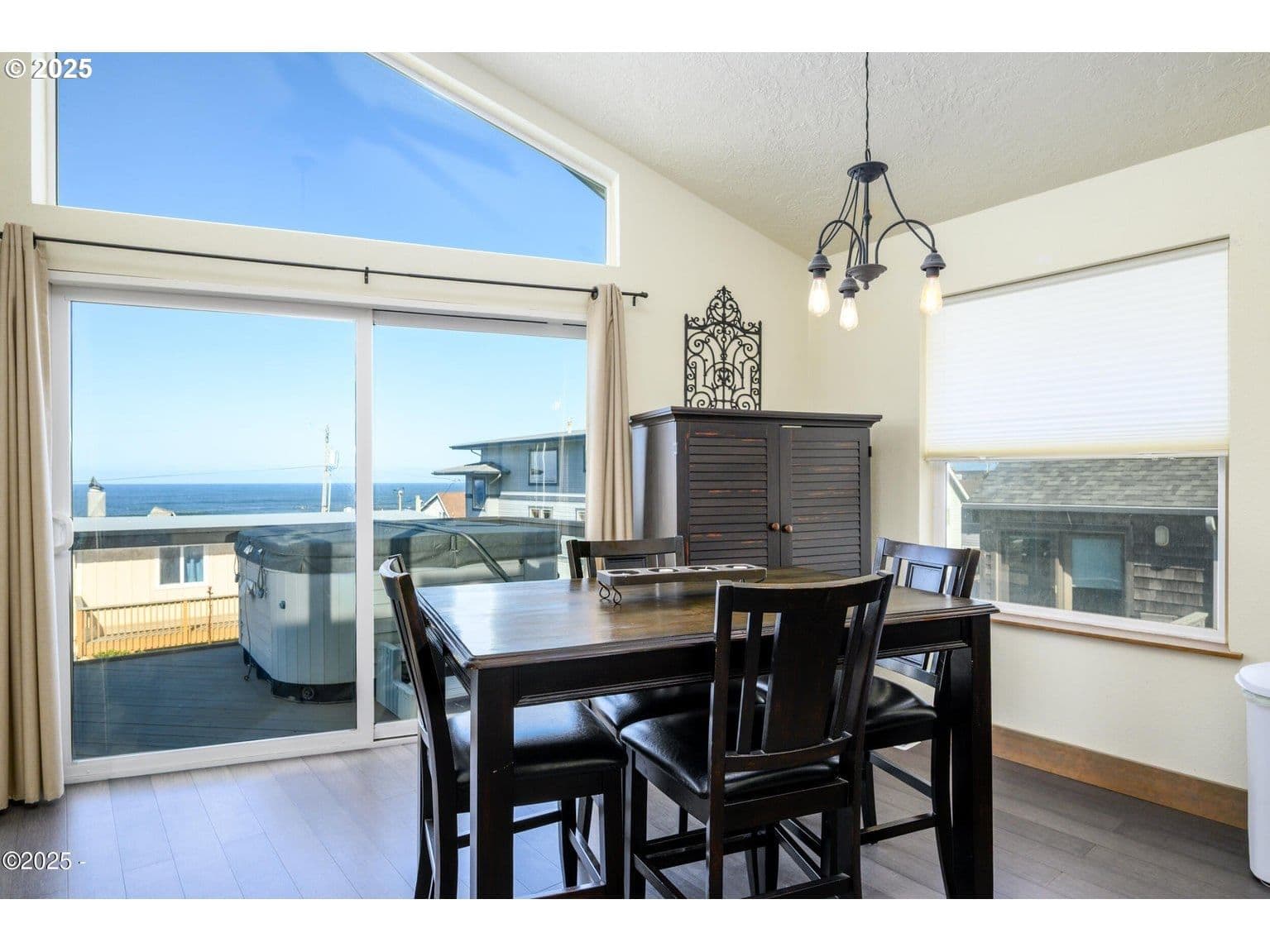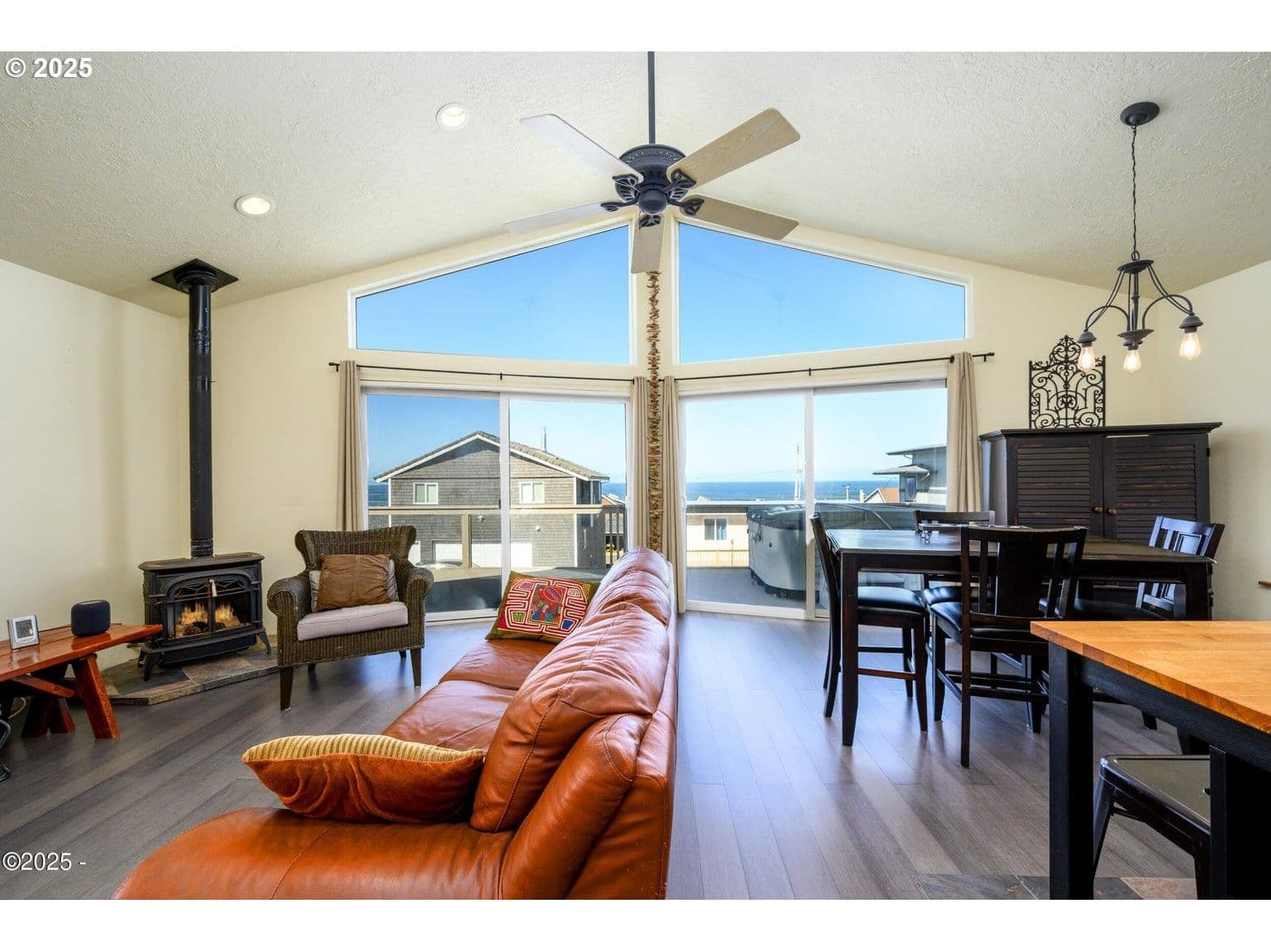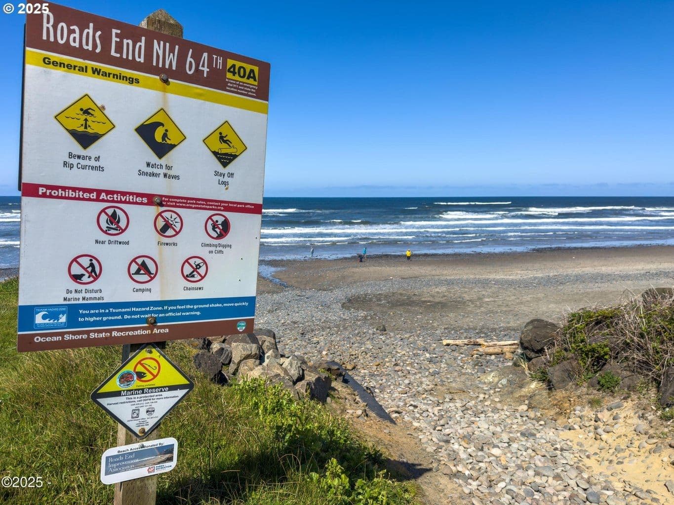 BEAUTIFUL ROADS END BEACH HOUSE Breathtaking Views and one block to the Ocean ! This light and bright, open floor plan has a wall of glass for ocean and wildlife viewing. Comfortable 3- bedroom, 2-full baths with private primary, an oversized attached garage with ample storage for beach toys. Excellent work from home potential with high speed internet. Kitchen includes newer stainless appliances, cozy gas fireplace an Oceanview deck and hot tub for your enjoyment. Updated with a new metal roof, new exterior paint and lighting and new deck paint. Located in the Roads End neighborhood with many walking options out your front door, great restaurants, the Casino and miles of beautiful sandy beach. Don't miss this one!
