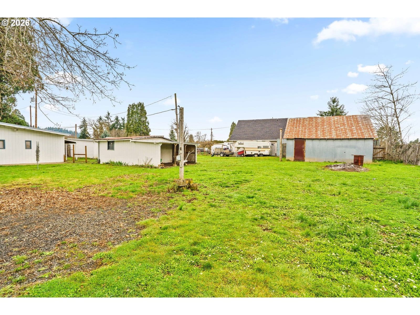 Situated on a peaceful .61 acre corner lot, this property offers a rare combination of privacy, functionality, and usable acreage.Inside, you’ll find a large kitchen with ample counter and cabinet space, a dining area, and a spacious living room with abundant windows and a woodstove. The home also includes an oversized two car garage for added storage and functionality.Outside, there is extensive parking, a covered deck, and a second driveway dedicated to the RV area with its own entrance, plus sewer and electrical hookups. Plus multiple outbuildings including a barn, workshop, and storage shed and more!