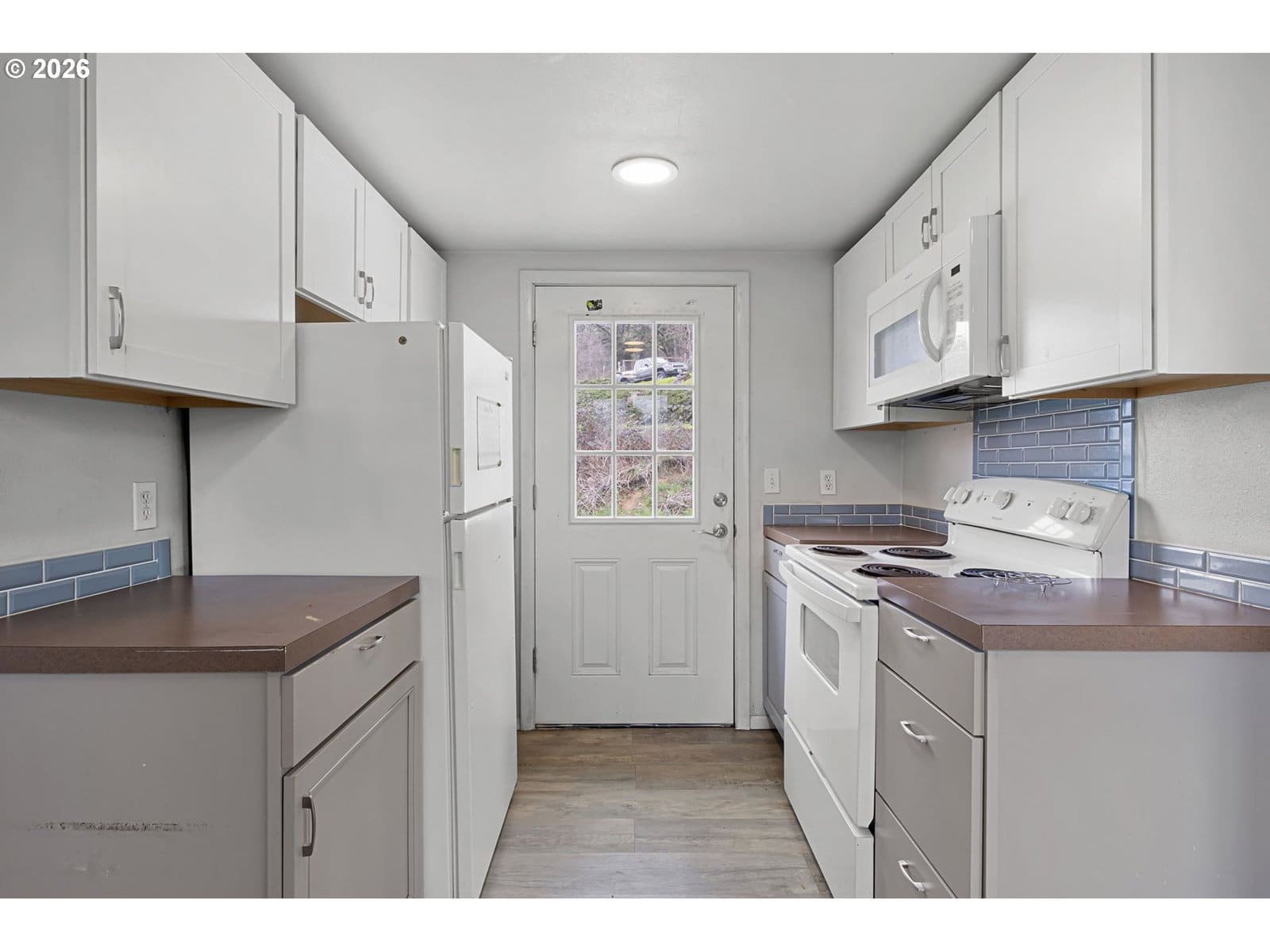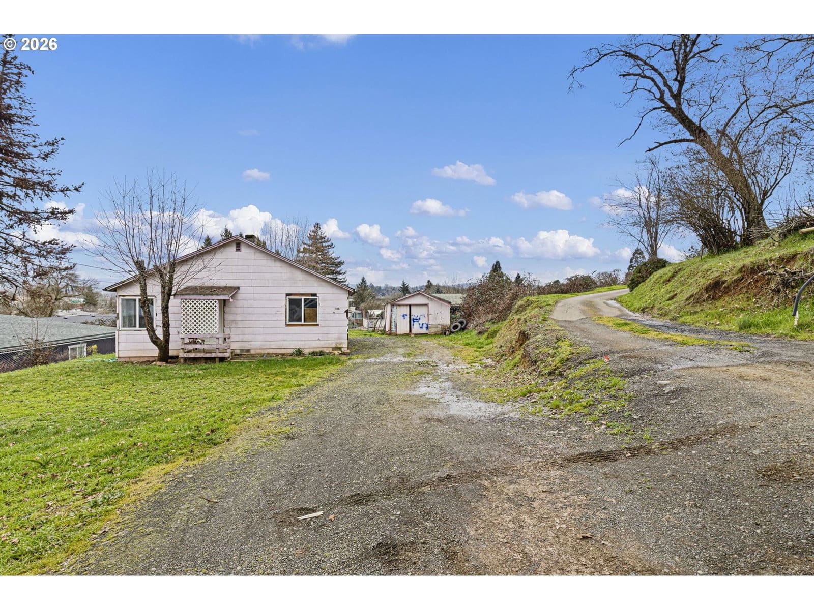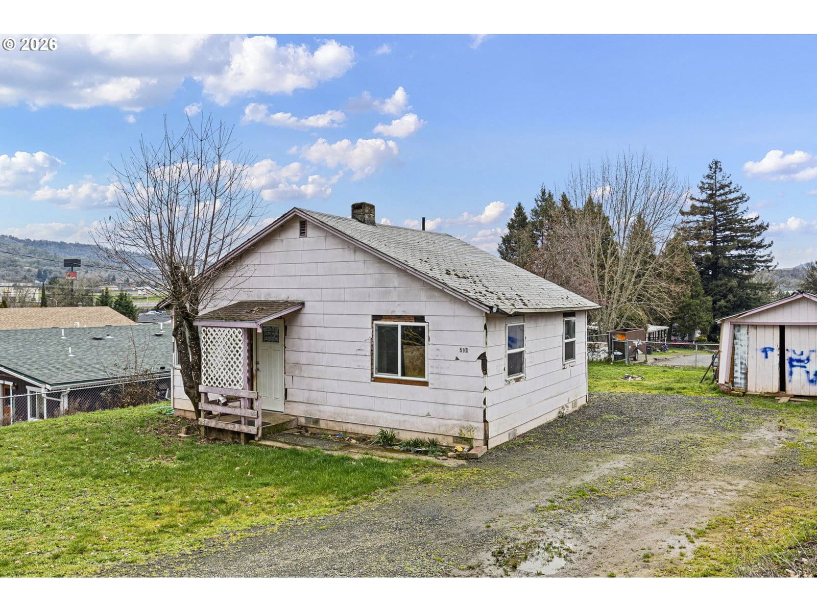 Investor or sweat-equity opportunity in Roseburg! This 2-bedroom home sits on a usable city lot with hillside and neighborhood views and offers a simple, functional layout ready for renovation. Interior features include double-pane vinyl windows, LVP flooring, newer ductless mini-split heat pump, and a kitchen with existing cabinetry and appliances providing a starting point for updates. Property needs exterior/interior repairs and cosmetic improvements, but offers strong upside potential. Detached outbuilding and driveway area provide additional possibilities. Sold as-is.