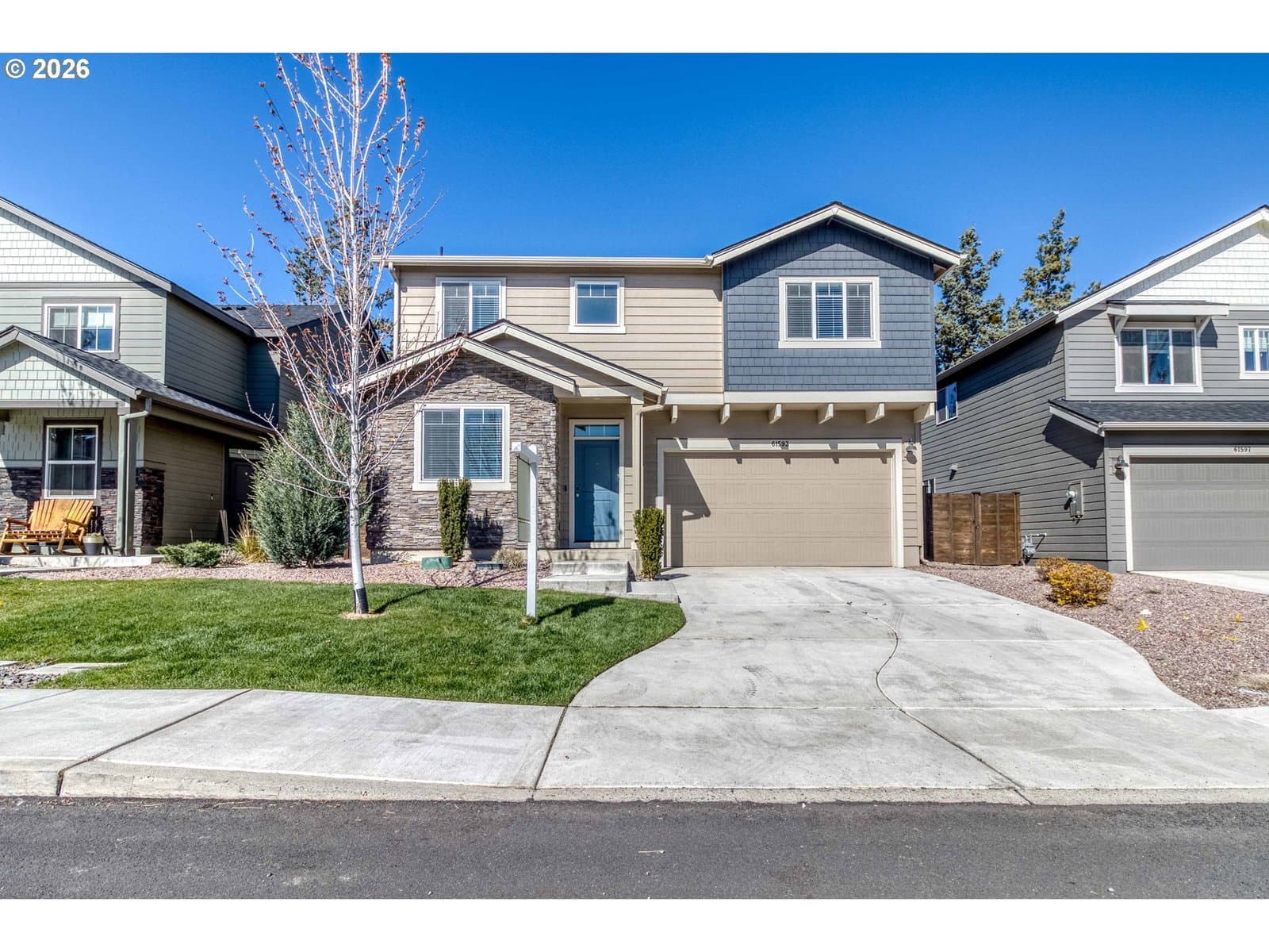 Better than new and thoughtfully designed for modern living, this pristine home offers the perfect blend of space, flexibility, and style, featuring 4 generously sized bedrooms plus a large versatile 5th bedroom that could easily function as a bonus room, guest room, or media space. The open-concept layout creates a seamless flow for everyday comfort. The west-facing primary suite offers a peaceful retreat with mountain views, creating the perfect setting to enjoy Central Oregon sunsets. Step outside to a private backyard that provides a quiet escape for relaxing or entertaining.Featuring Nest and GE devices that are Google Home compatible and an EV charger for added convenience and modern functionality. The kitchen is equipped with stainless steel appliances, and the refrigerator, washer, and dryer are all included—making this home truly move-in ready. Located in SE Bend within the Old Farm District, this home features a community pool and is just a short distance from Silver Rail Elementary School and Stone Creek Park. The Old Mill District and downtown Bend are less than a 10-minute drive away, offering the perfect blend of convenience and lifestyle in a highly sought-after area.
