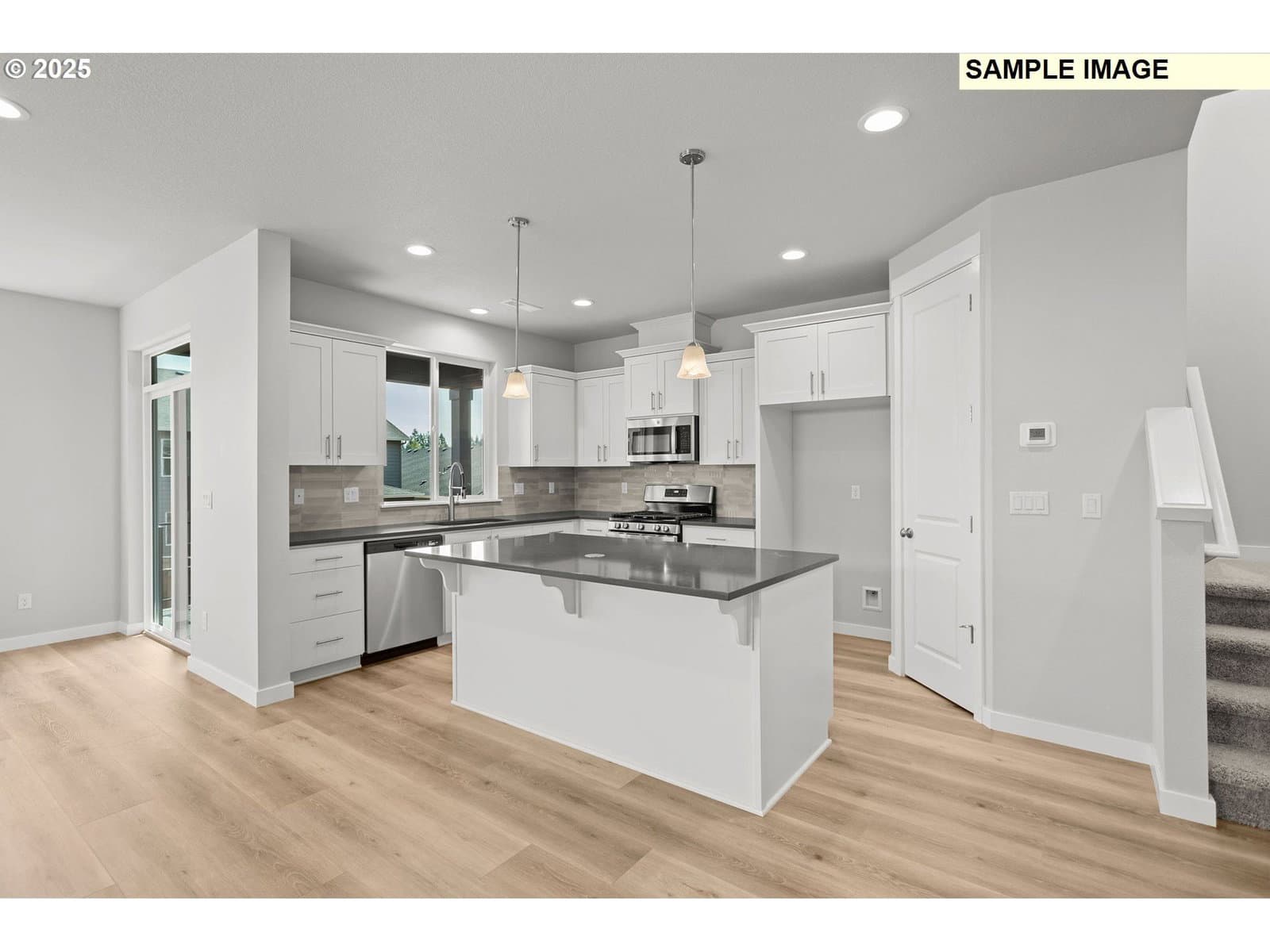 Move-in ready new construction in Faraday Hills, Estacada. This 2,038 sq. ft. Craftsman-style home features 4 bedrooms, 2.5 bathrooms, and a 2-car garage. The open great room includes an electric fireplace, 9-foot ceilings, and laminate flooring, flowing into the kitchen with quartz countertops, a large island, and stainless steel appliances.The primary suite offers a walk-in closet and double sinks. Additional features include a fully fenced lot, front yard irrigation, and an energy-efficient heat pump with air conditioning.Interior Photos are sample images; finishes, features, and colors may vary. Sales office located at 3675 NE Claire Rd. Open daily from 10:00 AM to 5:00 PM.