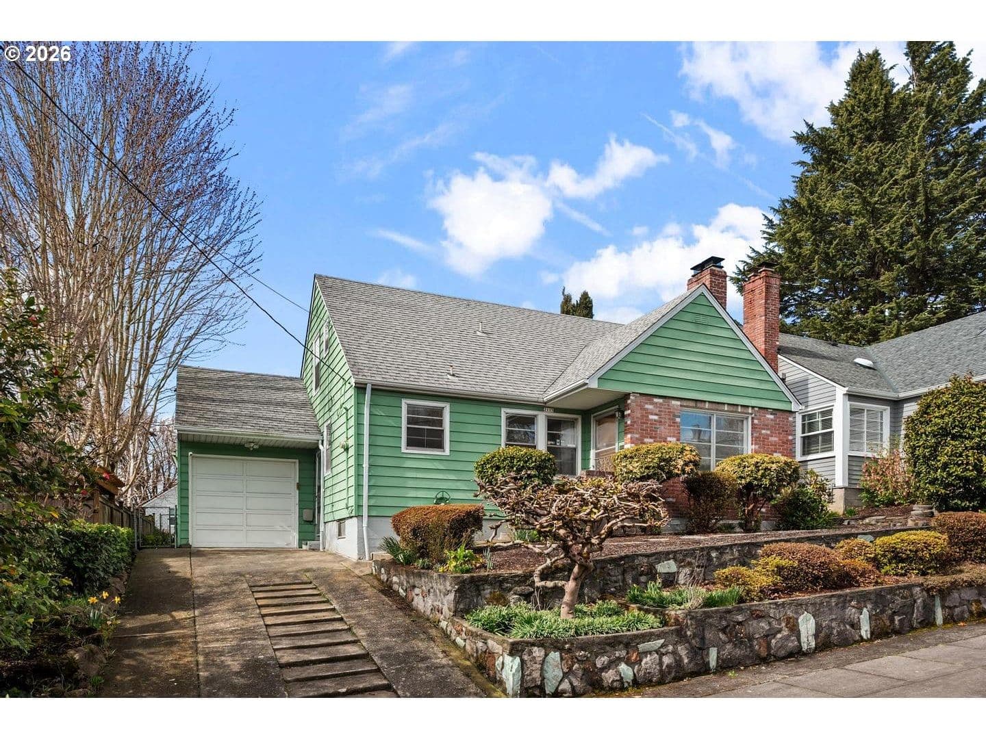 Offered for the first time in generations, this 1947 Colonial Heights English has had only two owners, with the most recent caretaker calling it home for more than 70 years, and is ideally situated between Division and Hawthorne in one of Portland’s most coveted neighborhoods. From the moment you step inside, it is clear the home remains largely unchanged for decades, presenting a rare opportunity for cosmetic updating, restoration, or a thoughtful reimagining. The living room is anchored by a classic fireplace and generous picture window, while the now uncovered original hardwood floors have been protected beneath carpet for years. A cozy dining room flows into a charming, time capsule kitchen that invites the next owner to either lean fully into its vintage appeal or bring it into a new era. Two bedrooms and a full bath complete the main level, with a third bedroom and small bath upstairs, along with excellent attic kneewall storage. Downstairs, a full basement offers a bonus room, abundant storage, and real flexibility, and tells part of the home’s story, as the prior owner used the space extensively for cooking and sewing, making clothing for herself, family, and neighbors, along with drapes and linens, while keeping daily work and food aromas separate from the main living areas. The attached garage and side entrance provide convenience and low-maintenance aluminum siding adds long-term durability. The large, fully fenced backyard is highlighted by a beautiful Asian Pear tree, and allows ample space for outdoor activities. The front yard features mature landscaping with an amazing Japanese Maple planted more than 60 years ago. Just one block from Sewallcrest Park with a playground and off-leash dog area, and close to Safeway, Fred Meyer, and the vibrant shops and restaurants of Division and Hawthorne, this home offers exceptional potential in a highly desired neighborhood with outstanding amenities. As-is sale. [Home Energy Score = 1. HES Report at https://rpt.greenbuildingregistry.com/hes/OR10243851]