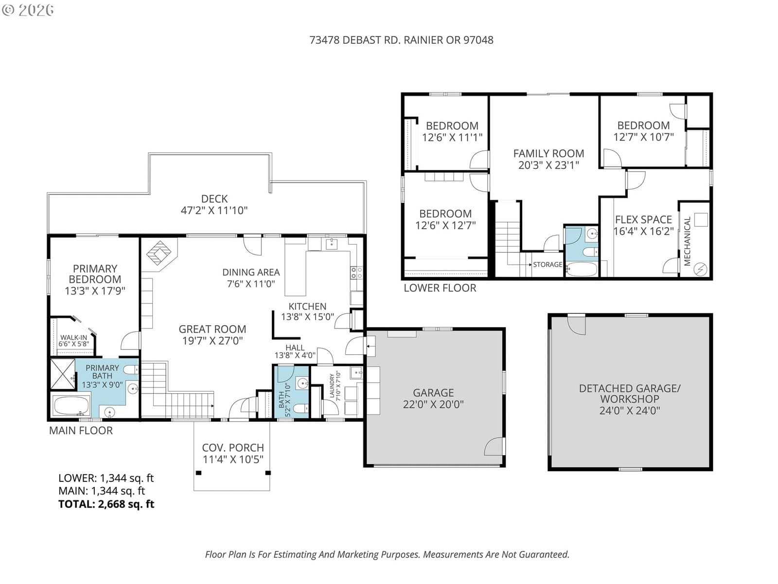 Come and live in this private retreat with spectacular territorial, river, and mountain views rain or shine. Sitting on 5 acres, with its own trail through the trees for outdoor adventures. Raised bed gardens, a fenced yard, double garage plus a detached shop with its own half bath, perfect for anyone craving a self-sufficient, outdoor lifestyle. This home offers flexible everyday living with a primary en-suite on the main level featuring a soaking tub and walk-in shower, access to the deck to enjoy the seasonal changes of the landscape. The main floor includes a well-appointed kitchen with pantry, open dining area, and access to an expansive deck, the perfect spot to take in the views over morning coffee or while entertaining. Generous natural light throughout with many living options. In the lower level, features additional 3 bedrooms, a spacious family room, and a versatile flex space ideal for a hobby and/or in-homes office. Rainier, Oregon, sits along the Columbia River, a beautiful scenic drive less than an hour from Portland, Beaverton, Hillsboro or just across the bridge from Longview giving you rural peace and an acquaintance of small-town feel.